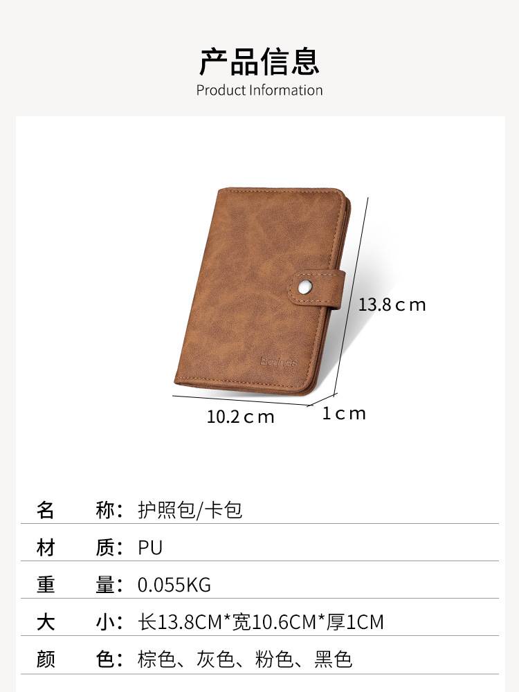 | Color | Bolsa de pasaporte de botón - marrón, Bolsa de pasaporte de botón - gris, Bolsa de pasaporte de botón - rosa, Bolsa de pasaporte de botón - negro |