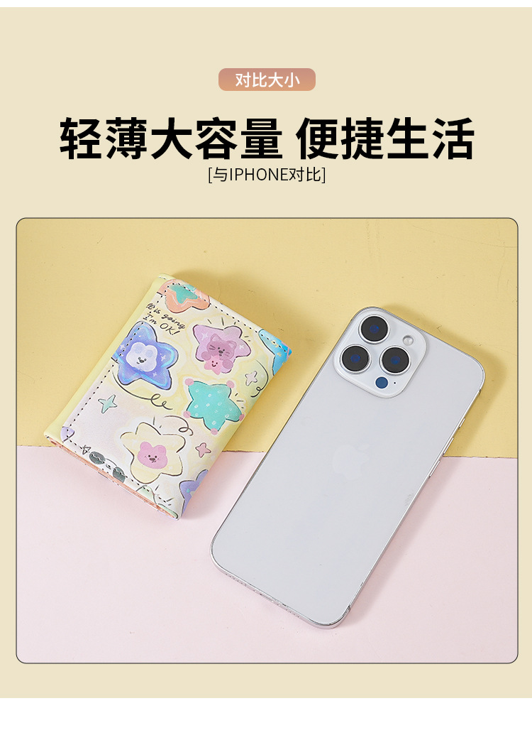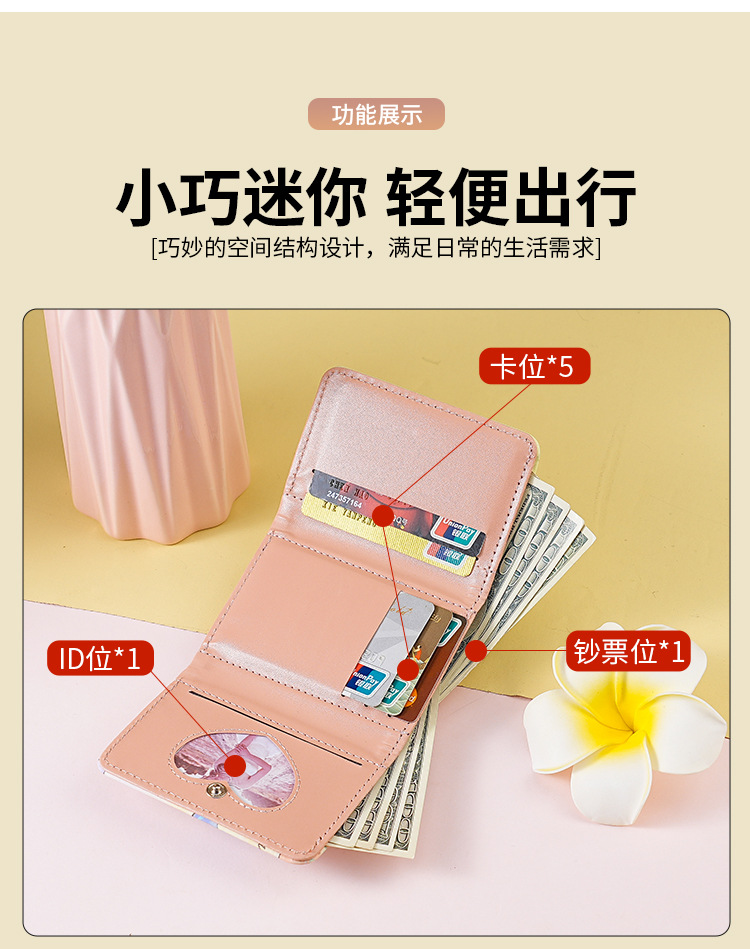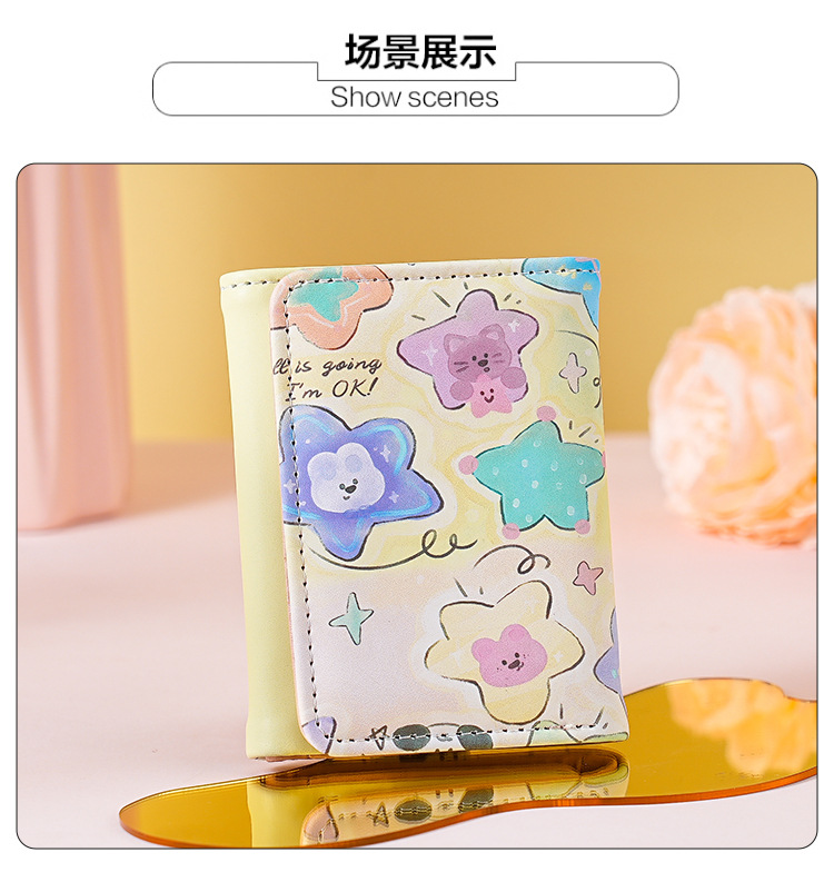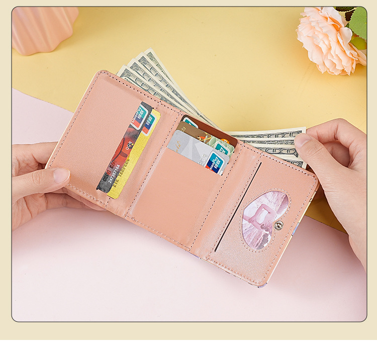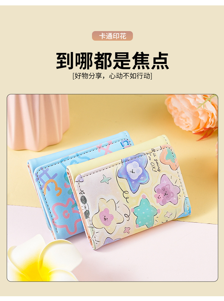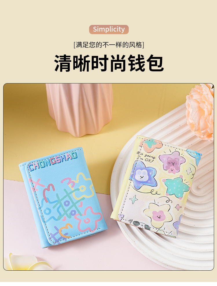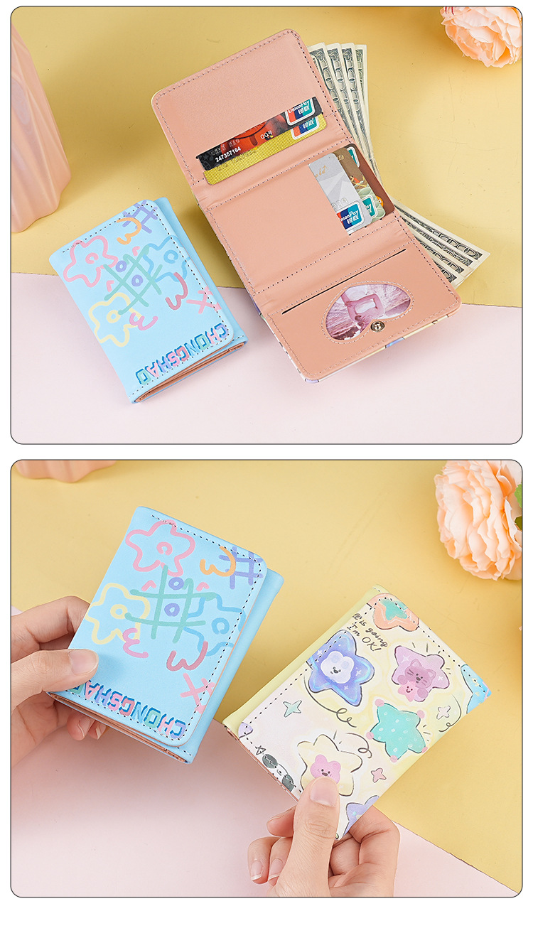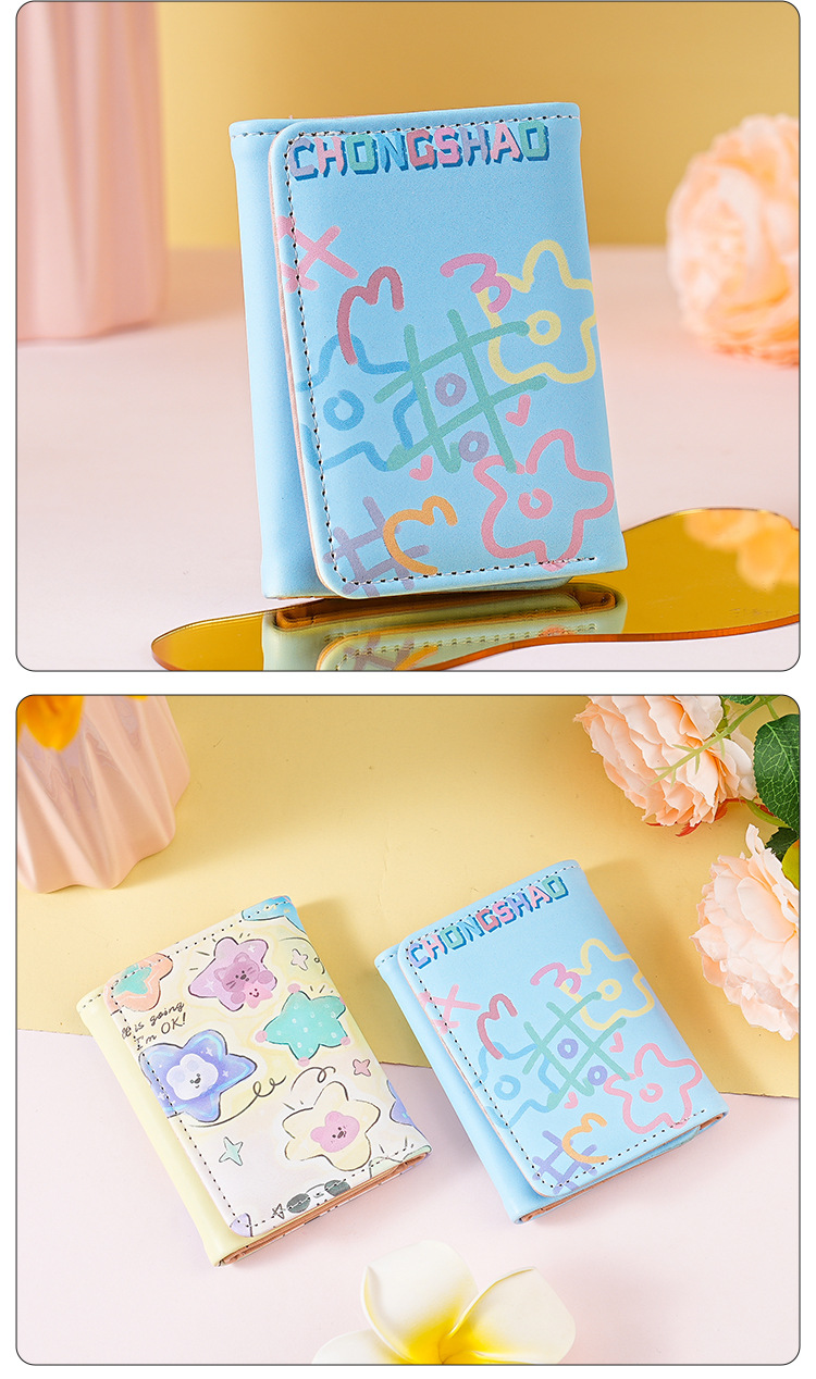 Nuevo estilo simple graffiti de color corto nicho lindo diseño de mujer plegable compacto multi-tarjeta cartera triple plegable