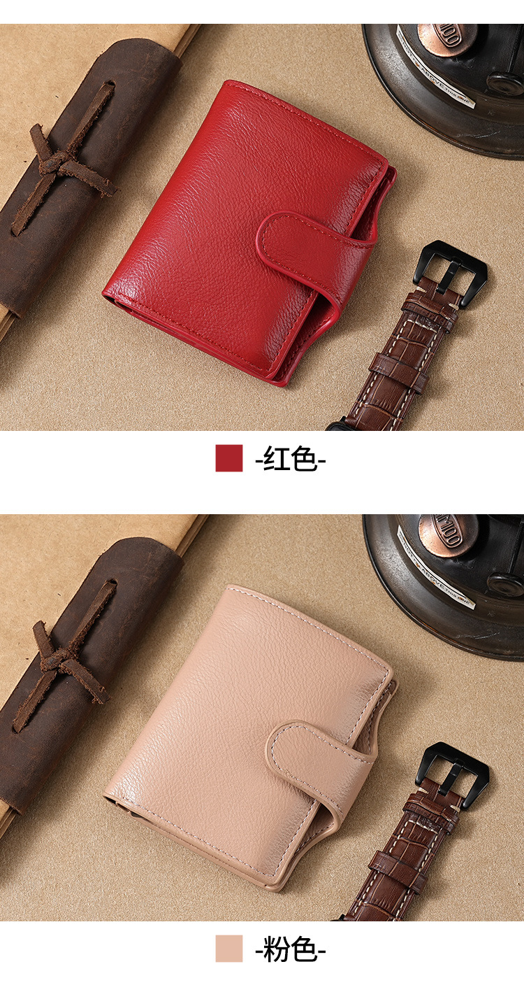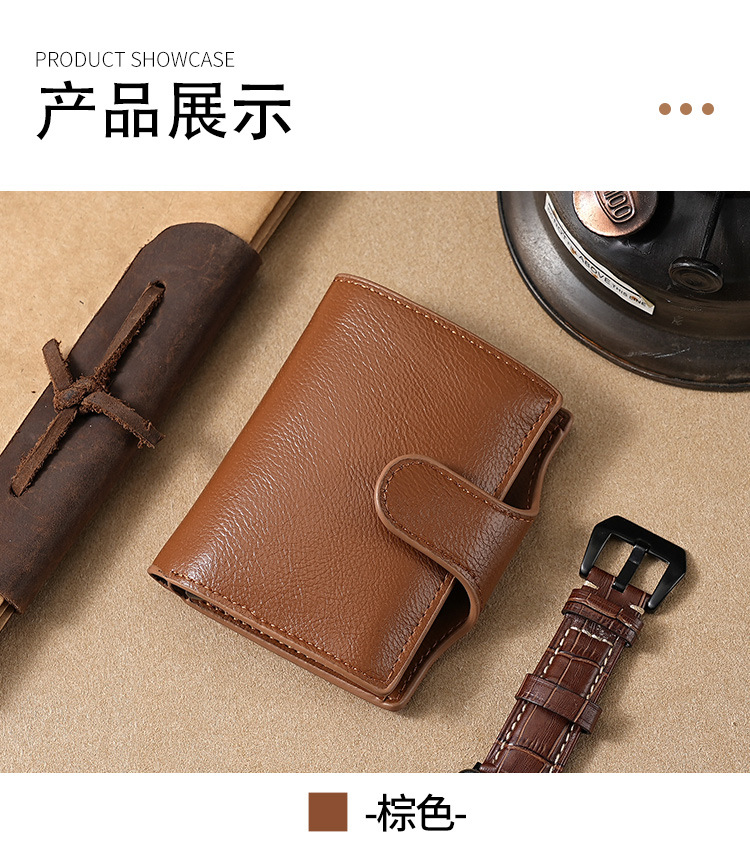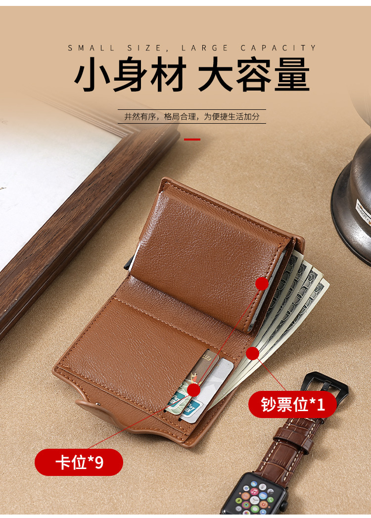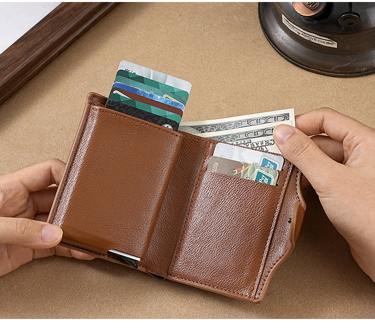RFID anti-robo cepillo cartera multifuncional buckle mujer cartera PU doble metal cartera de hombre cartera de tarjetas cartera