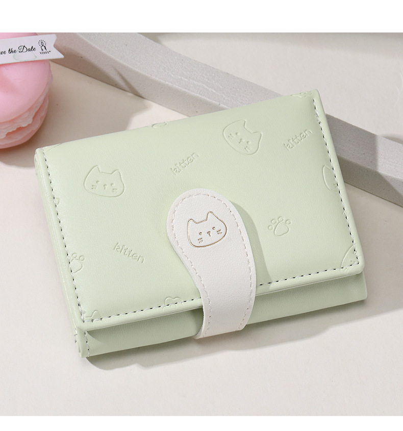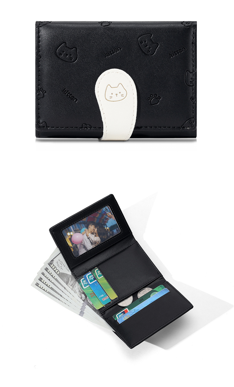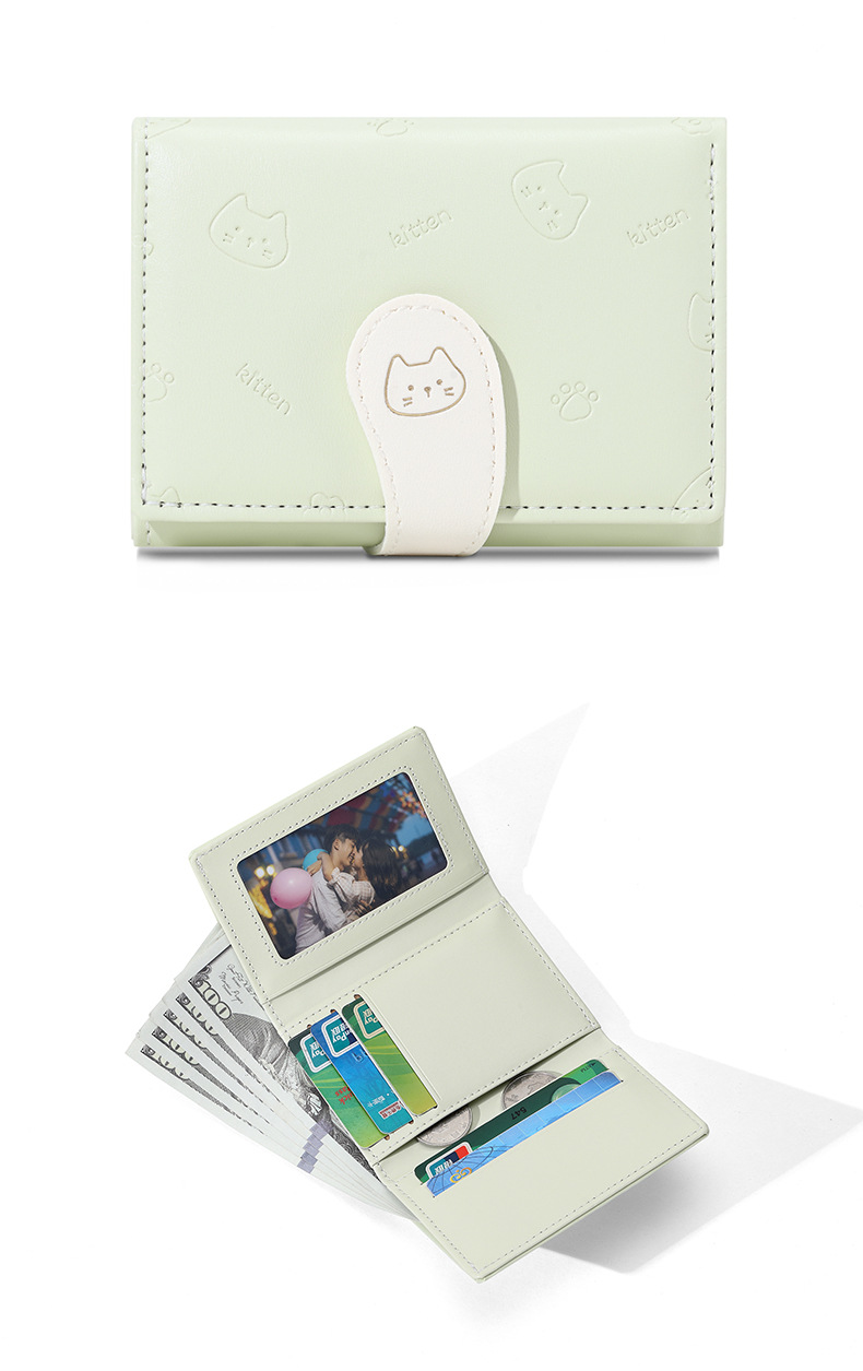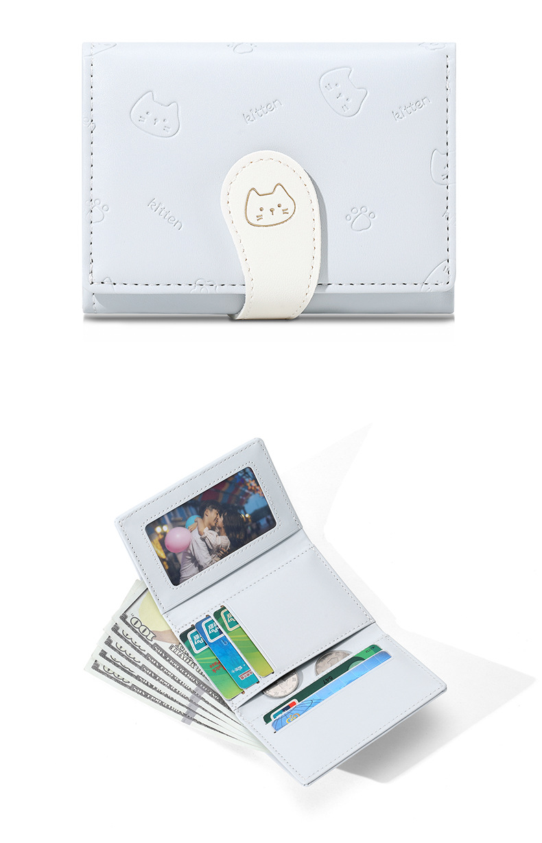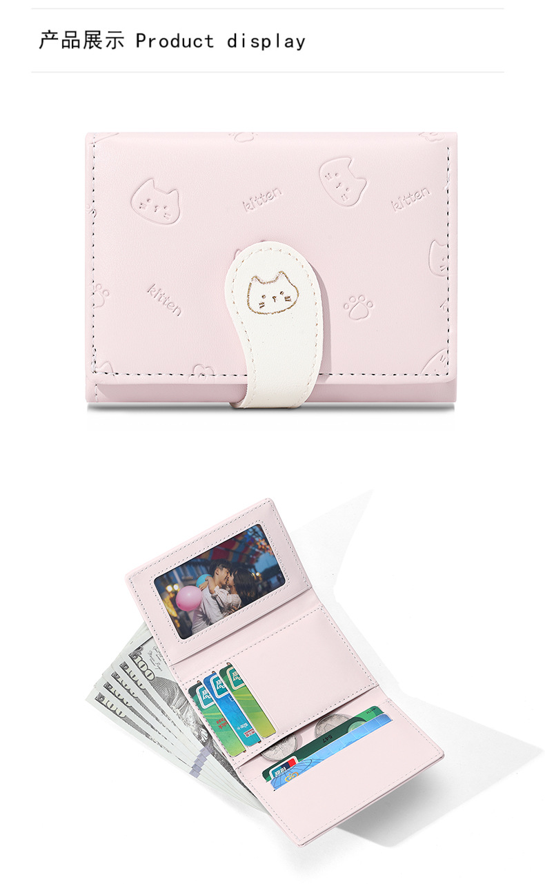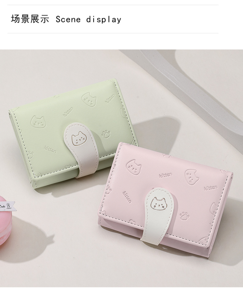 Nicho transfronterizo dibujos animados lindo gato billetera 2024 nuevo pequeño fresco tres plegables multi-tarjeta bolsa billetera fresca