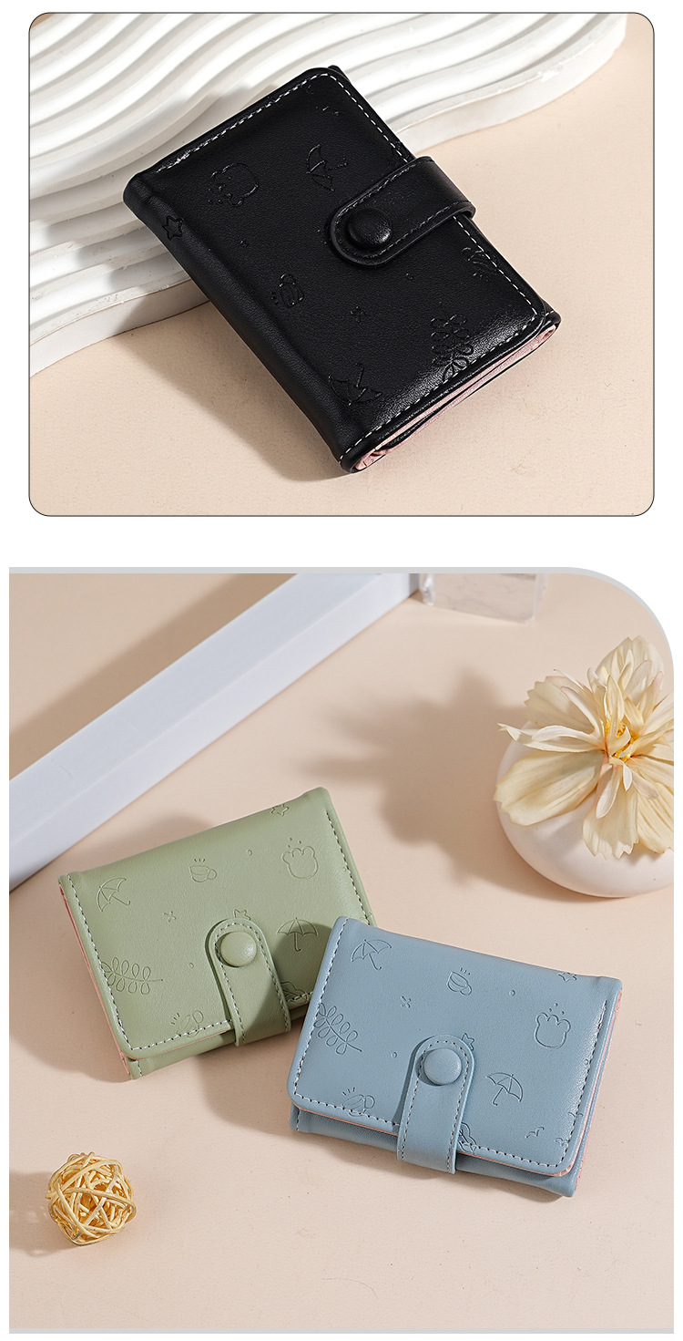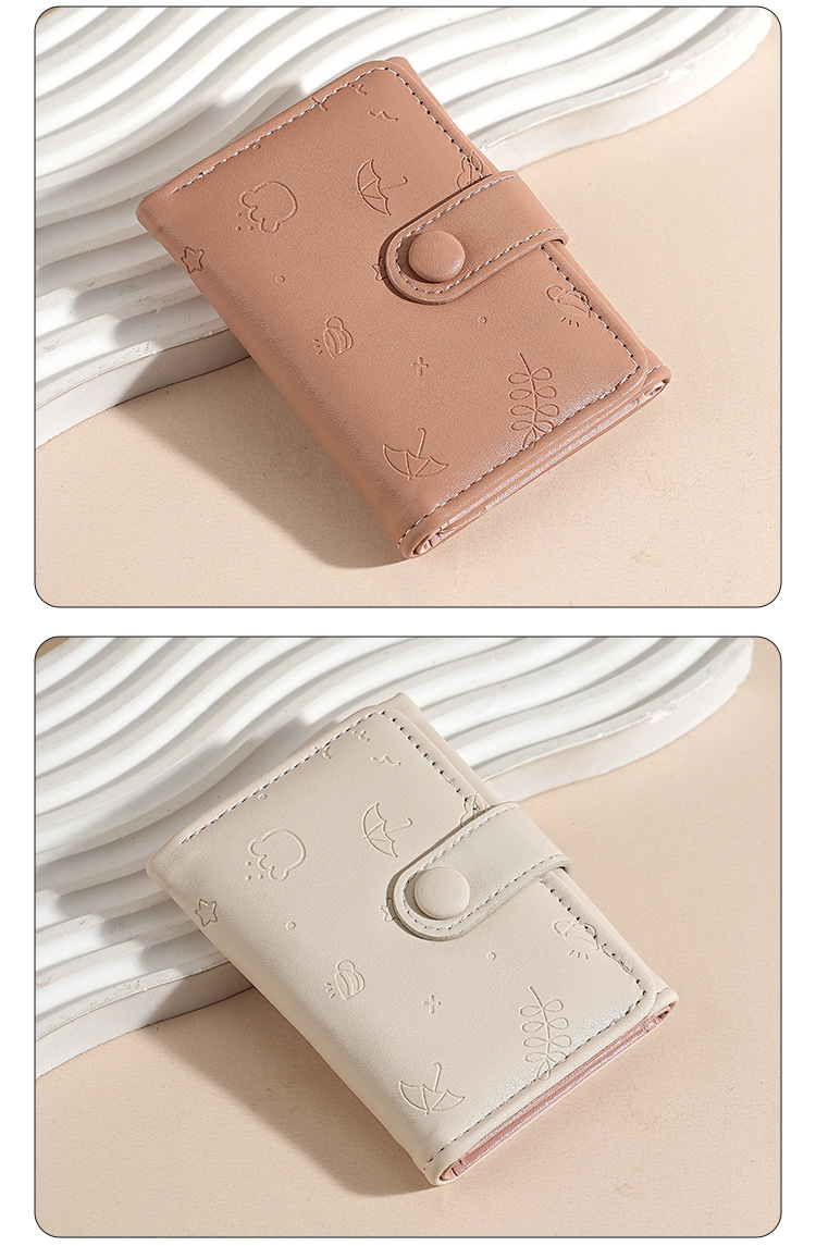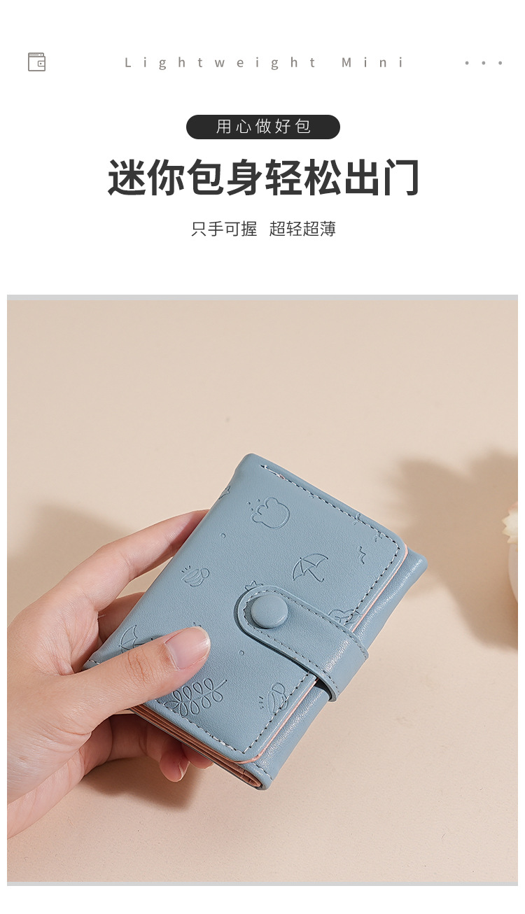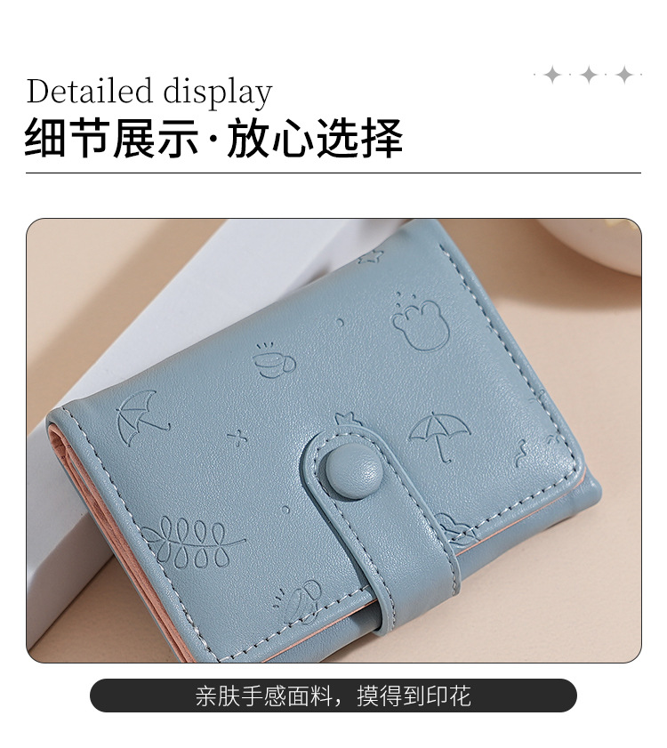 Nueva bolsa corta para mujeres, cuero PU, hermoso paraguas, impresión de 30 por ciento, bolso de botón de botón, bolso de tarjeta múltiple.