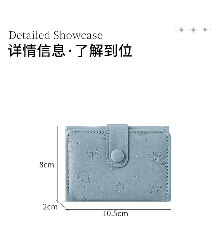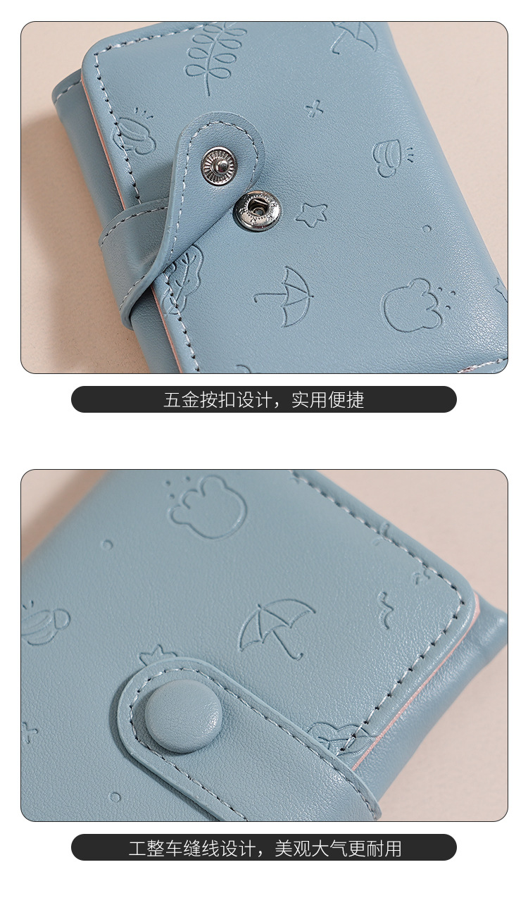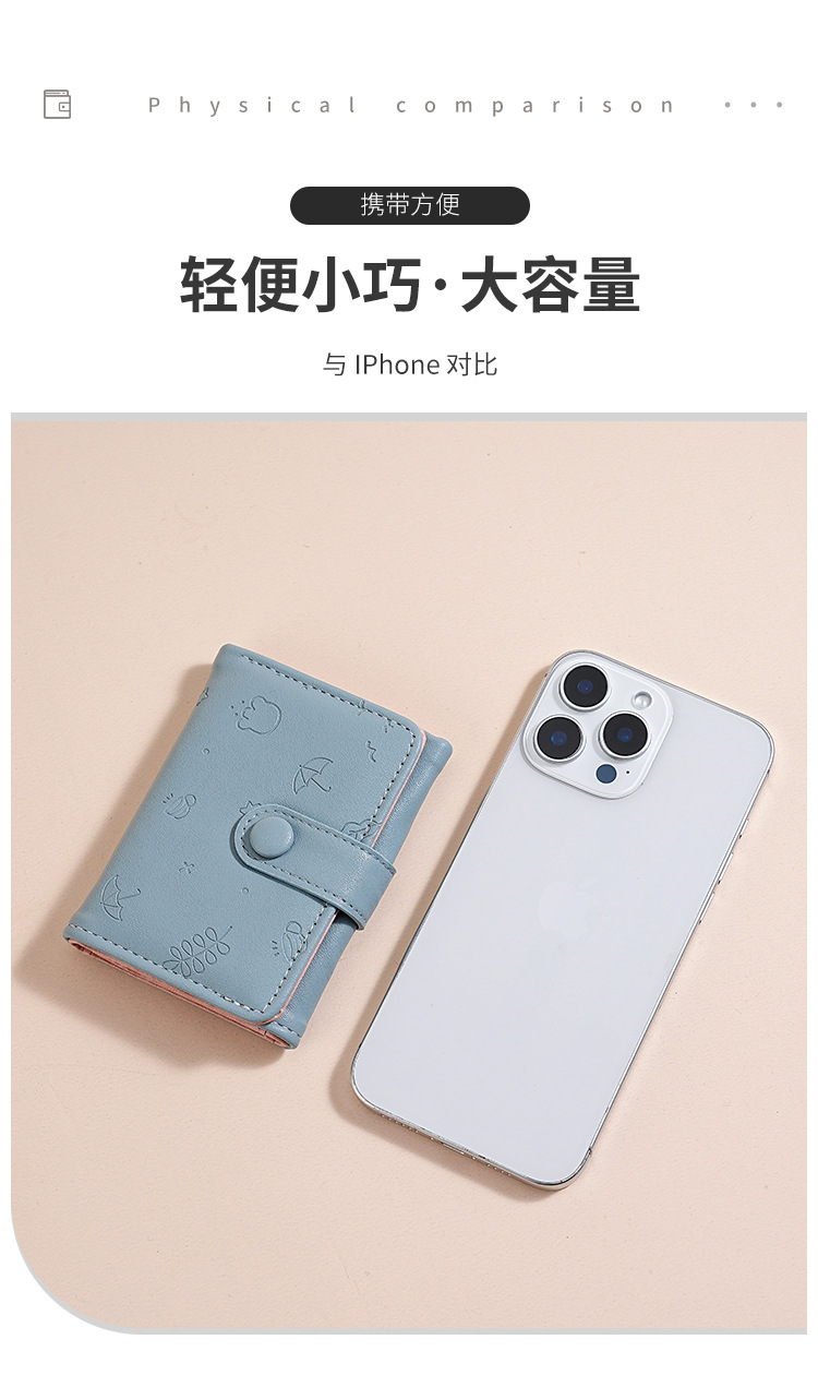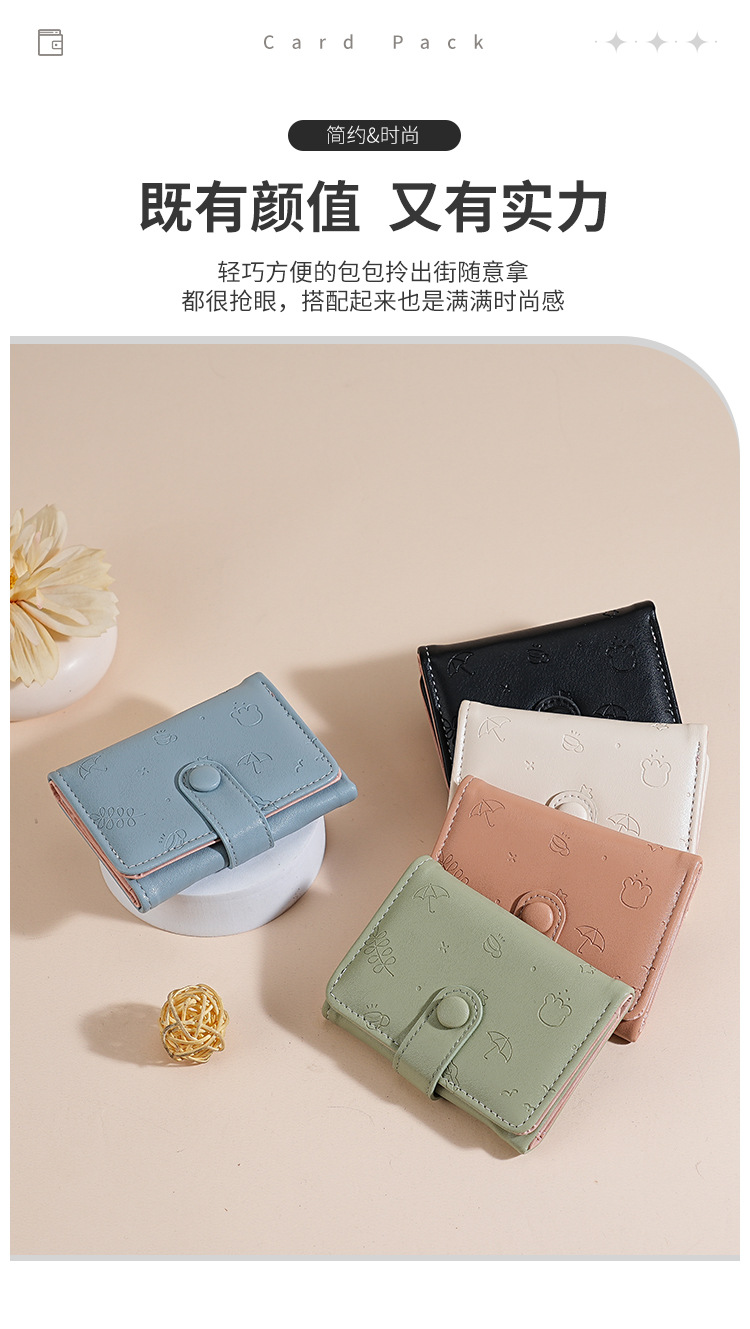 Nueva bolsa corta para mujeres, cuero PU, hermoso paraguas, impresión de 30 por ciento, bolso de botón de botón, bolso de tarjeta múltiple.