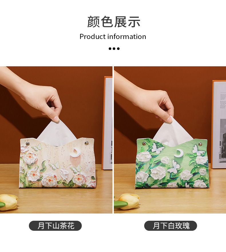 | Colores | Caja de pañuelos debajo del monte Fuji,Caja de pañuelos de tulipán Caixia,Caja de pañuelos de niña de flores,Caja de pañuelos de rosa blanca bajo la luna,Caja de pañuelos de camelia bajo la luna |