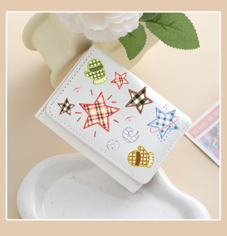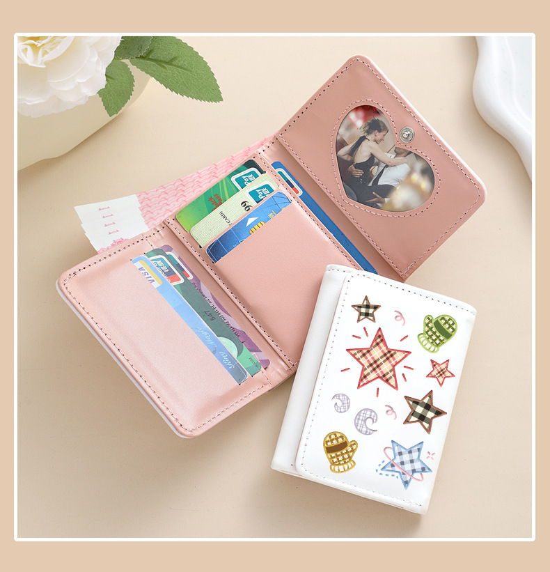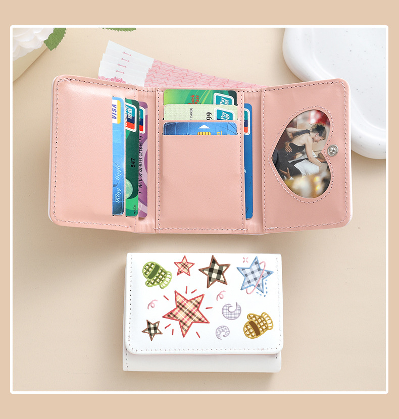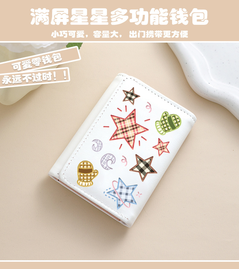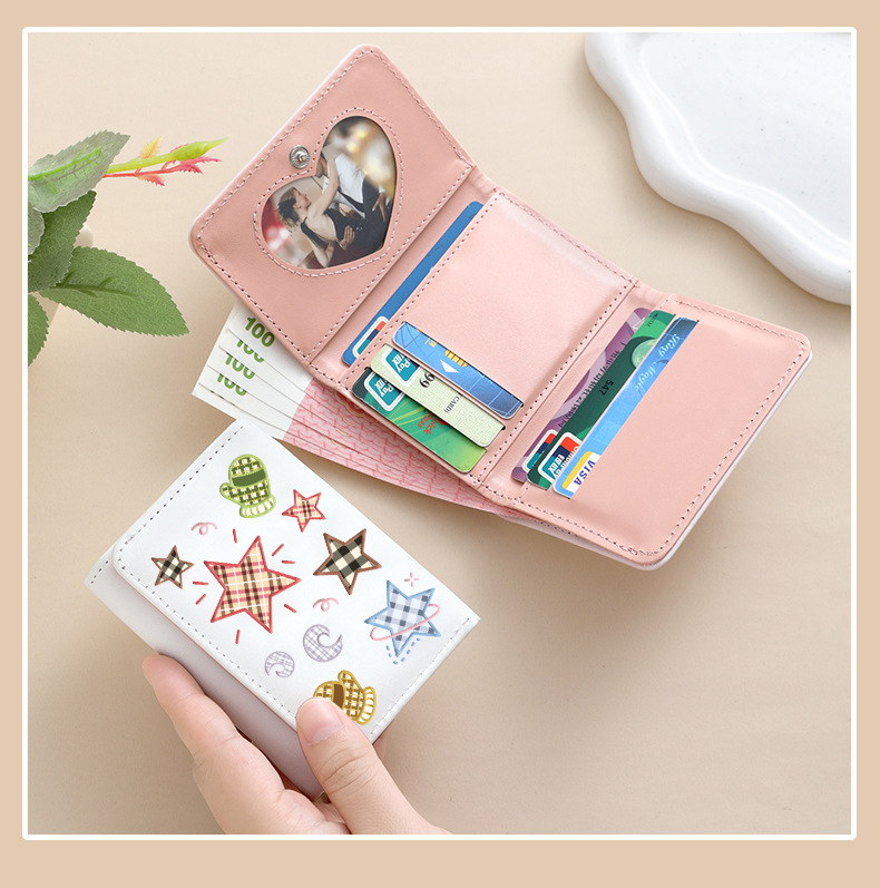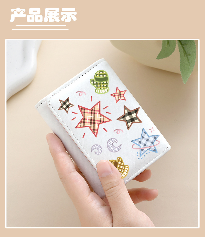 Comercio exterior estrellas de viento estudiantes cartera de tarjetas lindas billetera de escuela primaria y secundaria con múltiples tarjetas tres plegables corto bolso de cambio plegable