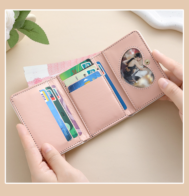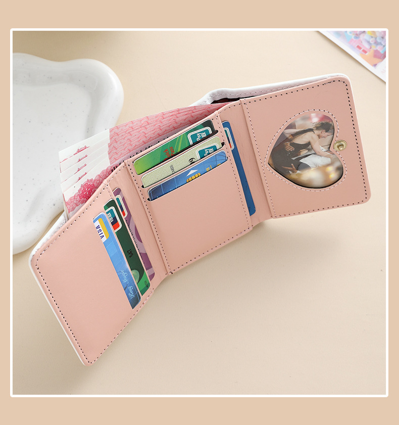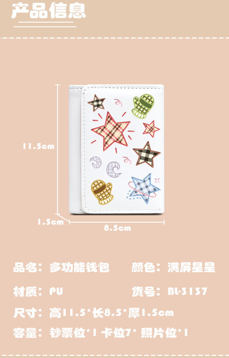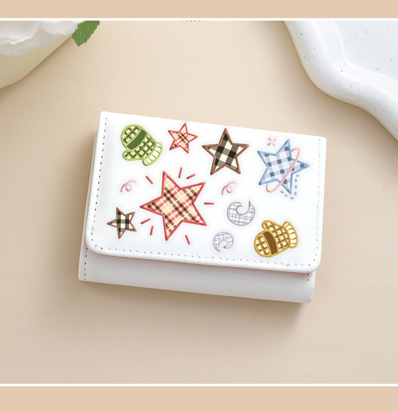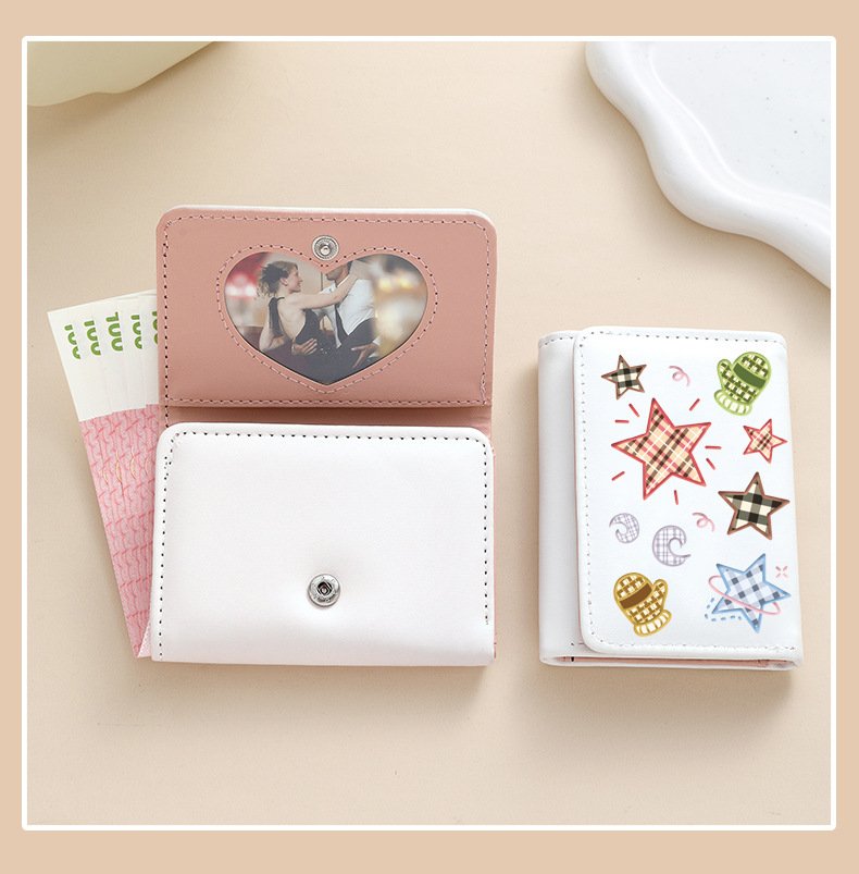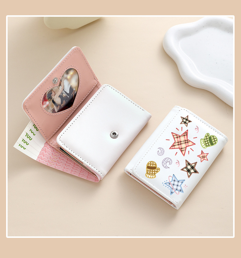 Comercio exterior estrellas de viento estudiantes cartera de tarjetas lindas billetera de escuela primaria y secundaria con múltiples tarjetas tres plegables corto bolso de cambio plegable