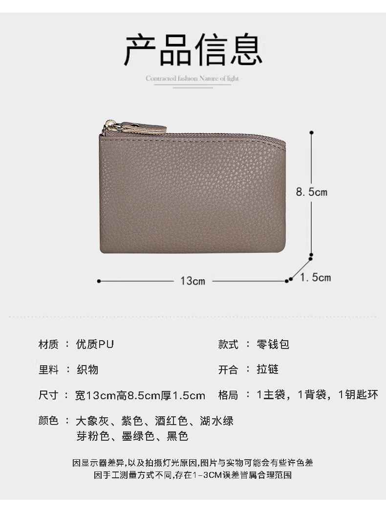 Monedas de cremallera de llave compacta, bolso de cambio de mujer, bolso de cambio de mamá, bolso de almacenamiento delgado mini bolso de cambio