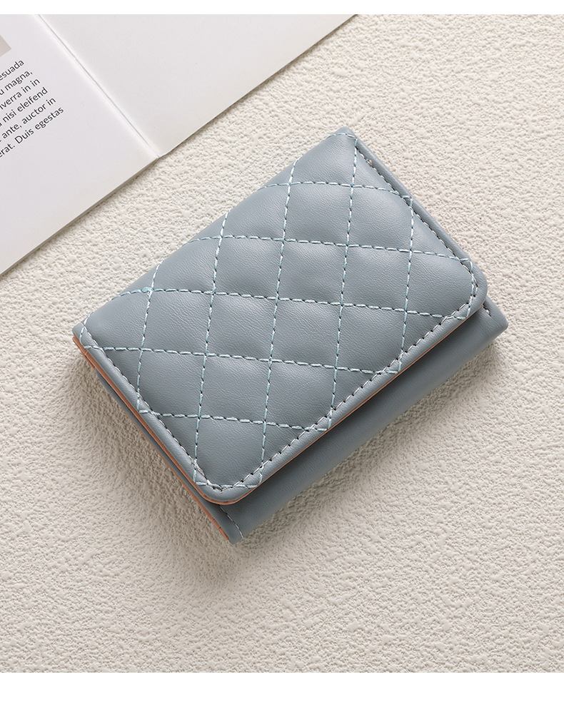 Europa y América de moda sencilla dama atmósfera cremallera tarjeta de gran capacidad cartera de cuero real portable cartera de tres plegables