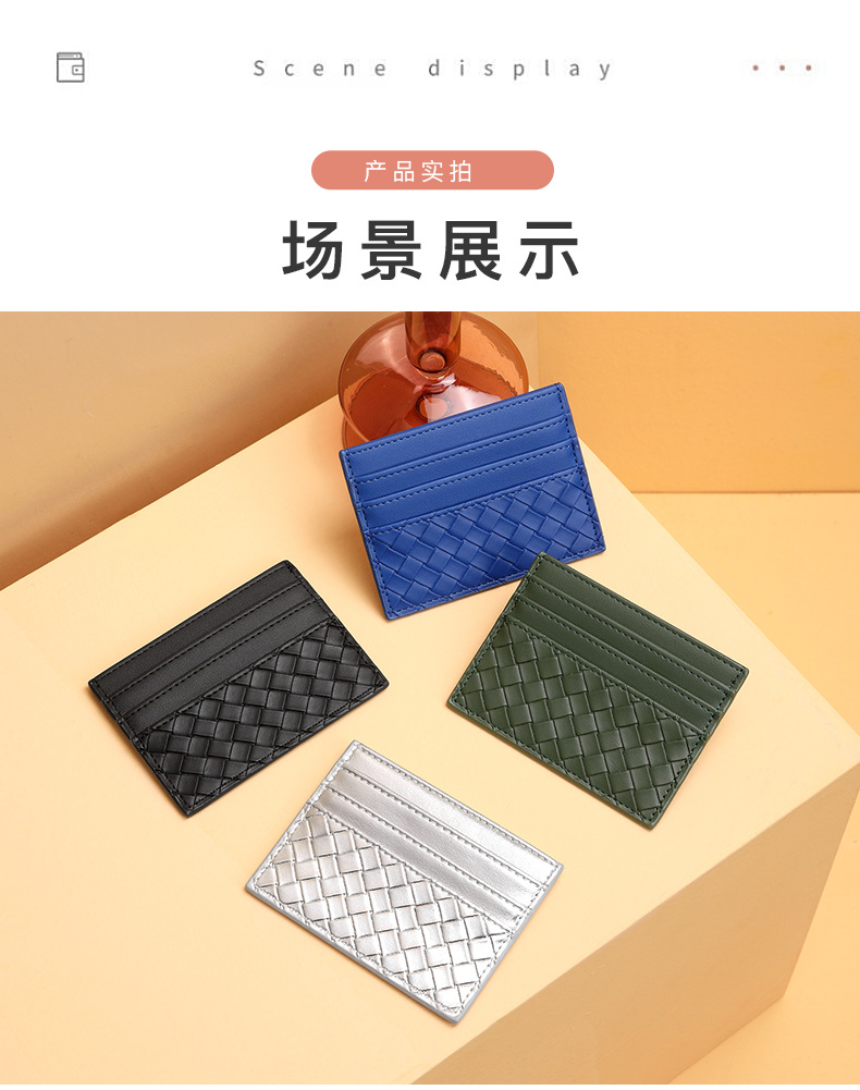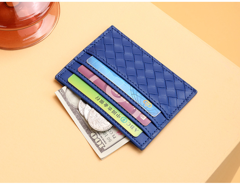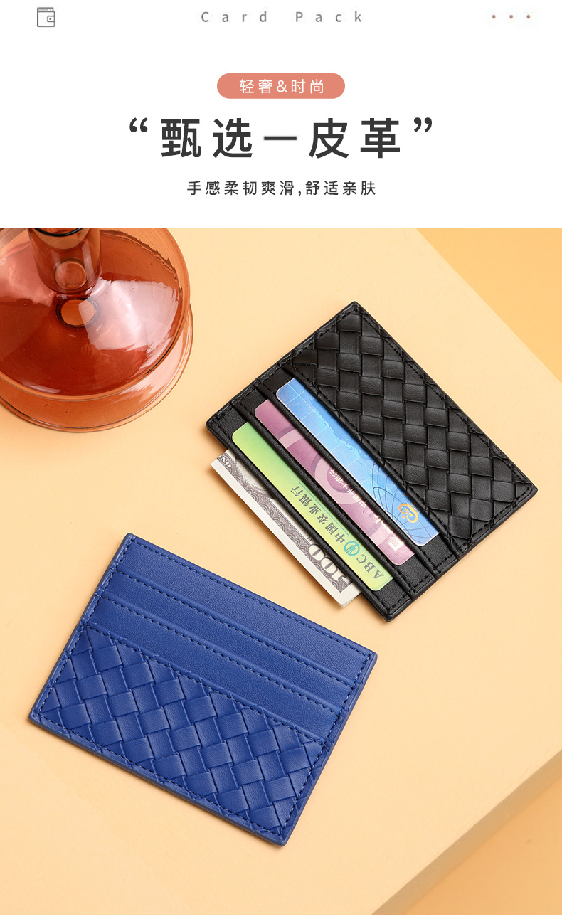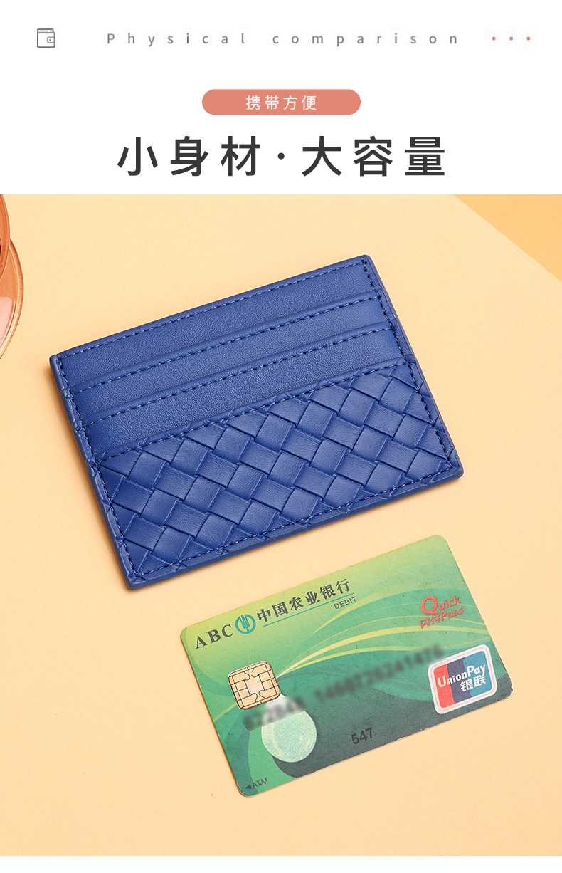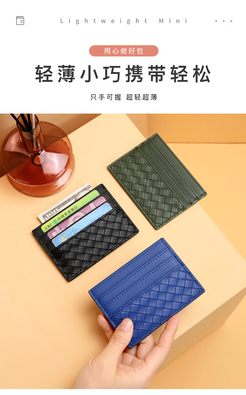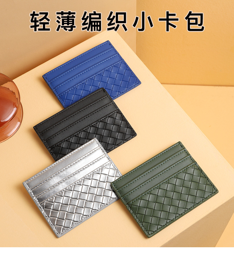 Bolsa de tarjetas de tejido mujer una pieza de pu piel mini tarjeta de crédito bancaria pequeña tarjeta de crédito personalidad masculina tarjeta de control de acceso