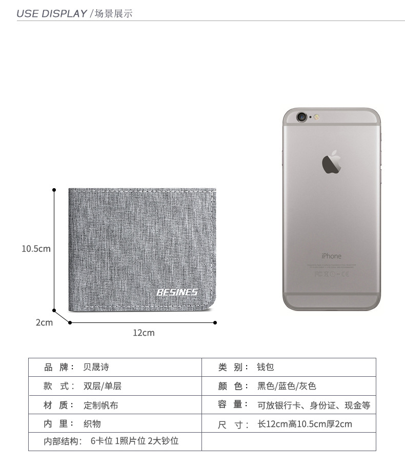| Color | Canvas cartera corta azul, canvas cartera corta gris, canvas cartera corta negro |