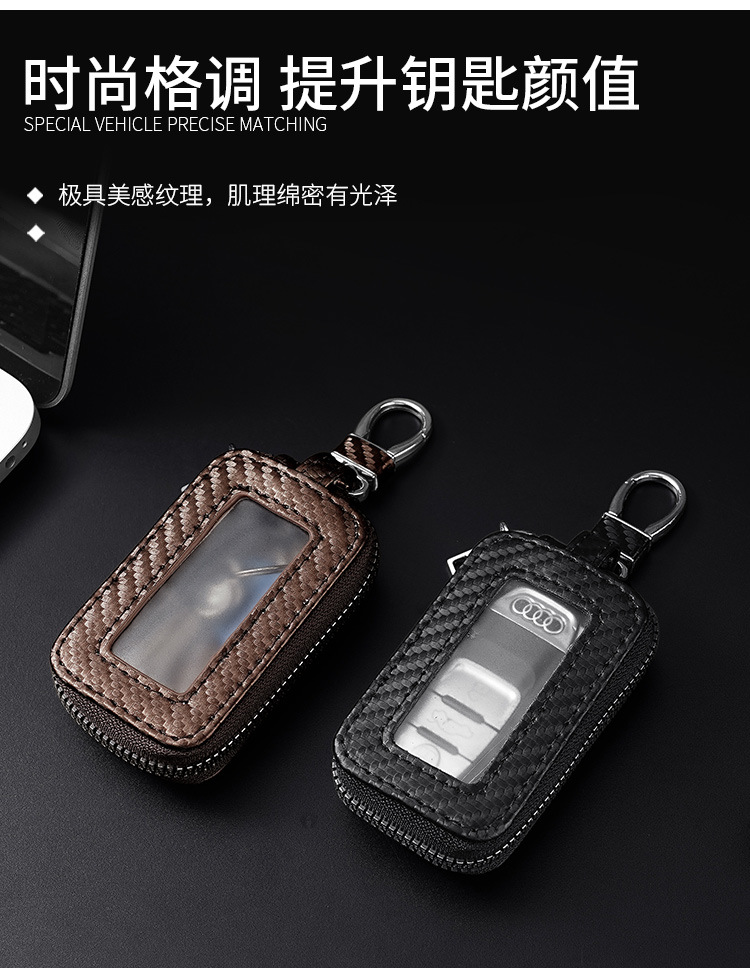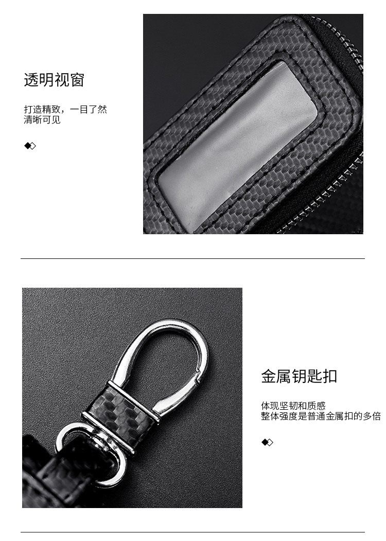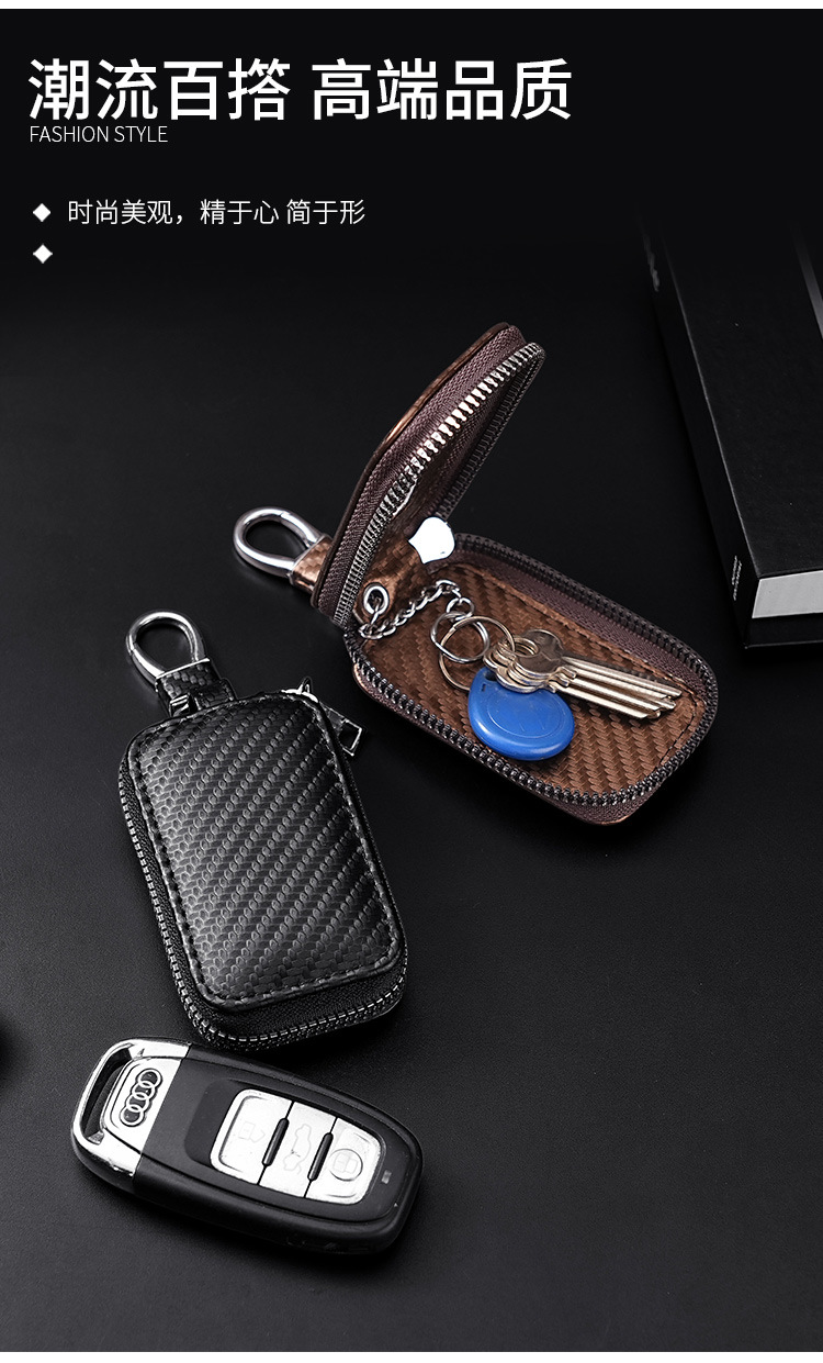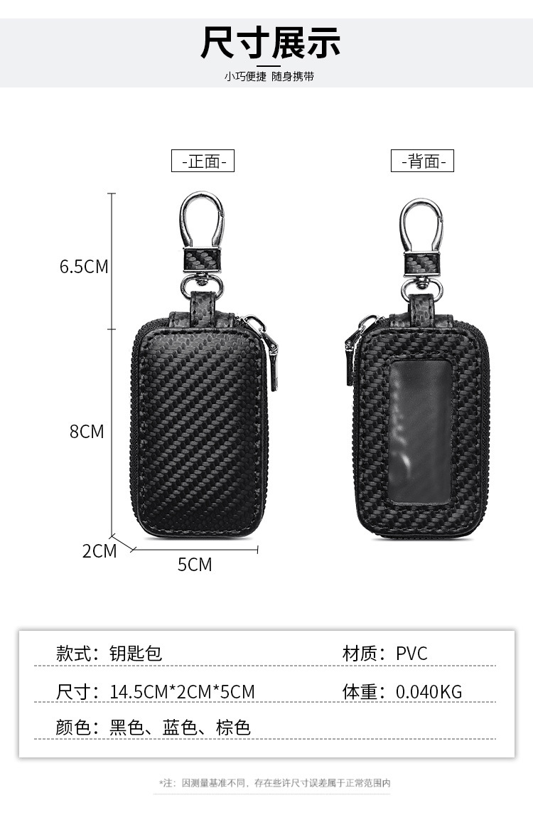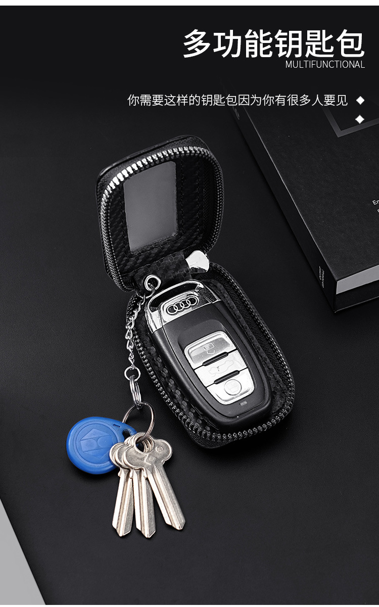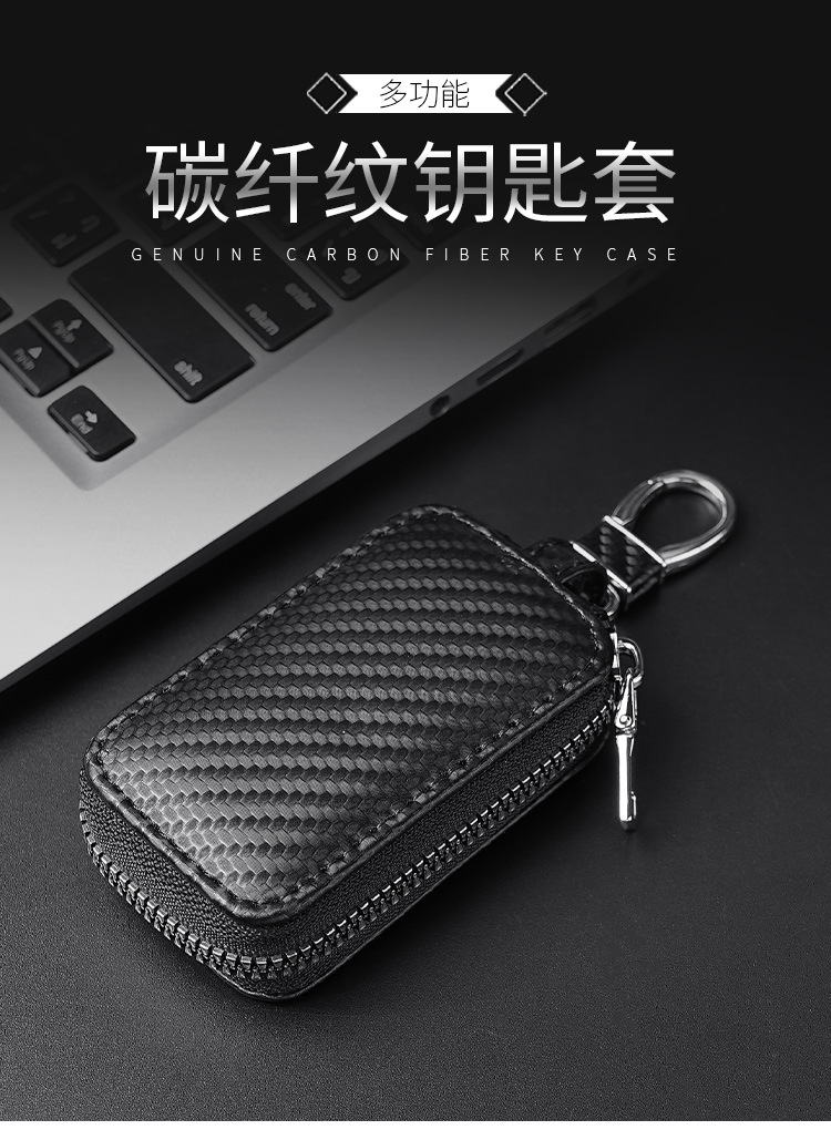2024 nuevo estilo de negocios con estampado de fibra de carbono, funda para llaves, cremallera única para hombre, cintura colgante universal para automóvil, bolsa de almacenamiento de llaves retro