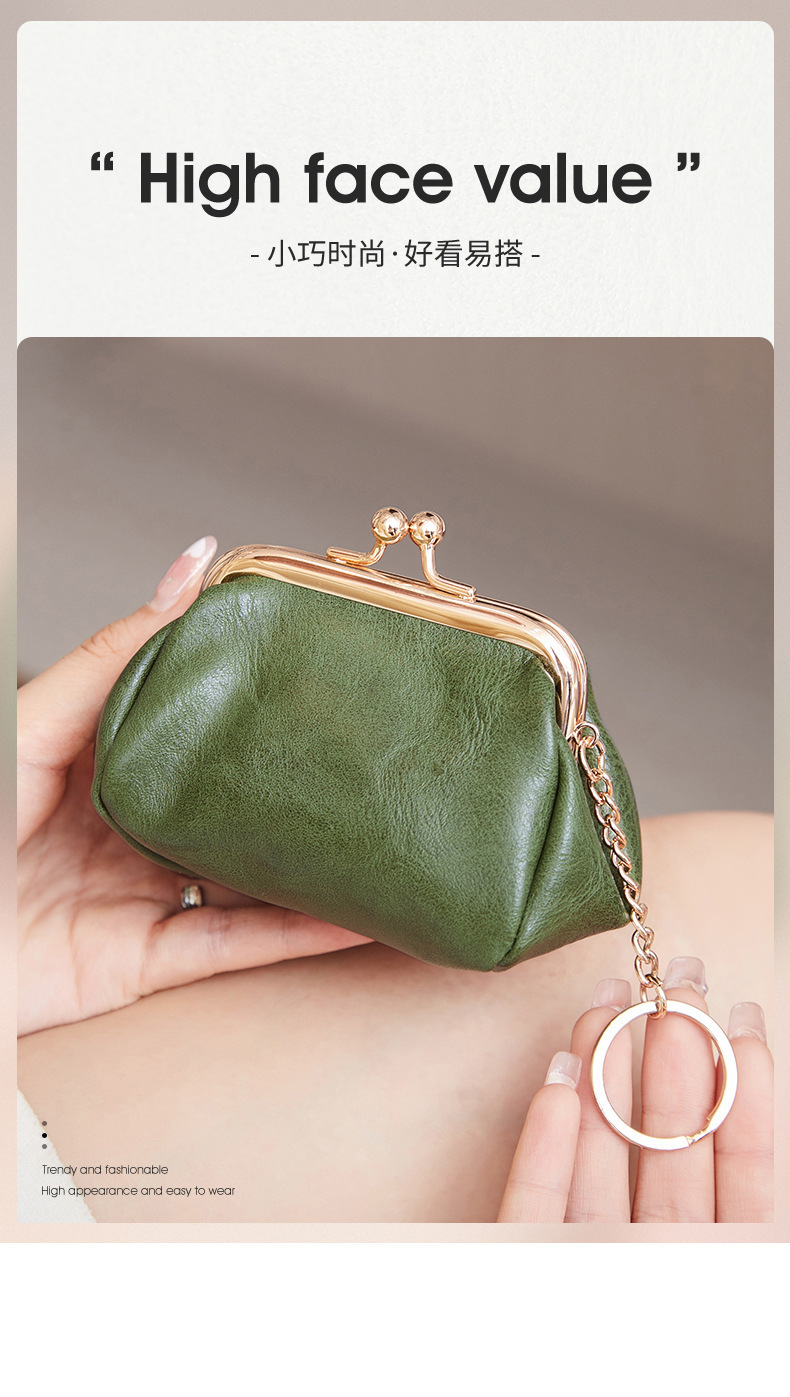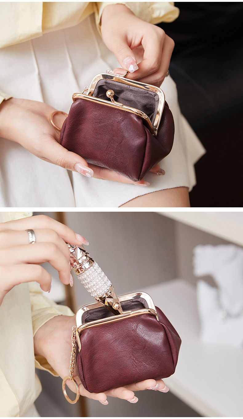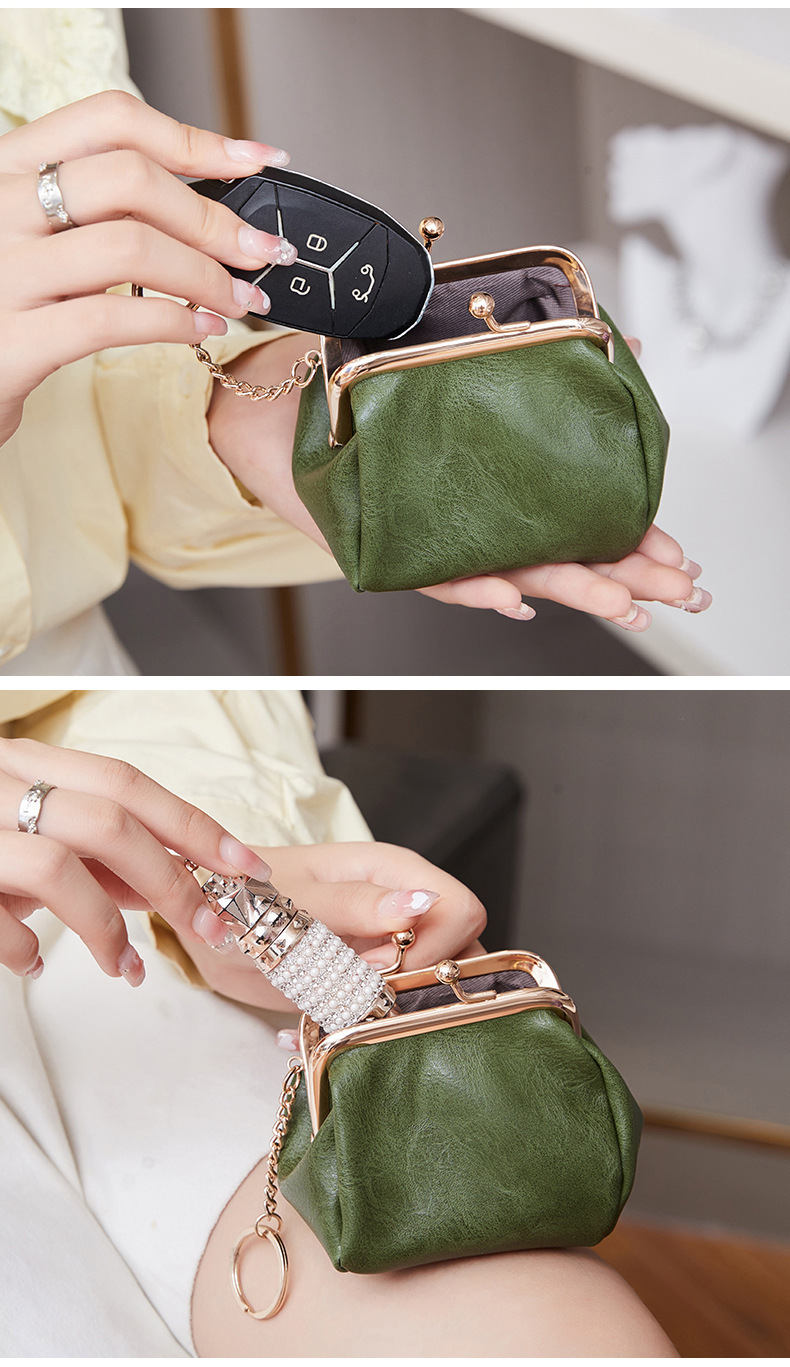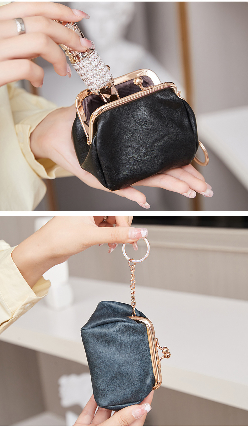 Cross-border retro clip bolso de cambio 2024 nuevo pequeño bolso de llaves portátil PU color sólido bolsa de monedas de todo el mundo