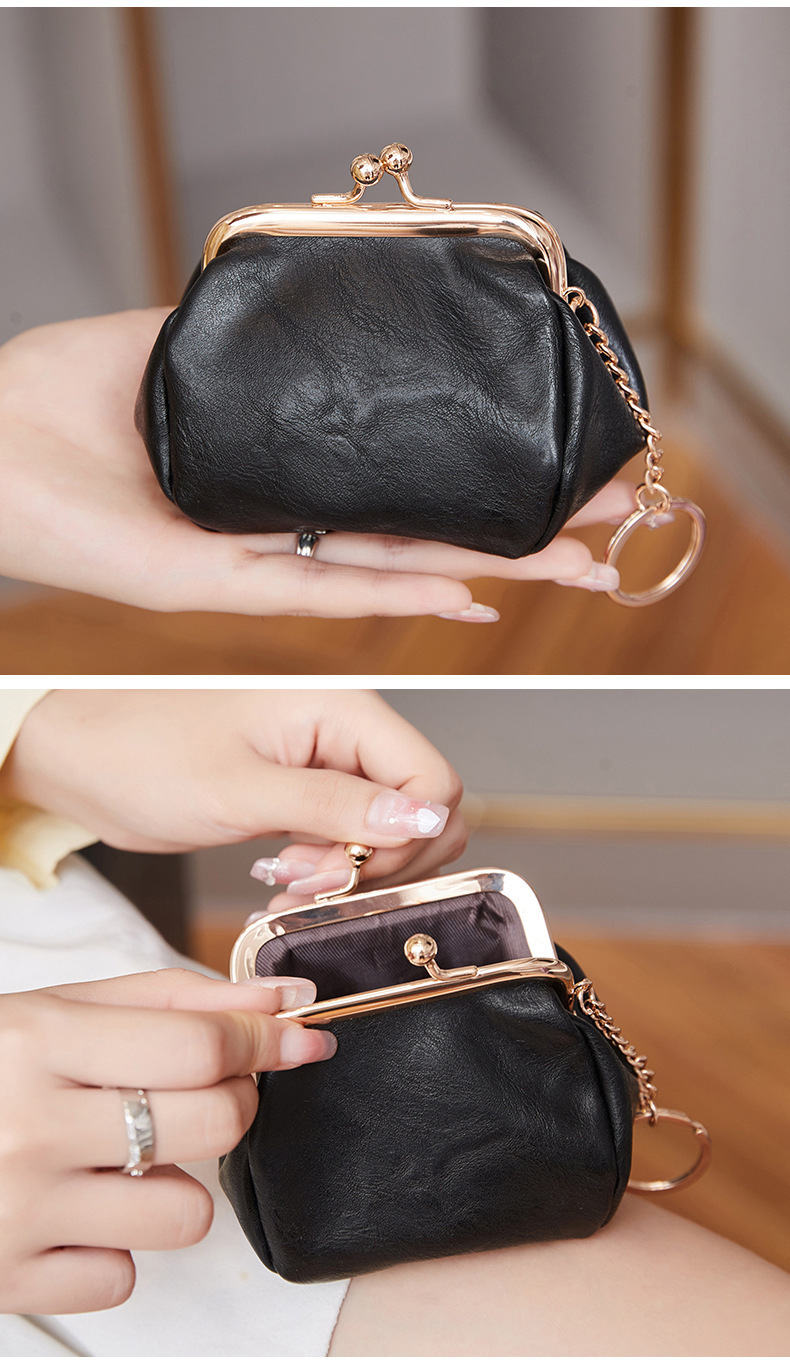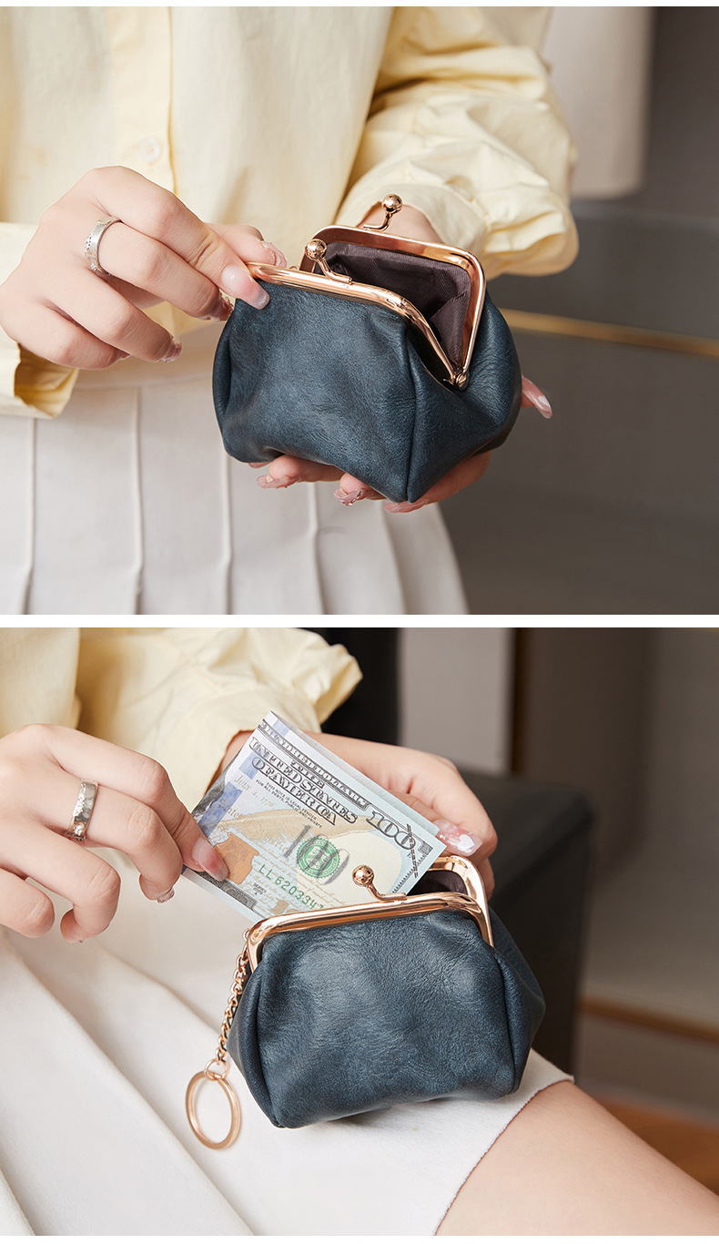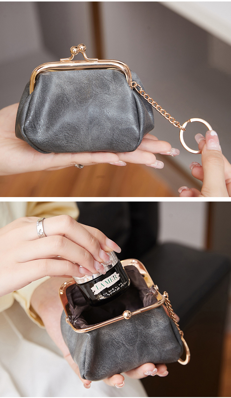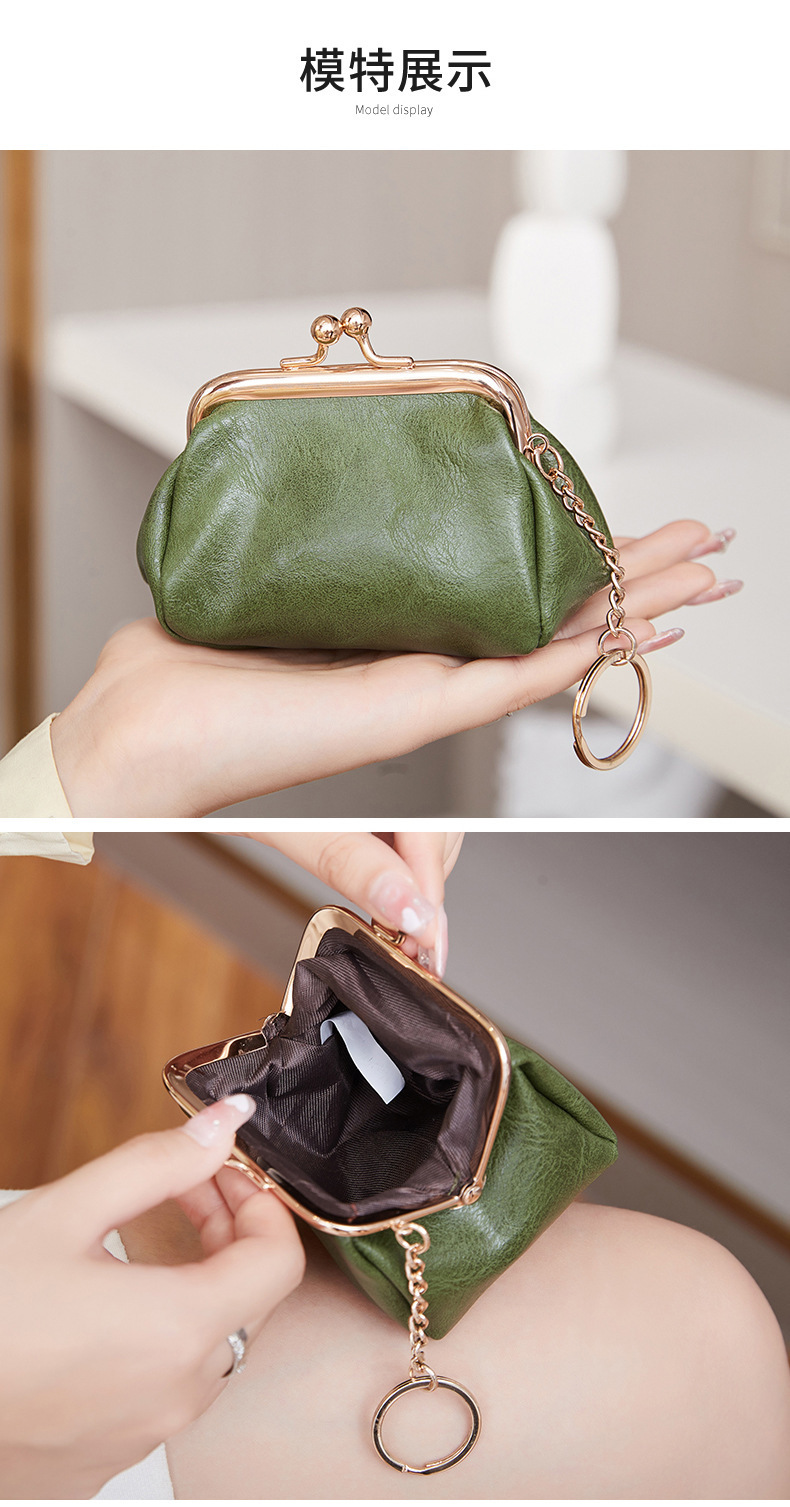Cross-border retro clip bolso de cambio 2024 nuevo pequeño bolso de llaves portátil PU color sólido bolsa de monedas de todo el mundo