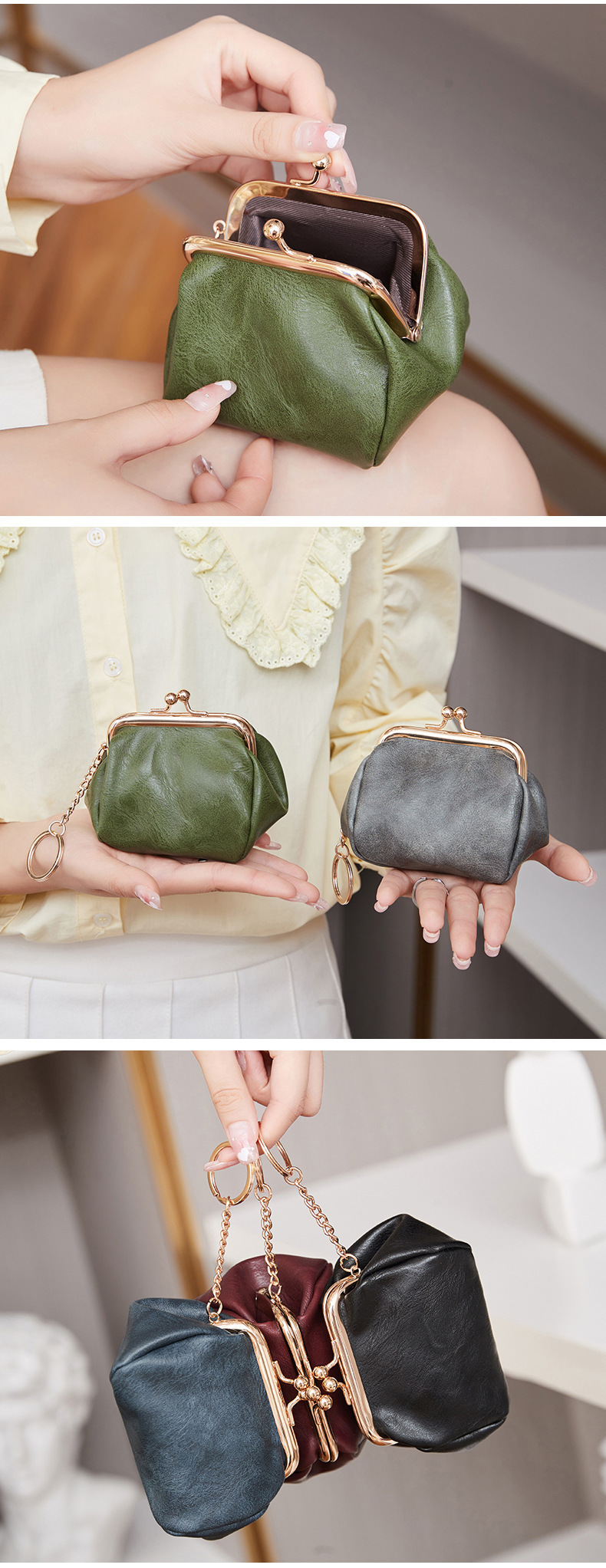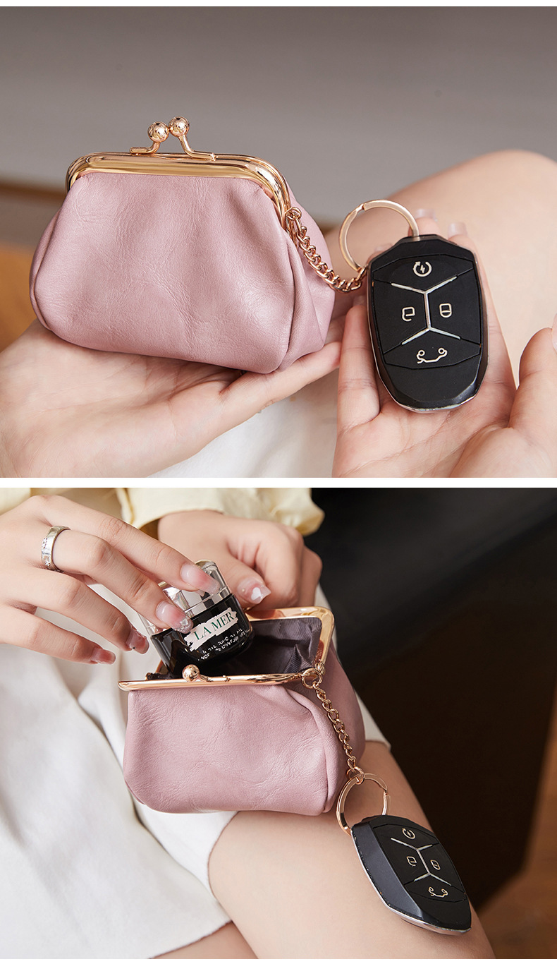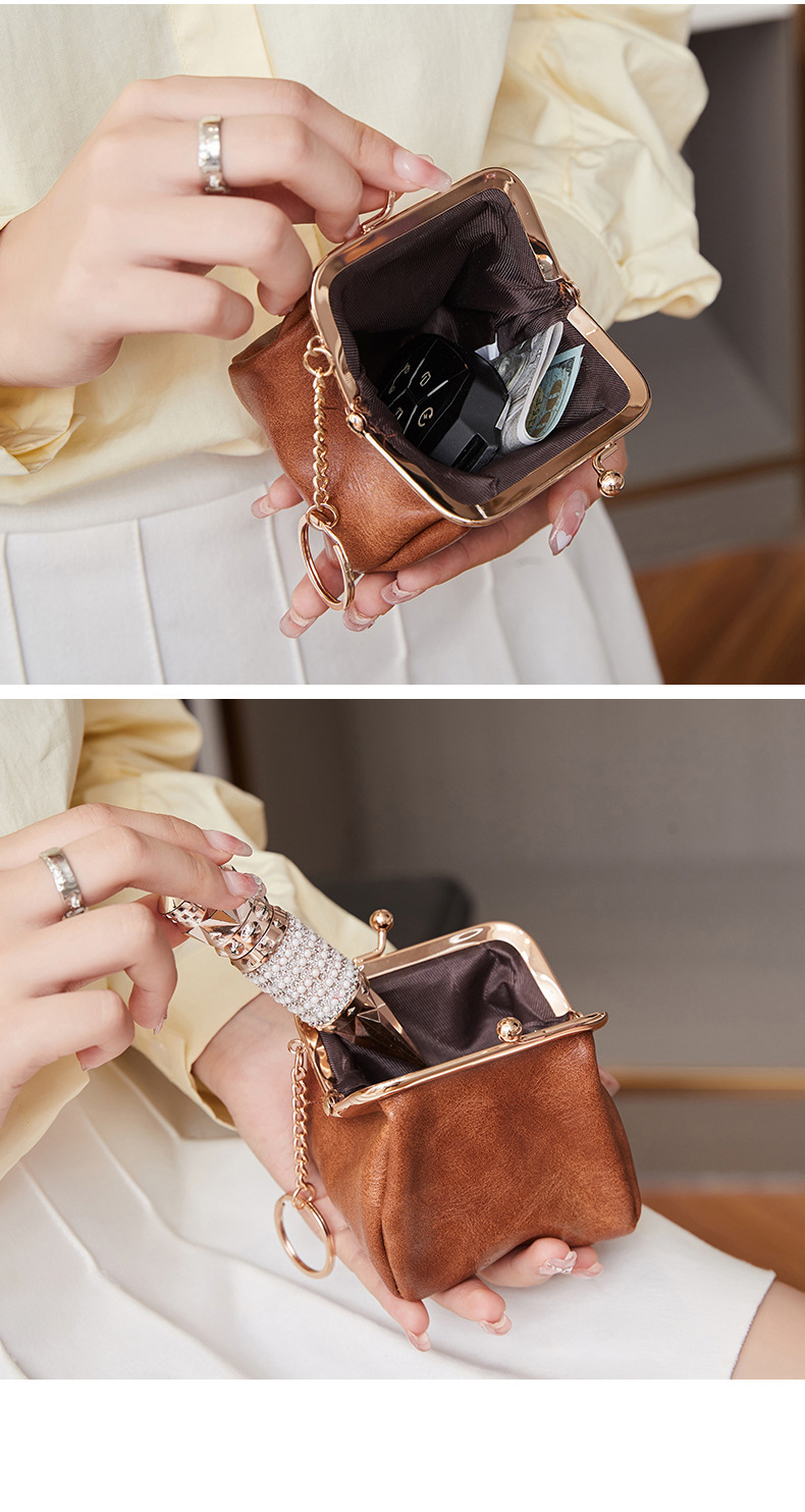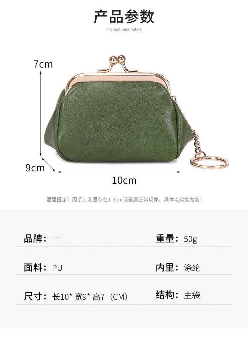 Cross-border retro clip bolso de cambio 2024 nuevo pequeño bolso de llaves portátil PU color sólido bolsa de monedas de todo el mundo