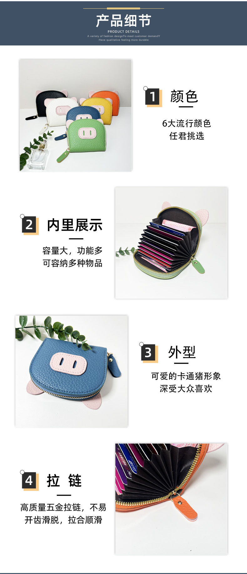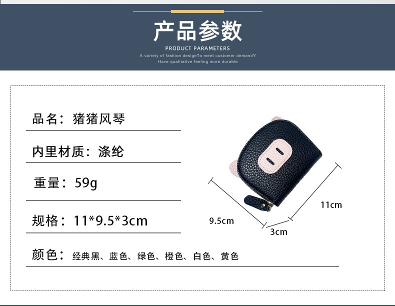 Nueva bolsa de tarjetas de órgano en línea para mujeres estudiantes ligeros cerdo cerdo cremallera multi-tarjeta cubierta de tarjetas lindas tarjetas cambio al por mayor