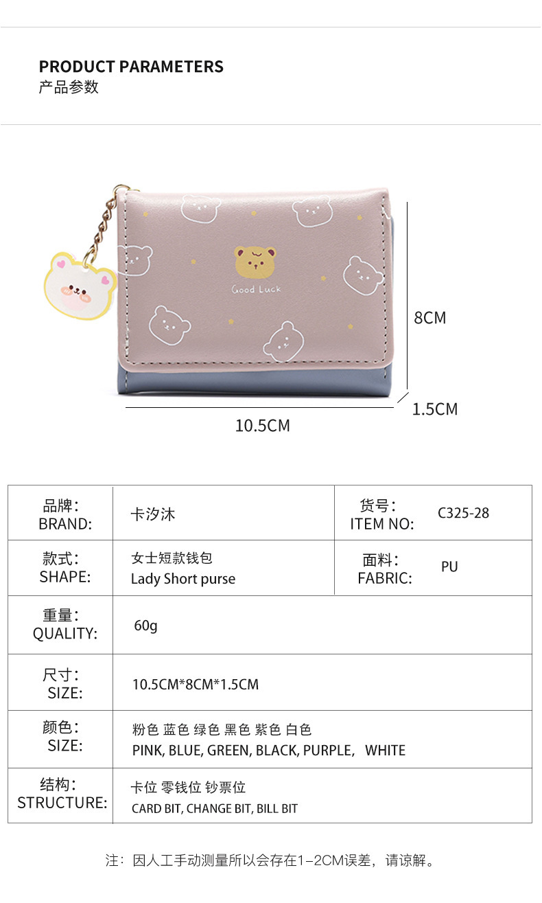 ![[Animal diario] Pequeña cartera de las mujeres al por mayor PU corto tríptico multi-Tarjeta Monedero](https://cbu01.alicdn.com/img/ibank/O1CN01CTIiiJ1Bs2vLOuwJG_!!0-0-cib.jpg?x-oss-process=image/resize,m_pad,h_300,w_300,limit_0)