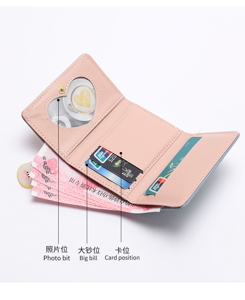 Estilo coreano pequeña cartera de las mujeres billetera corta chica estudiante de moda monedero de la moneda de dibujos animados al por mayor billetera de las mujeres