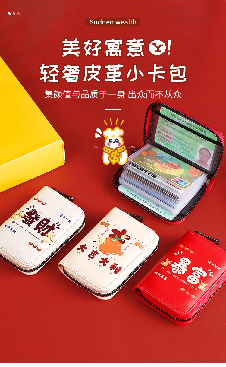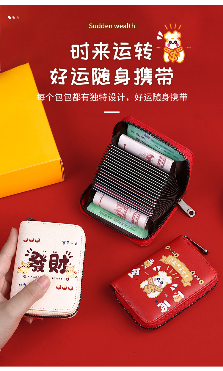 Titular de la tarjeta creativa hembra lindo cambio afortunado certificado titular de la tarjeta de almacenamiento anti-desgaussing cremallera tarjeta certificado bolsa integrada