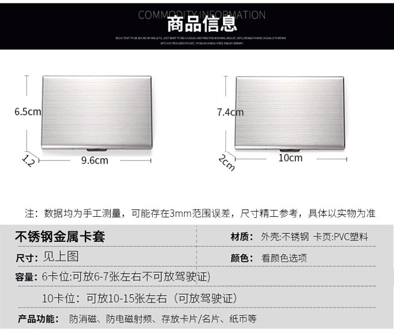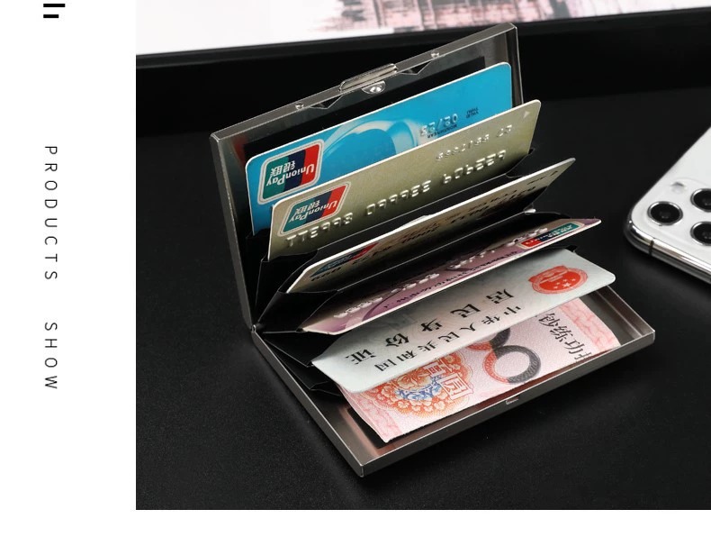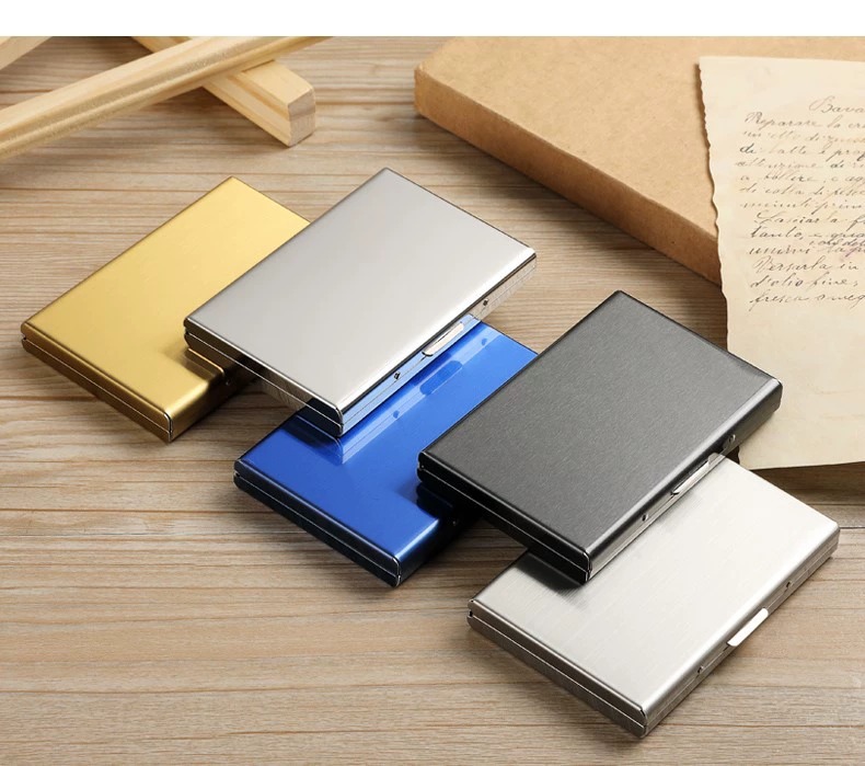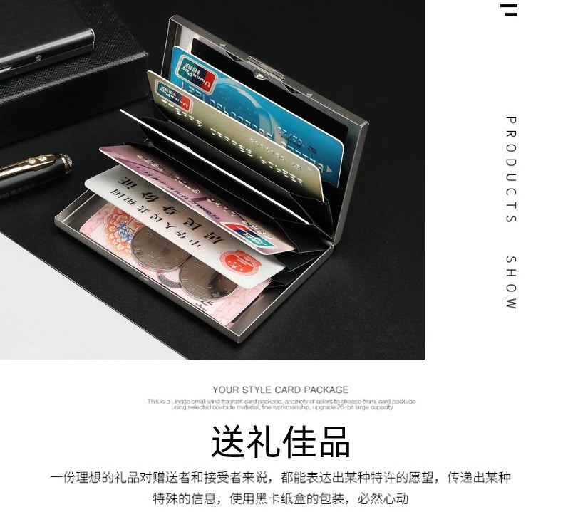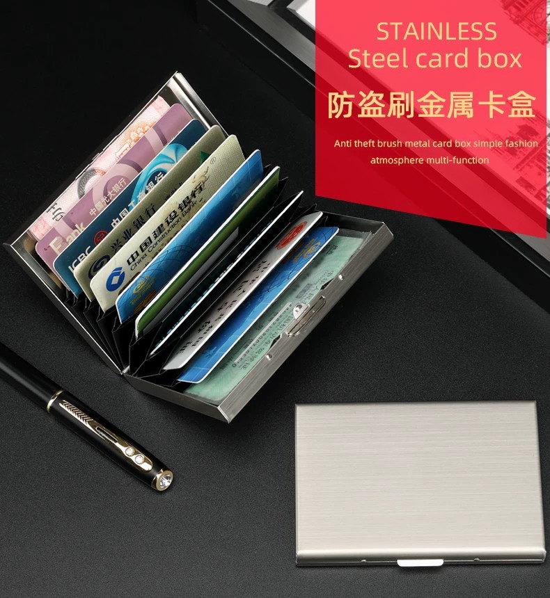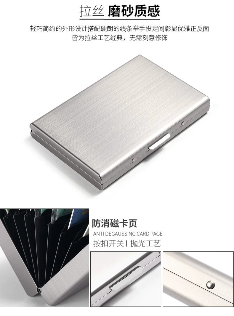 Titular de tarjeta de metal de alta gama para hombres y mujeres de acero inoxidable ultrafino anti-desmagnetizador caja de tarjeta pequeña cepillo antirrobo titular de la tarjeta bancaria titular de la tarjeta