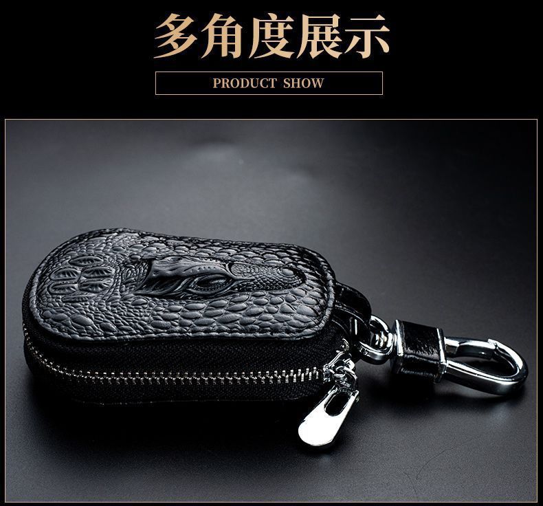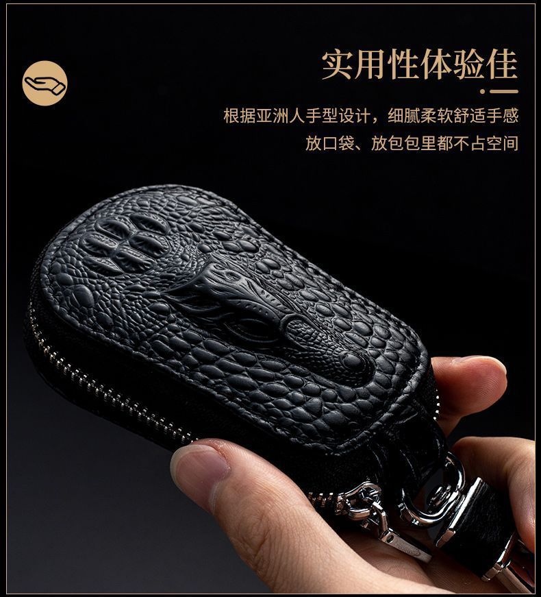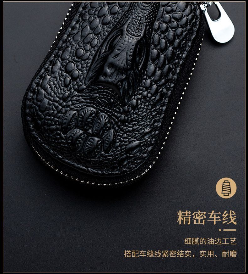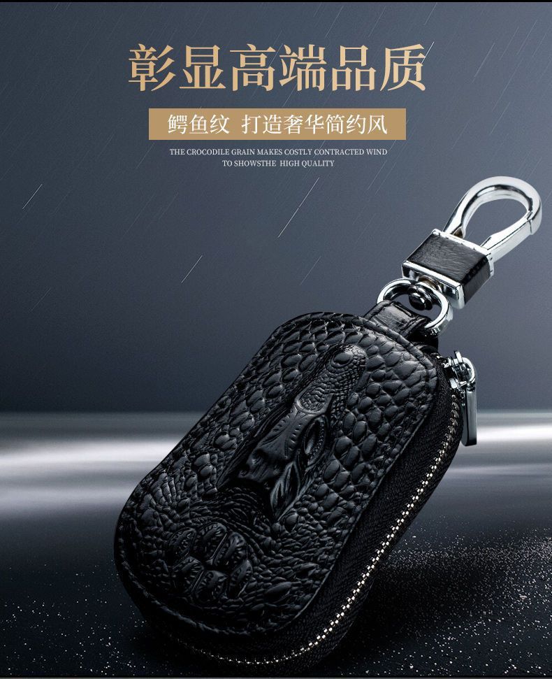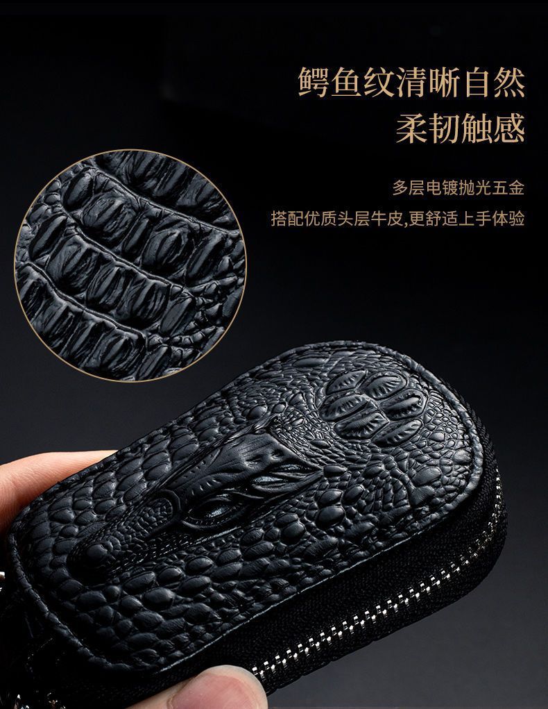 Bolso escolar de piel de vacuno de primera capa, funda universal para llaves de coche, hebilla multifuncional para hombre, control remoto de almacenamiento con cabeza de cocodrilo de cuero genuino.