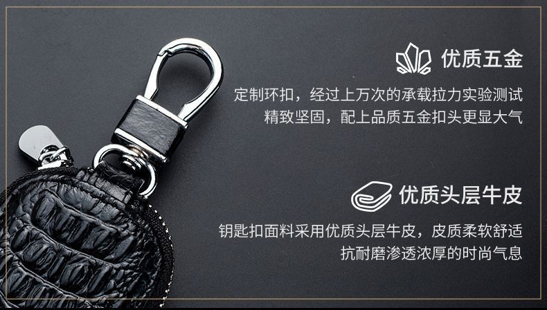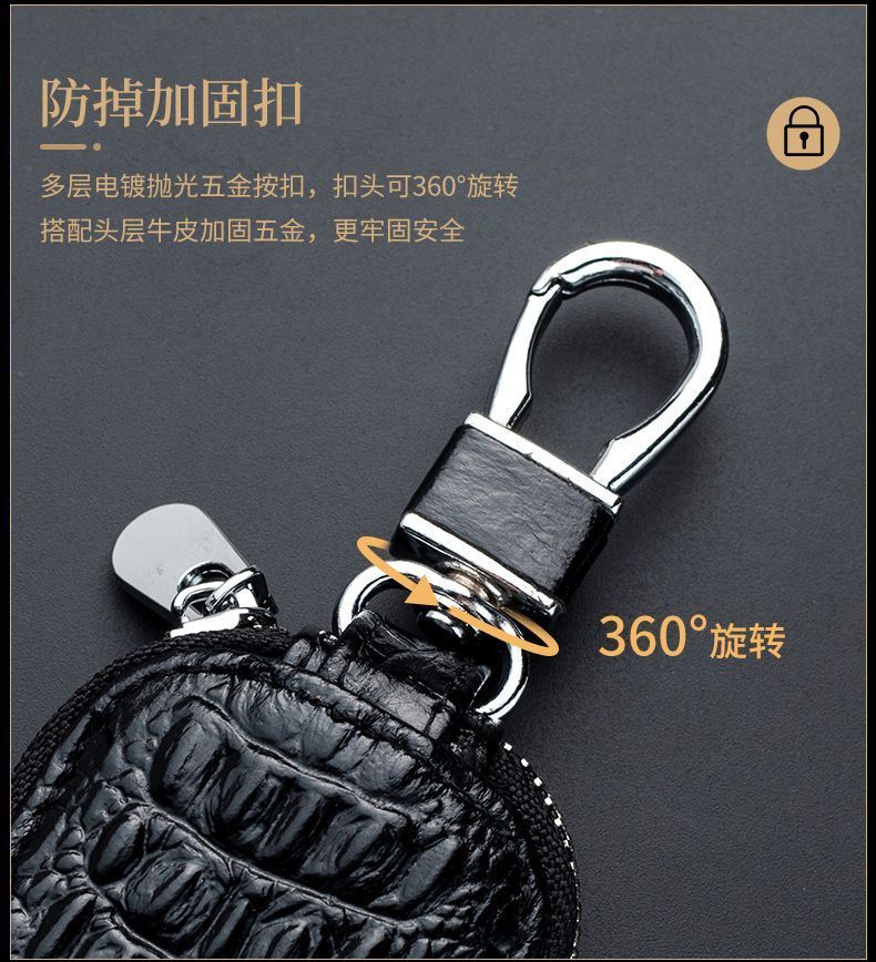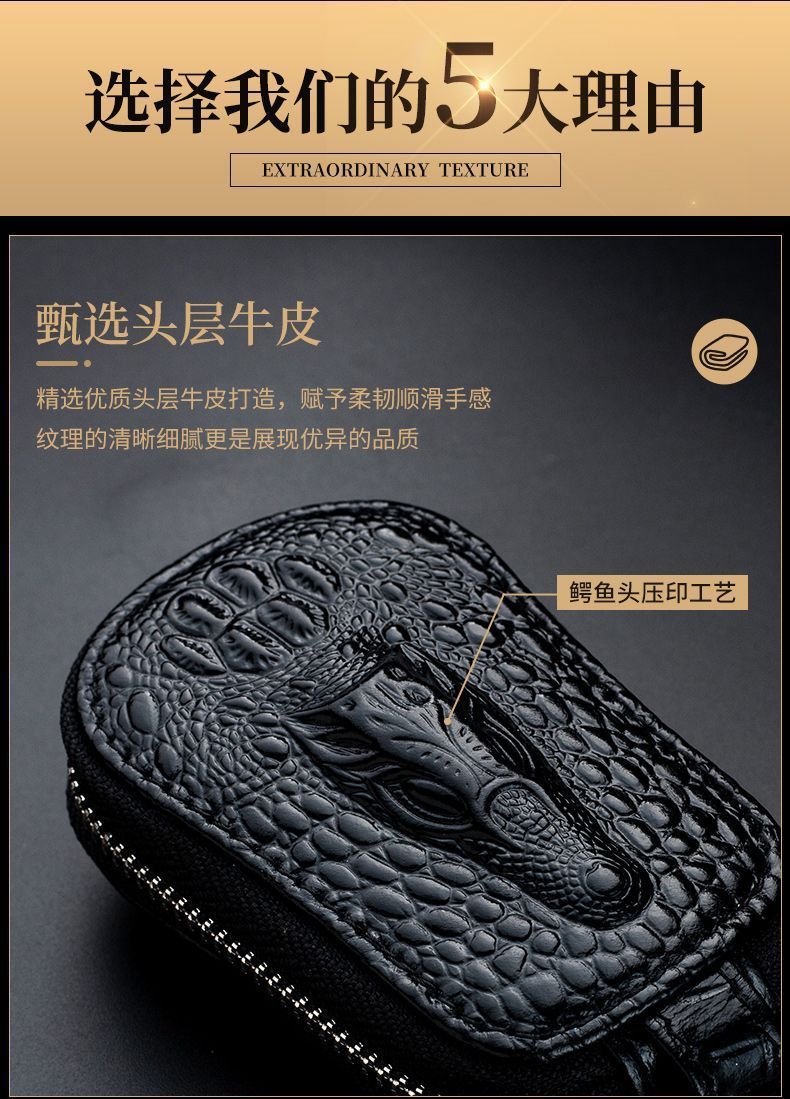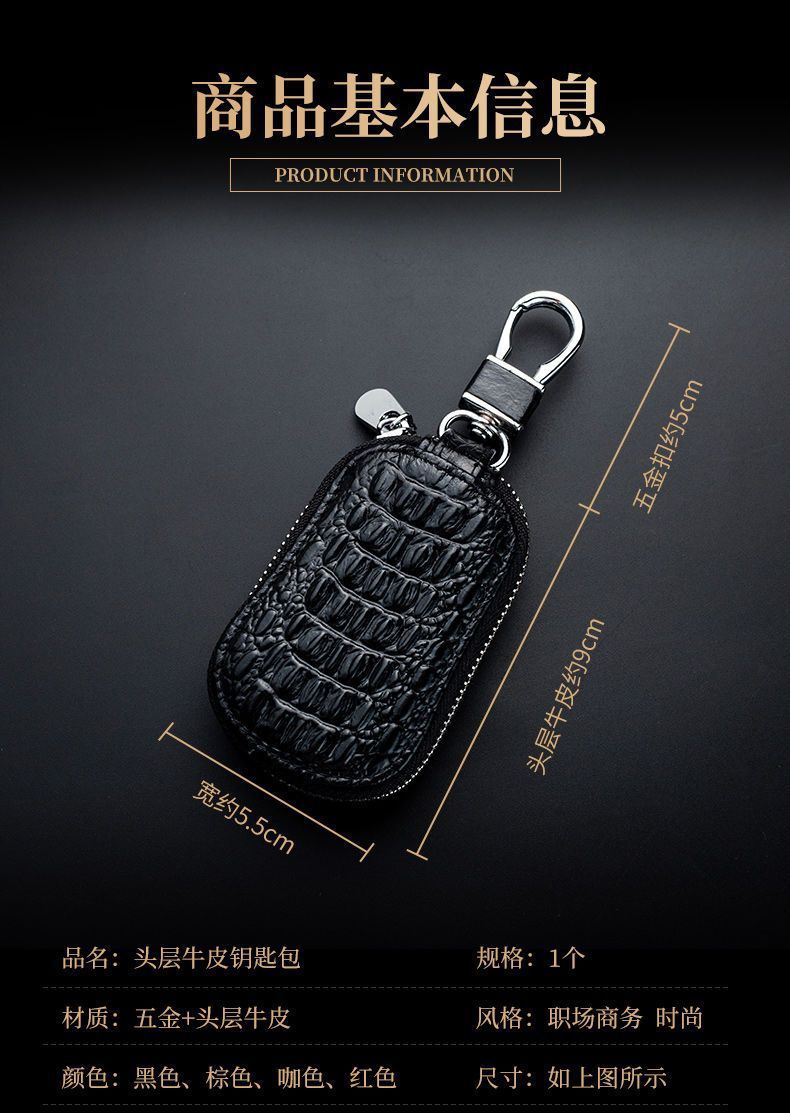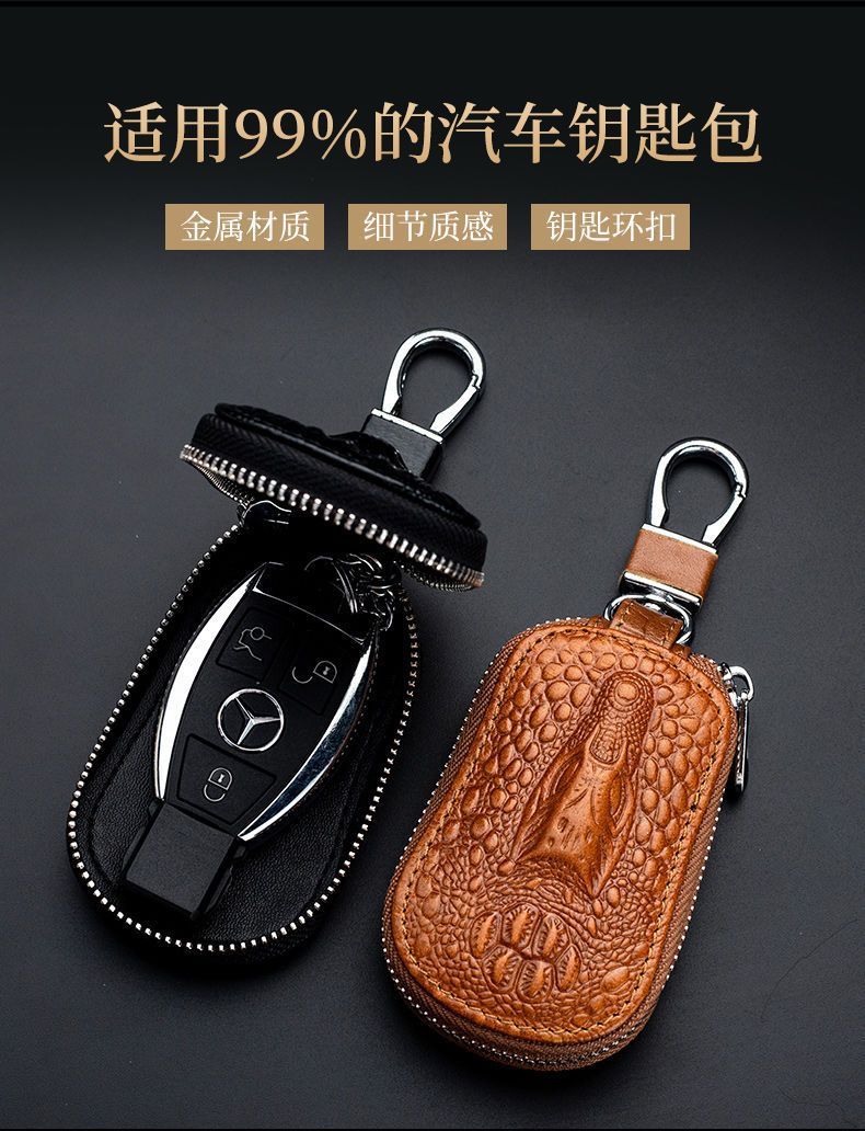 Bolso escolar de piel de vacuno de primera capa, funda universal para llaves de coche, hebilla multifuncional para hombre, control remoto de almacenamiento con cabeza de cocodrilo de cuero genuino.