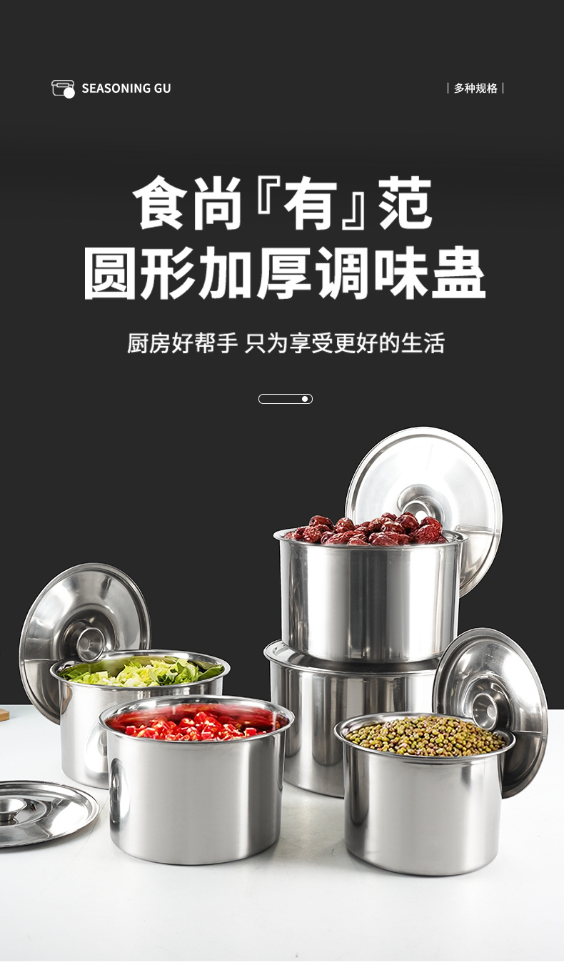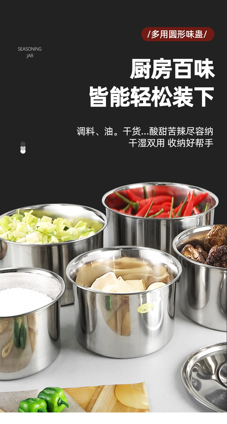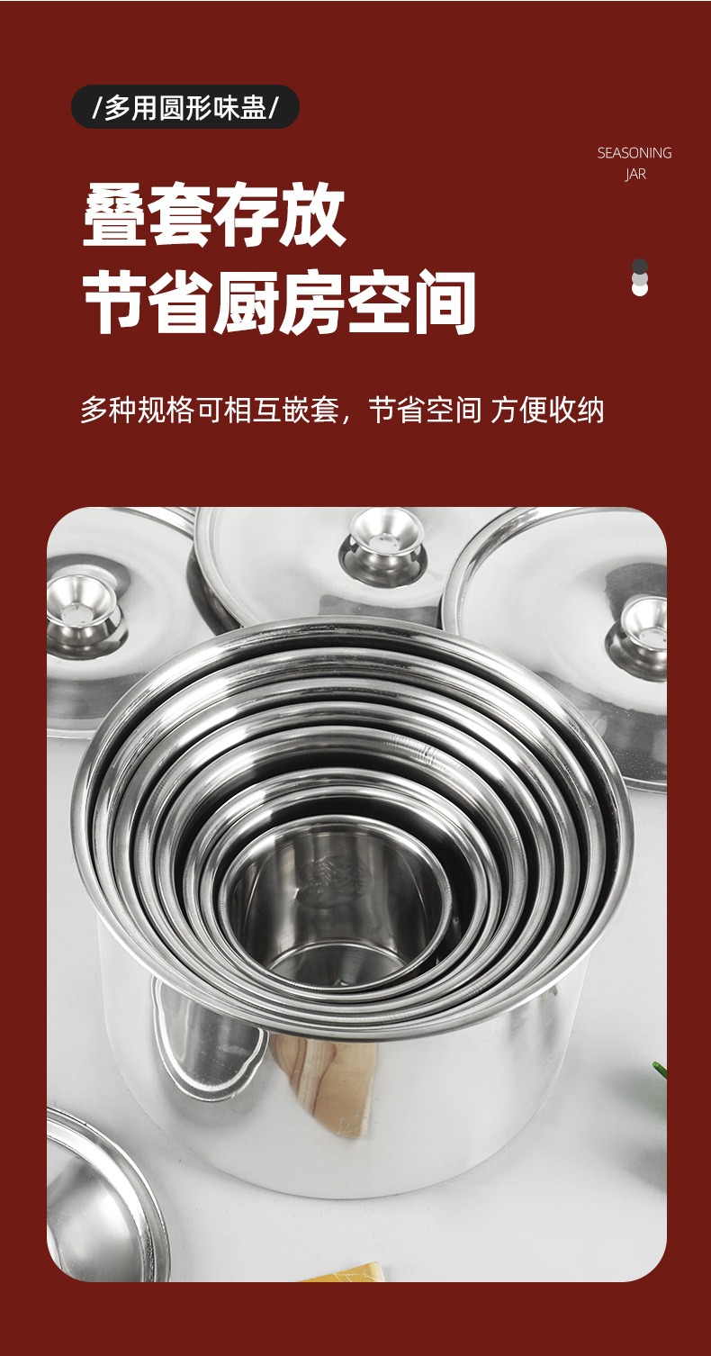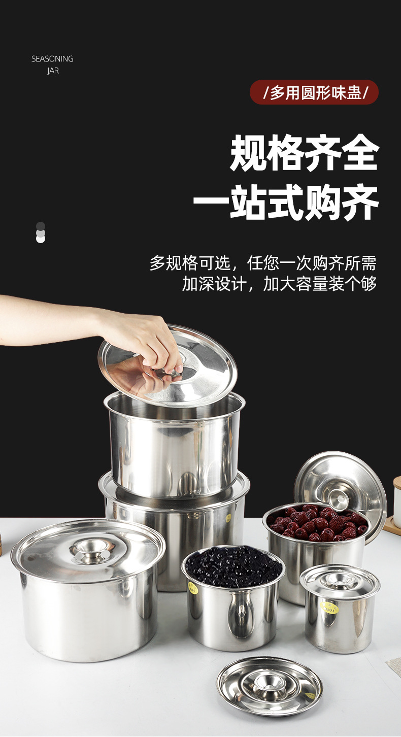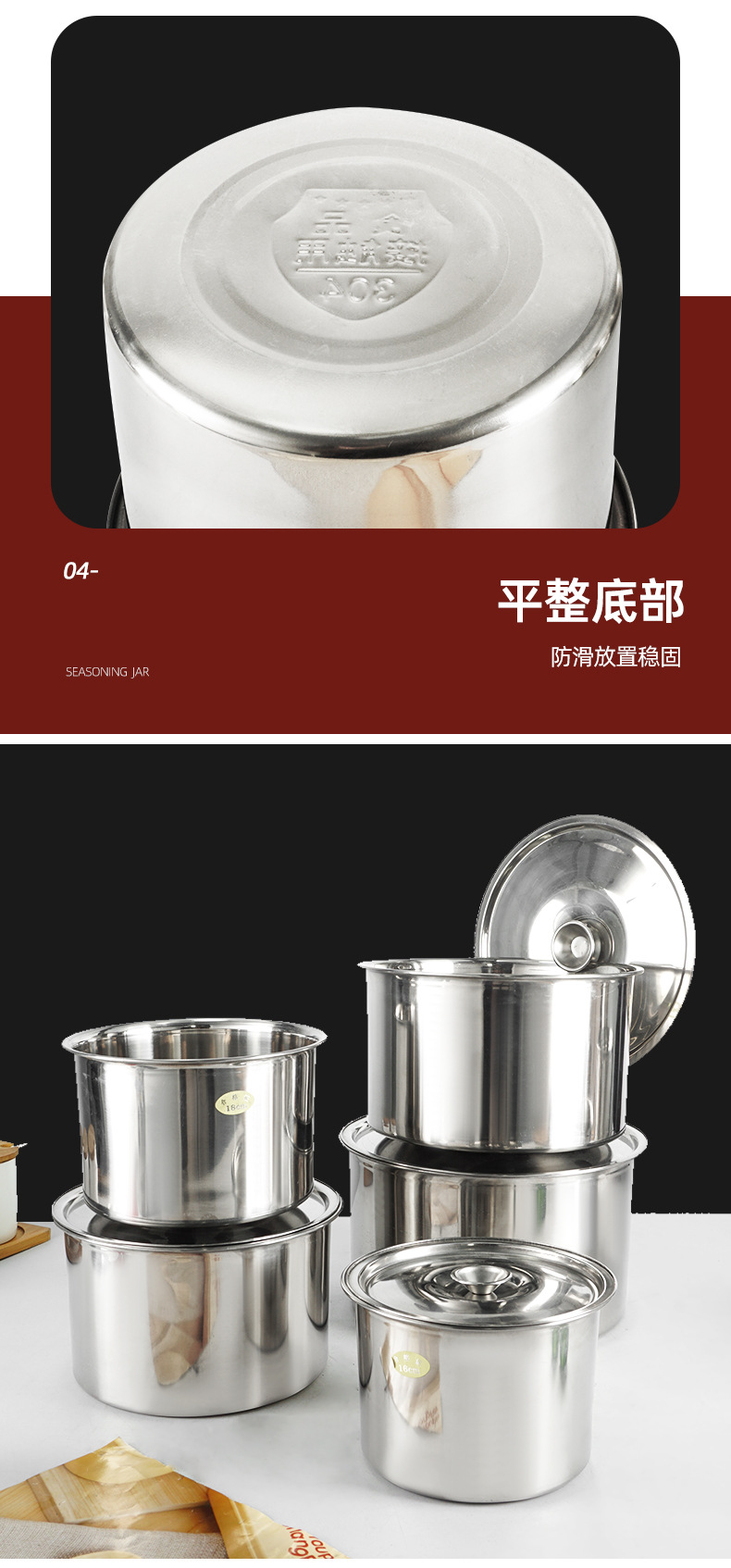 304 de acero inoxidable miso comercial Hotel suministros espesado condimento no magnético olla huevo tazón con tapa redonda condimento tarro