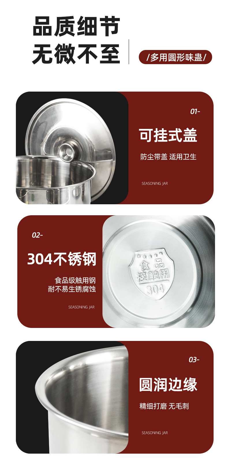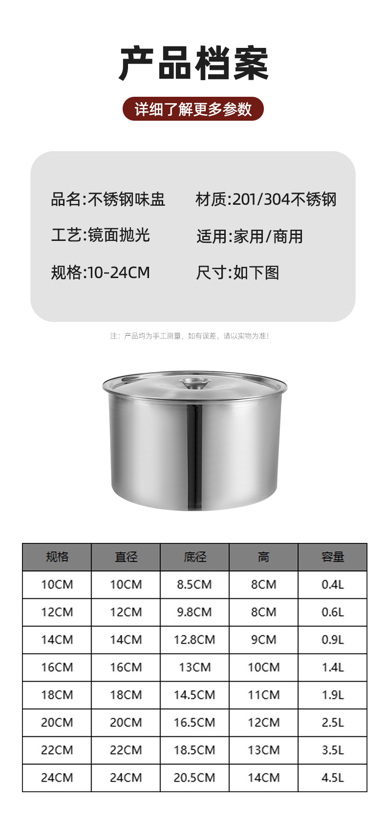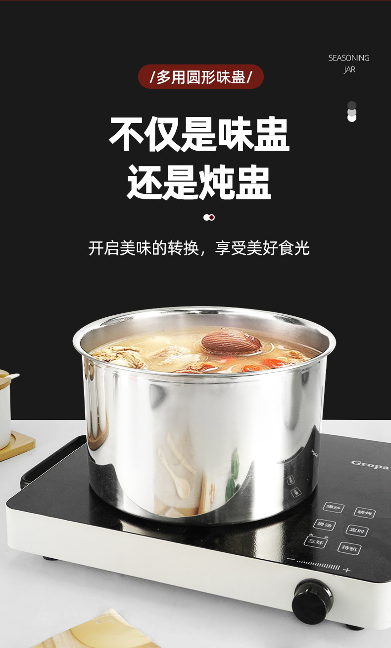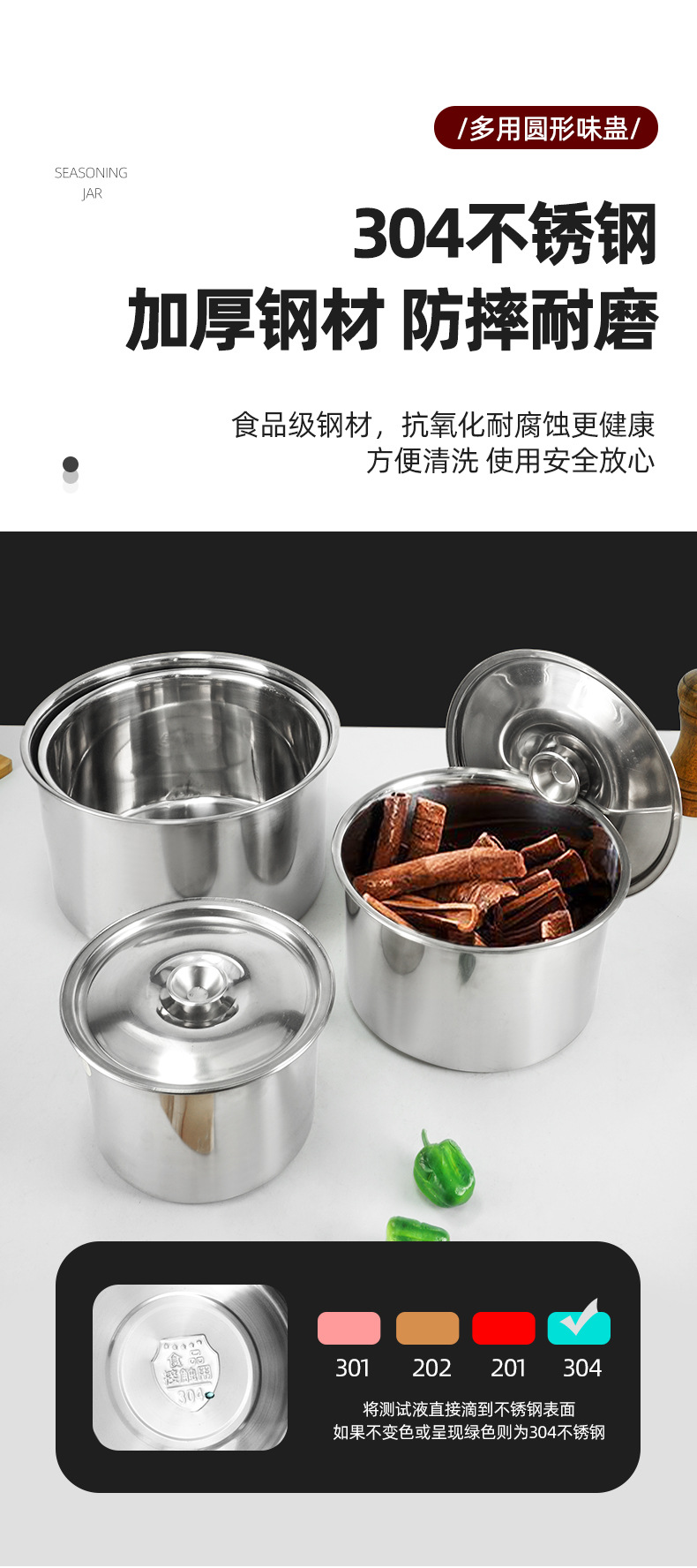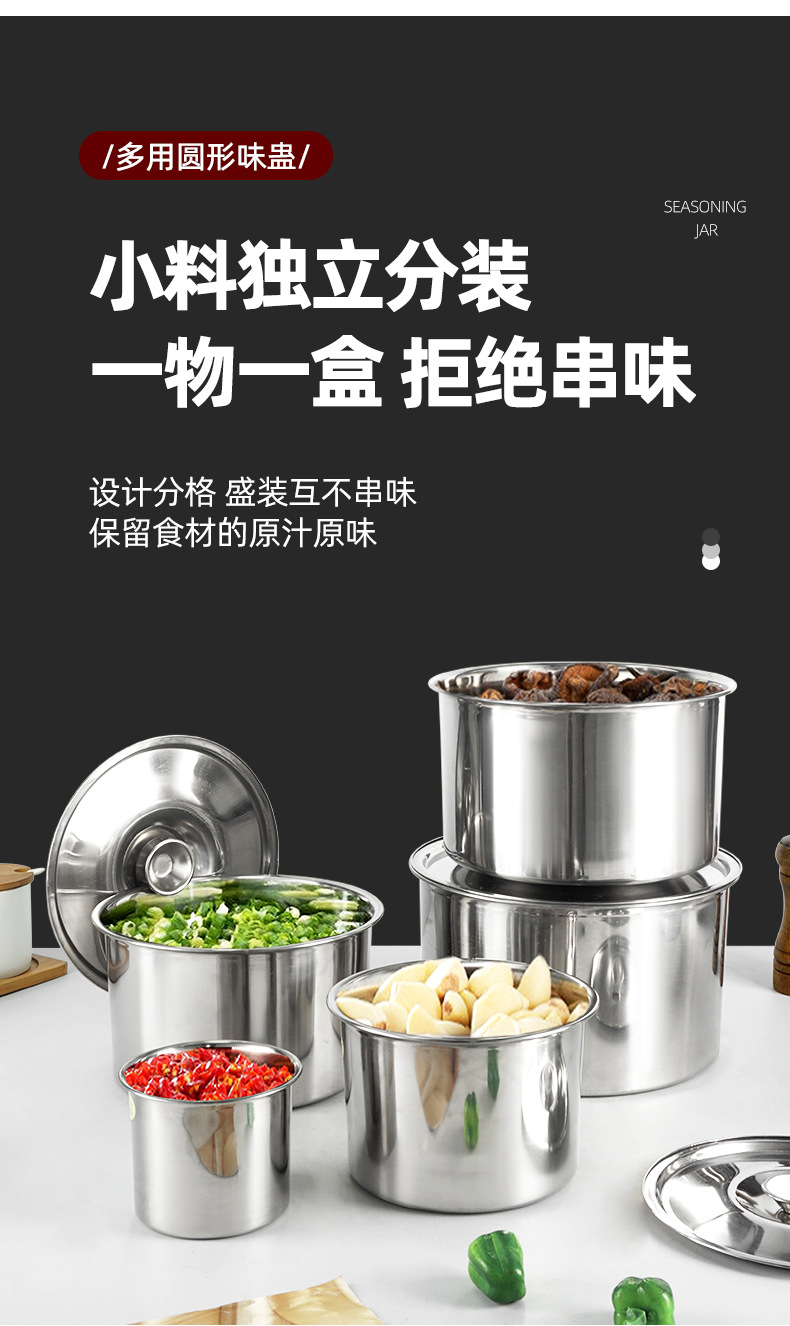 304 de acero inoxidable miso comercial Hotel suministros espesado condimento no magnético olla huevo tazón con tapa redonda condimento tarro