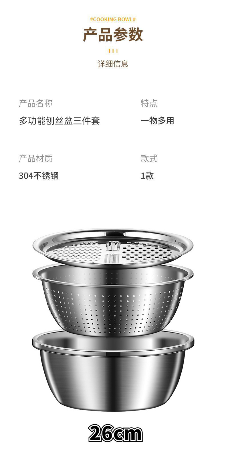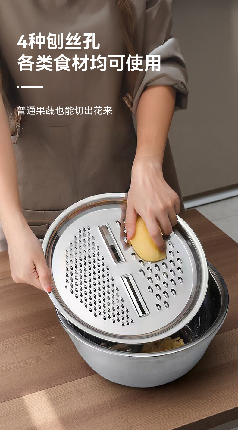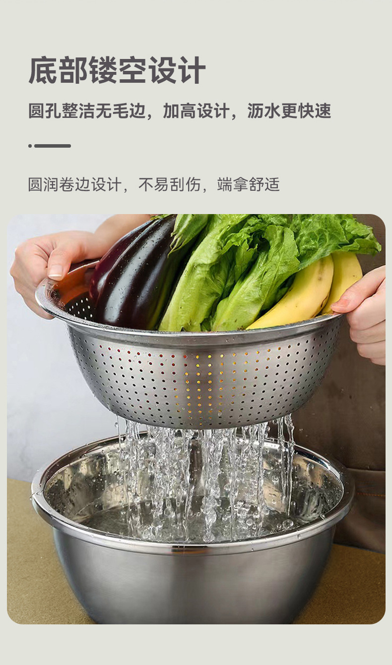 Acero inoxidable tamiz de arroz regalo conjunto de tres piezas multifuncional raspador para profundizar el lavado de verduras y ensalada de harina raspador doméstico