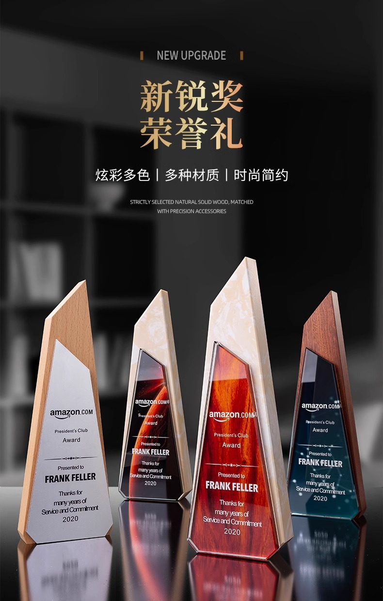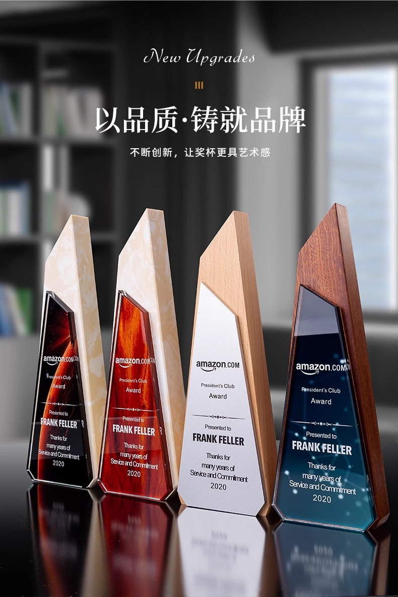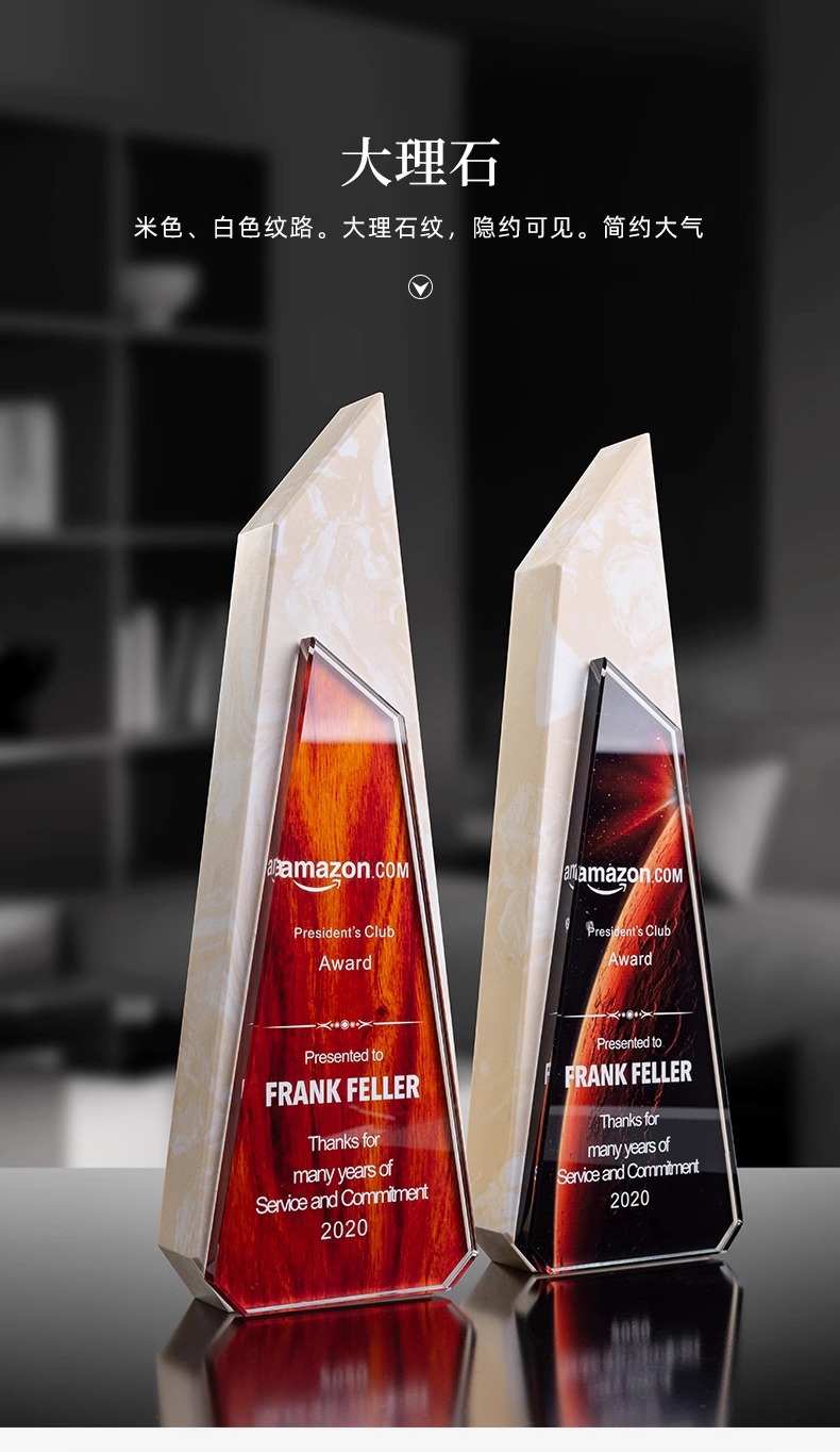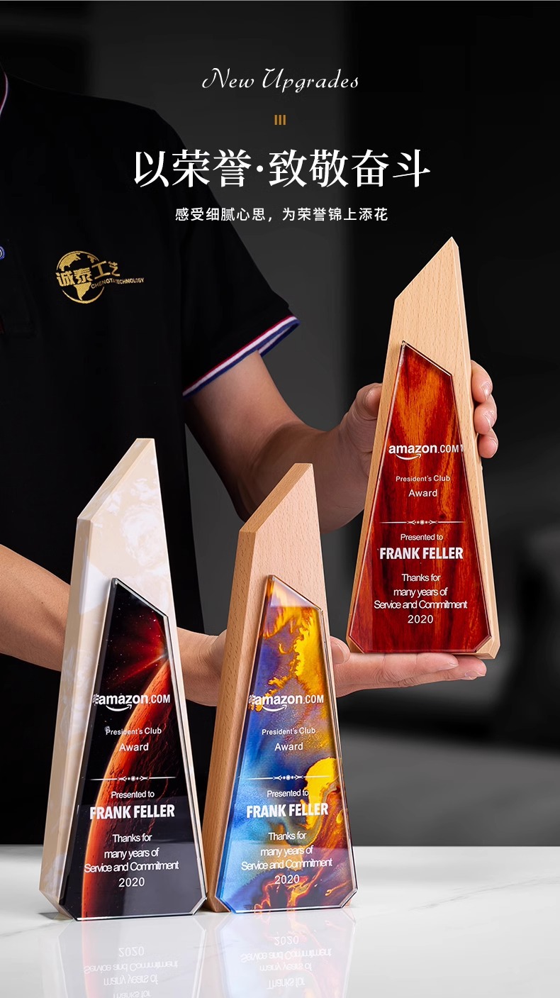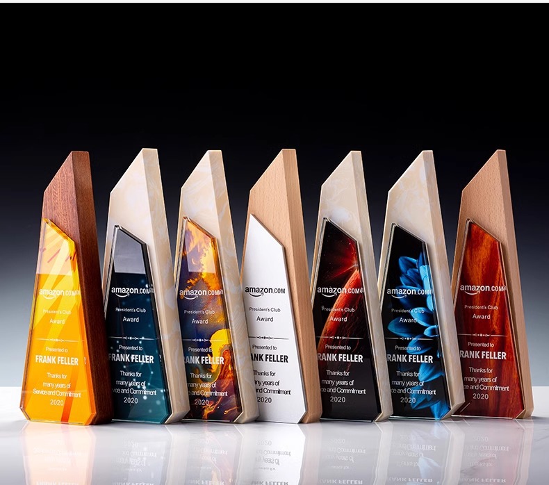 Trofeos de madera sólida trofeos de mármol para hacer grabaciones de la reunión anual de la empresa de impresión en color para los excelentes empleados