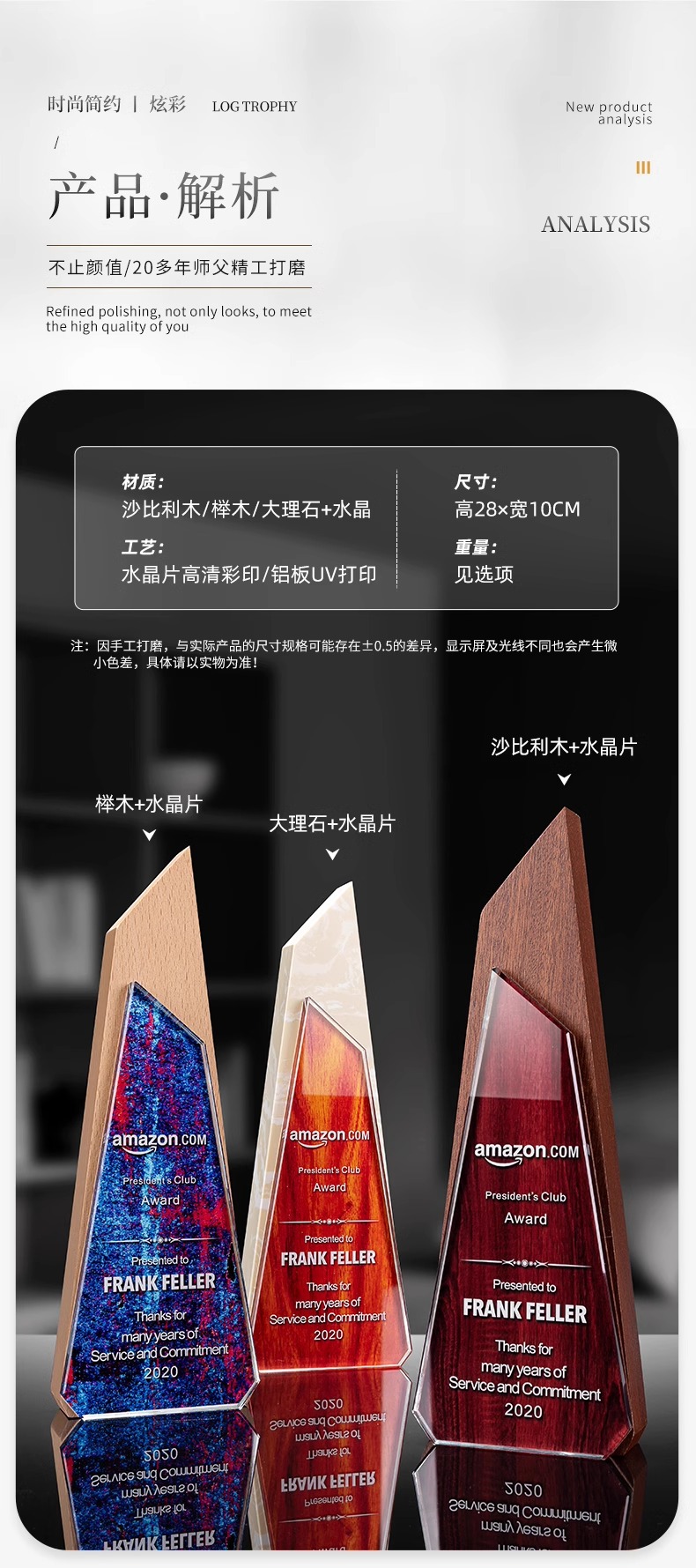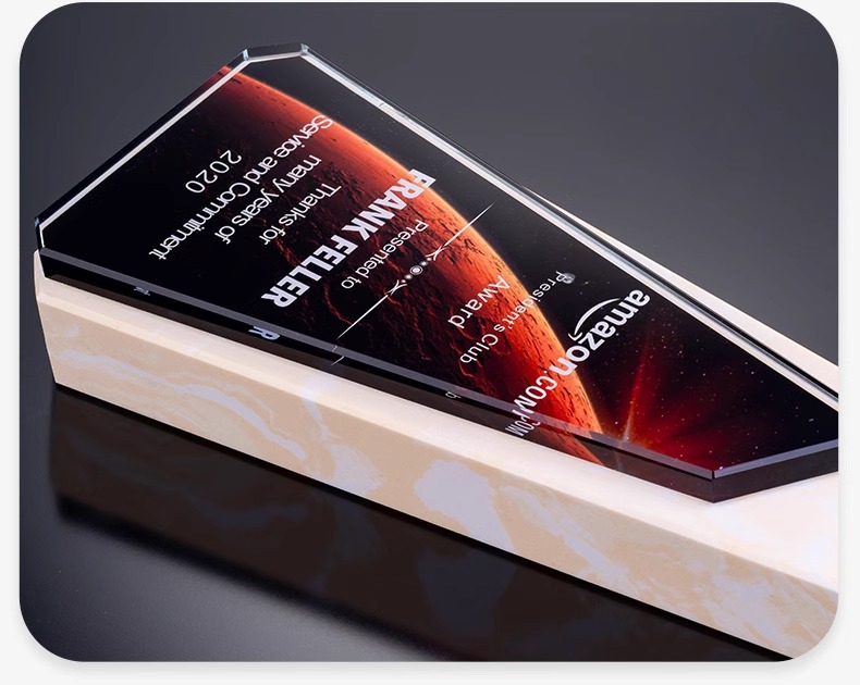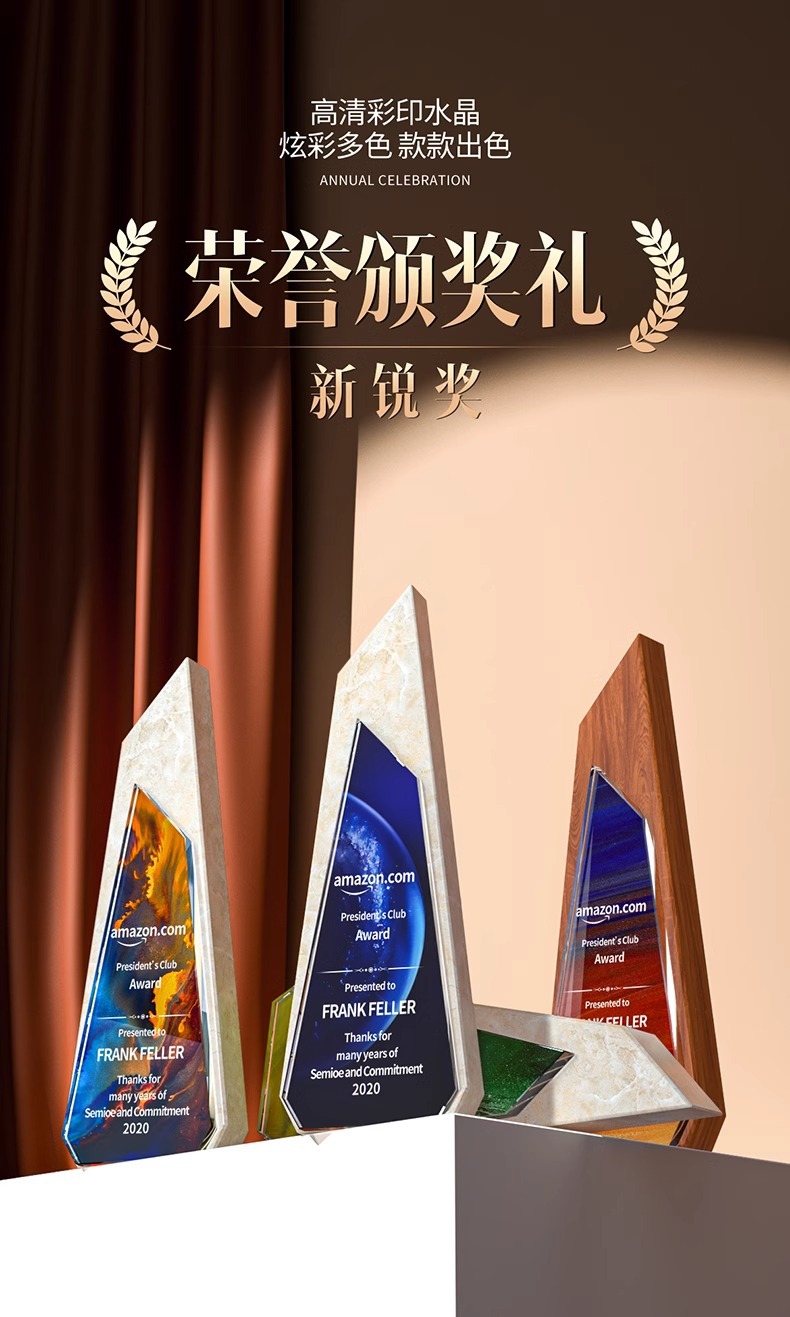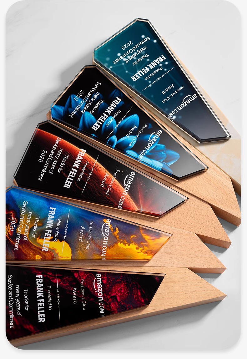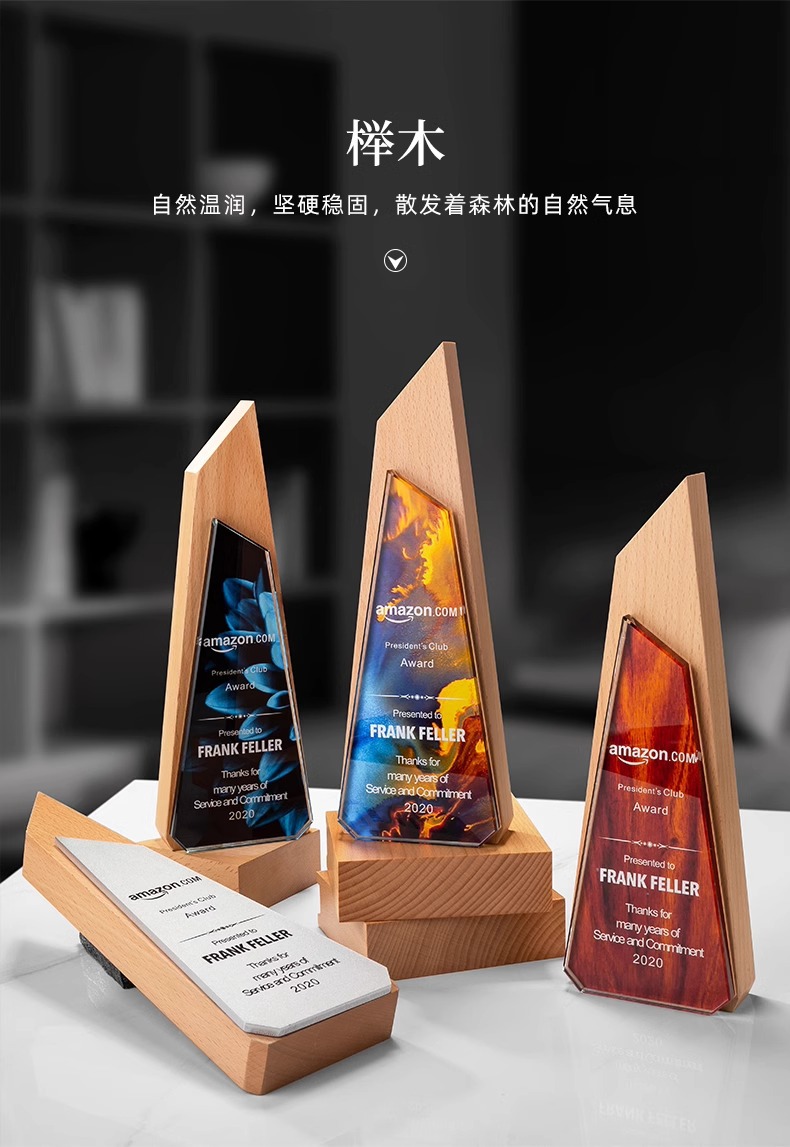 Trofeos de madera sólida trofeos de mármol para hacer grabaciones de la reunión anual de la empresa de impresión en color para los excelentes empleados