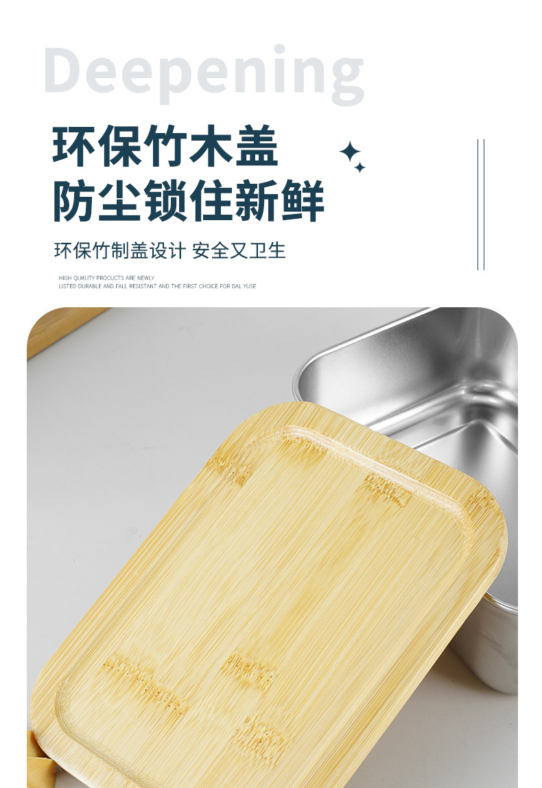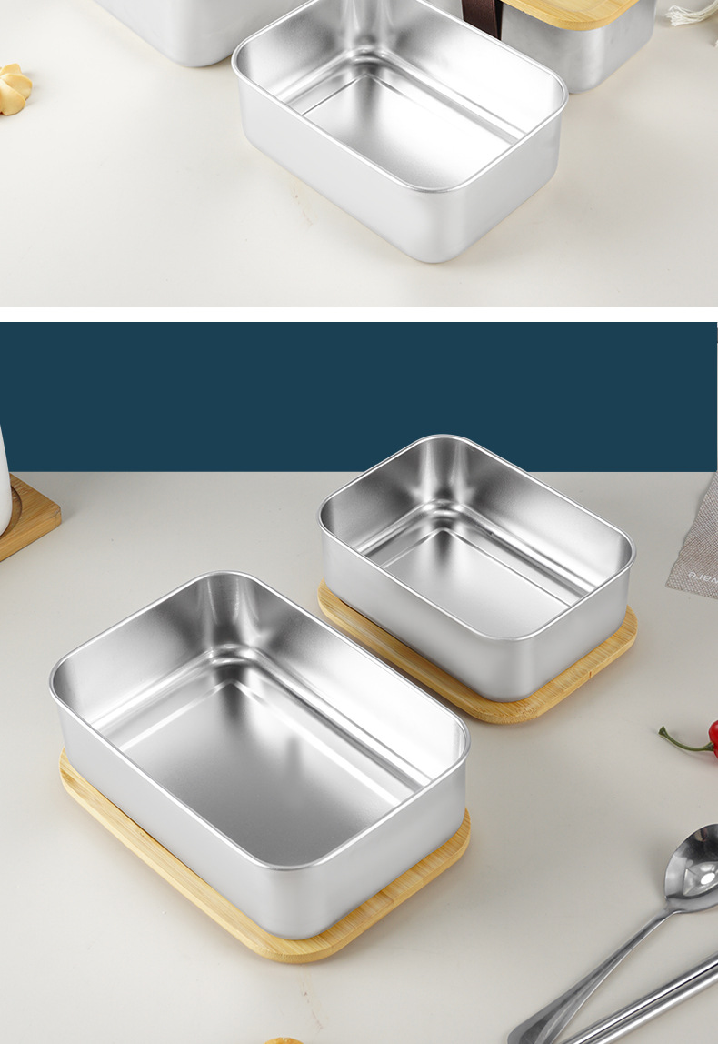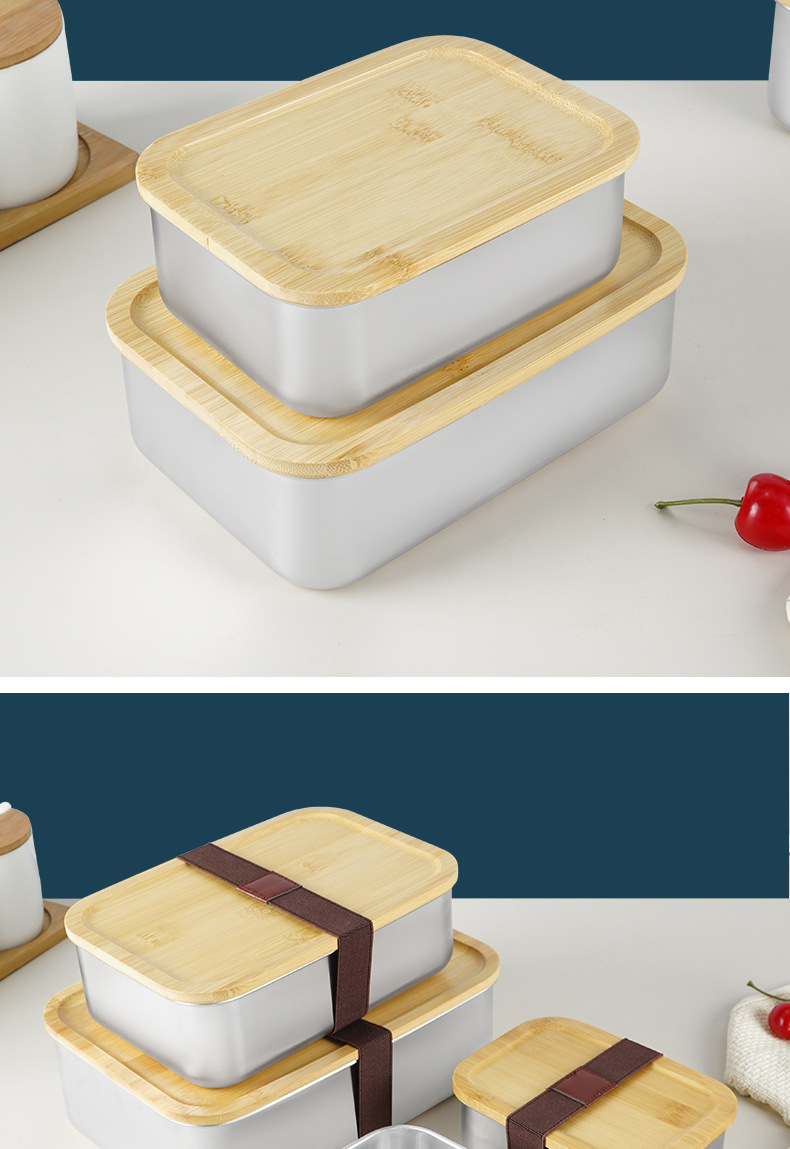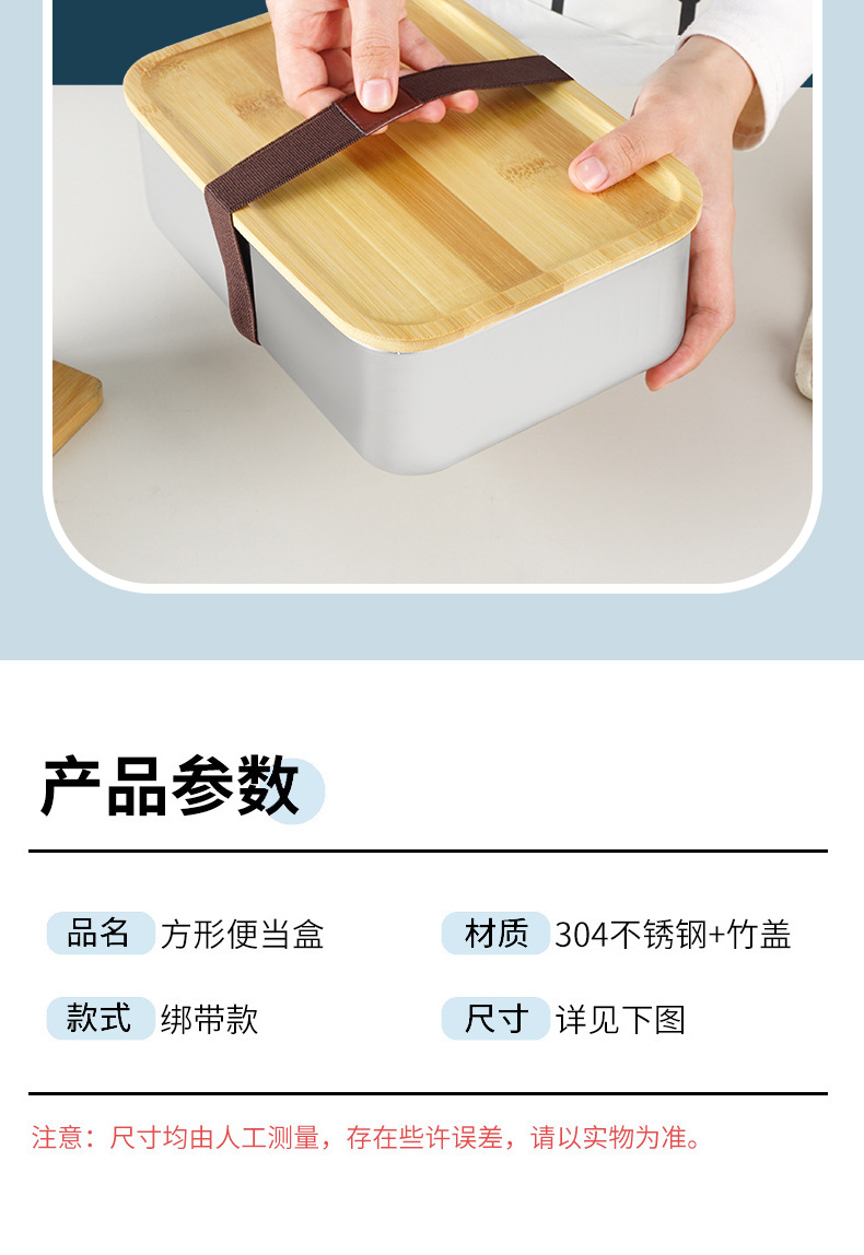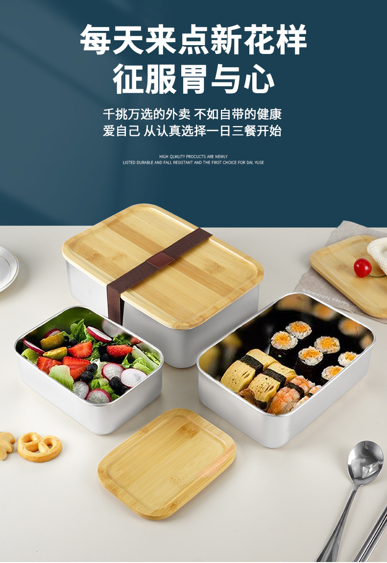 Caja de almuerzo japonesa lonchera portátil al aire libre con tapa Caja de almuerzo de madera de bambú de acero inoxidable 304 lonchera de una sola capa