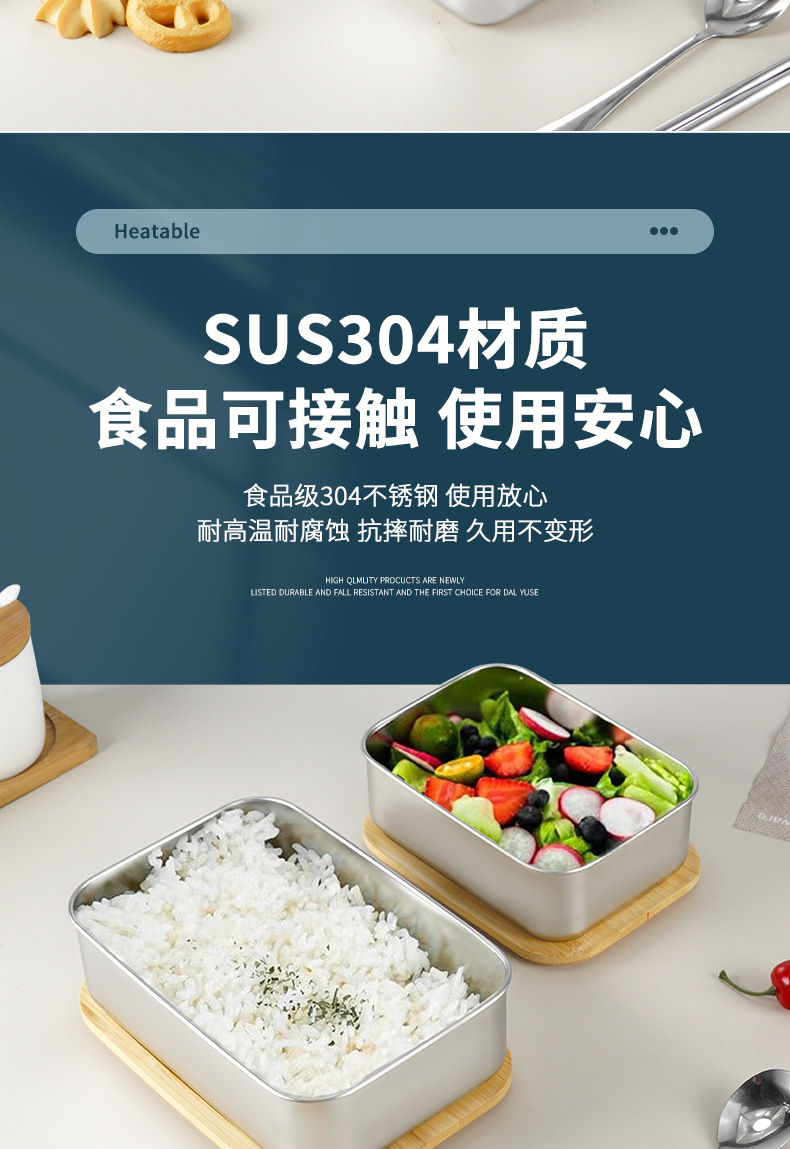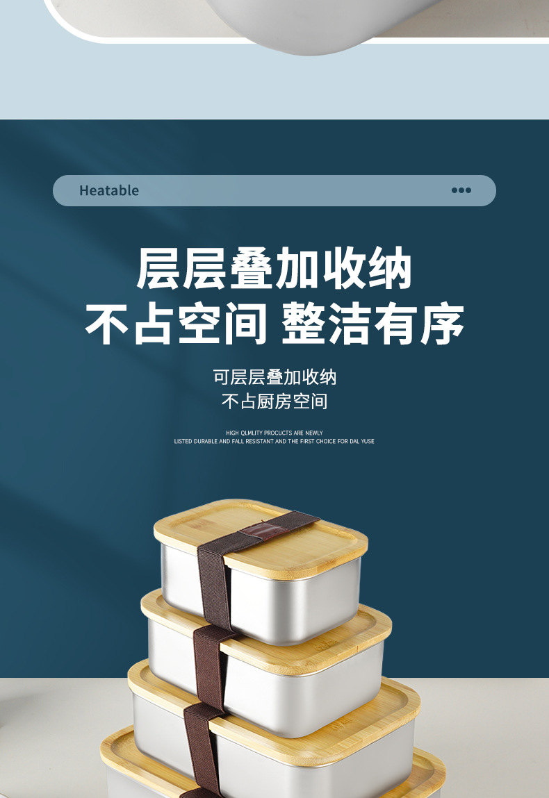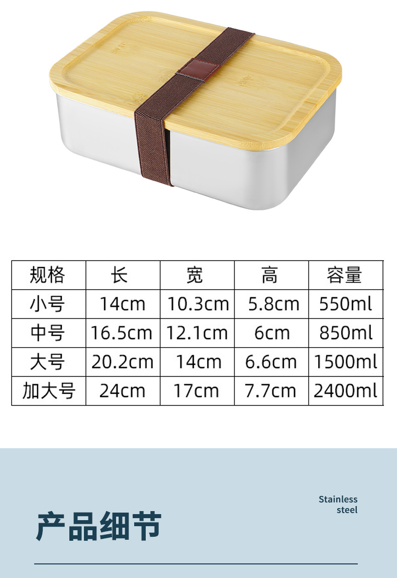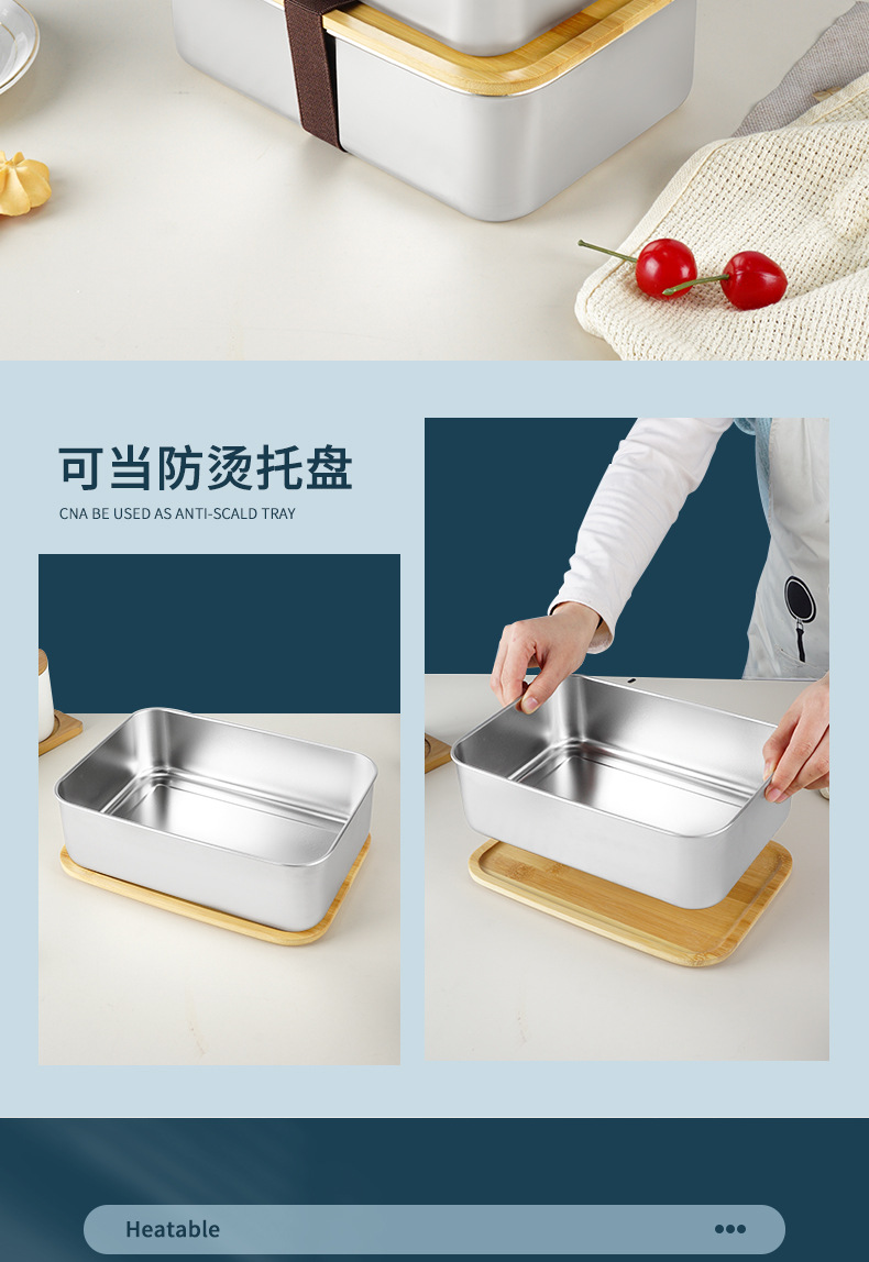 Caja de almuerzo japonesa lonchera portátil al aire libre con tapa Caja de almuerzo de madera de bambú de acero inoxidable 304 lonchera de una sola capa