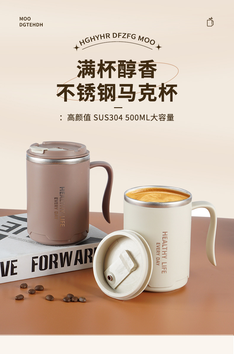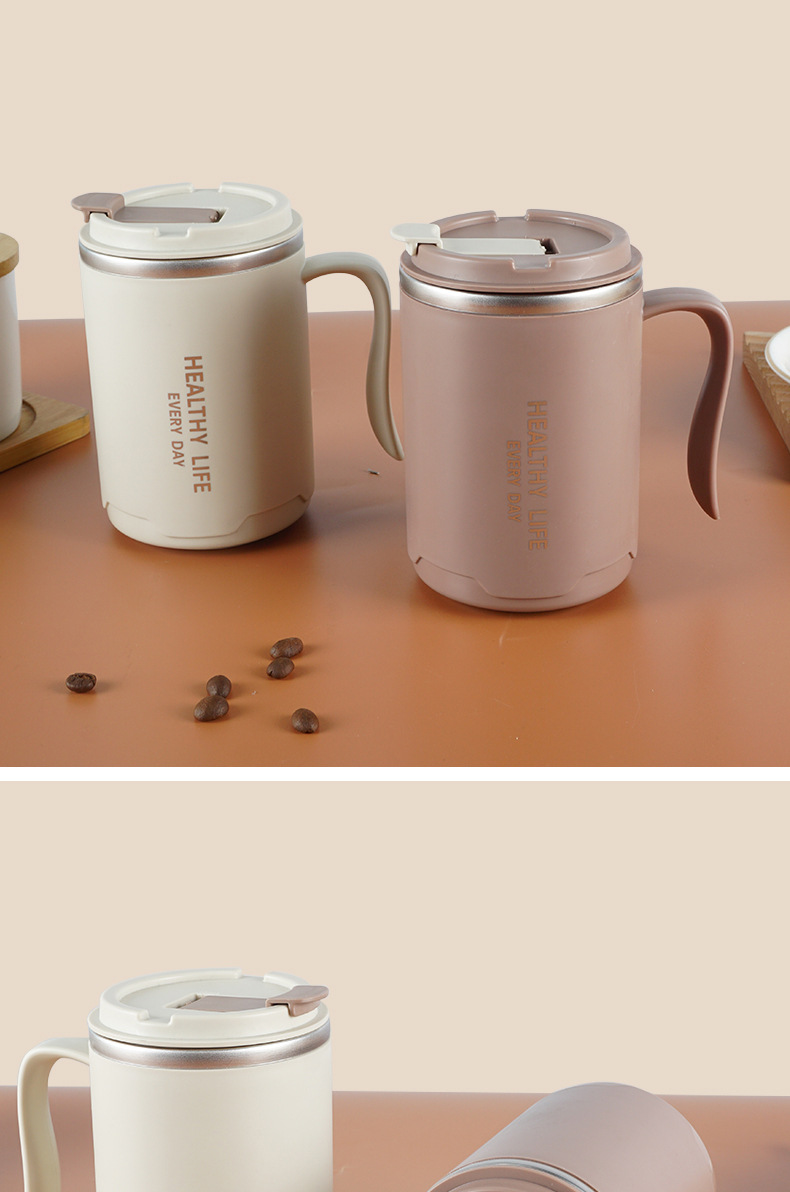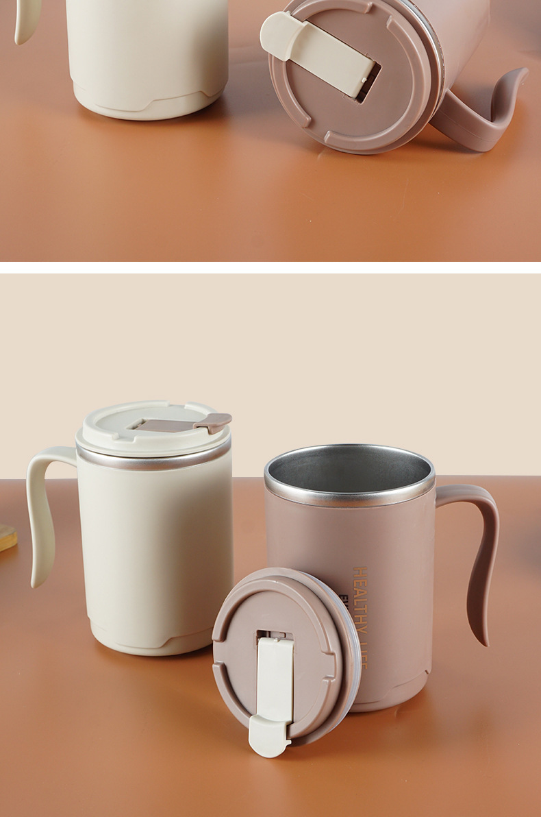 304 taza de acero inoxidable taza de agua de doble capa con tapa Oficina taza de té portátil taza de café de regalo con mango