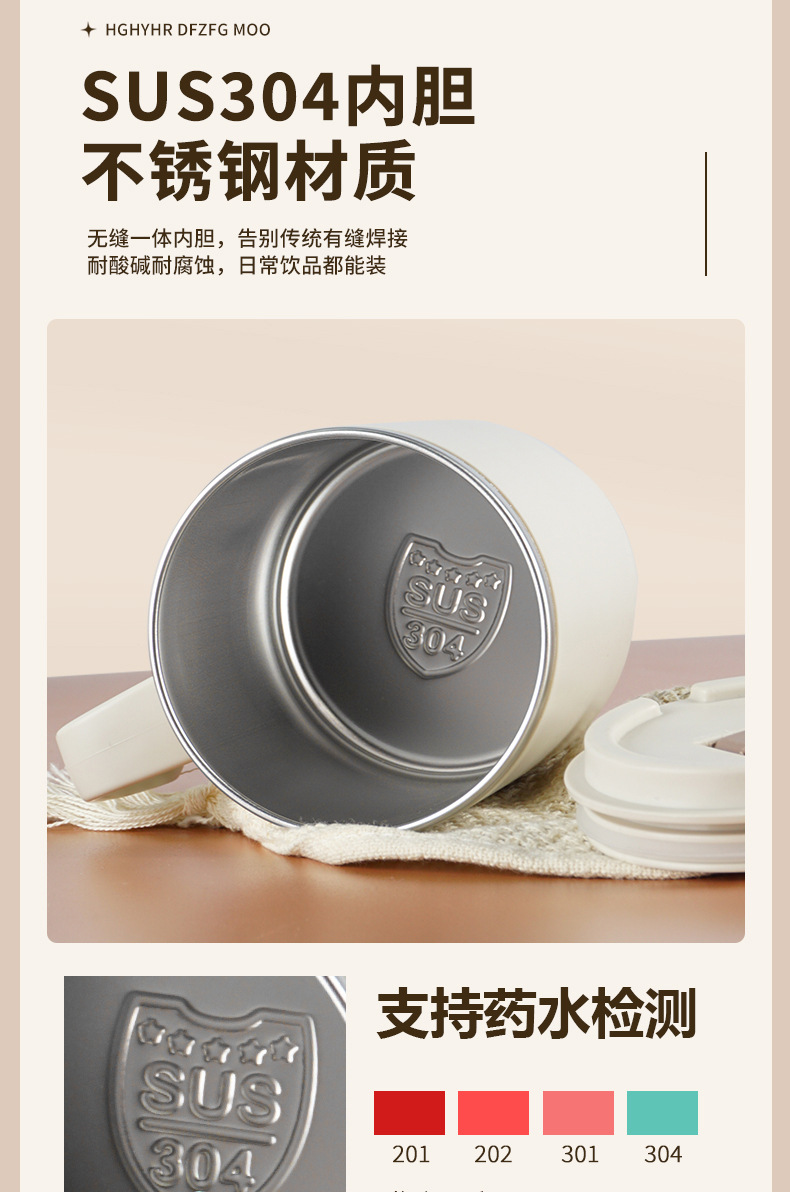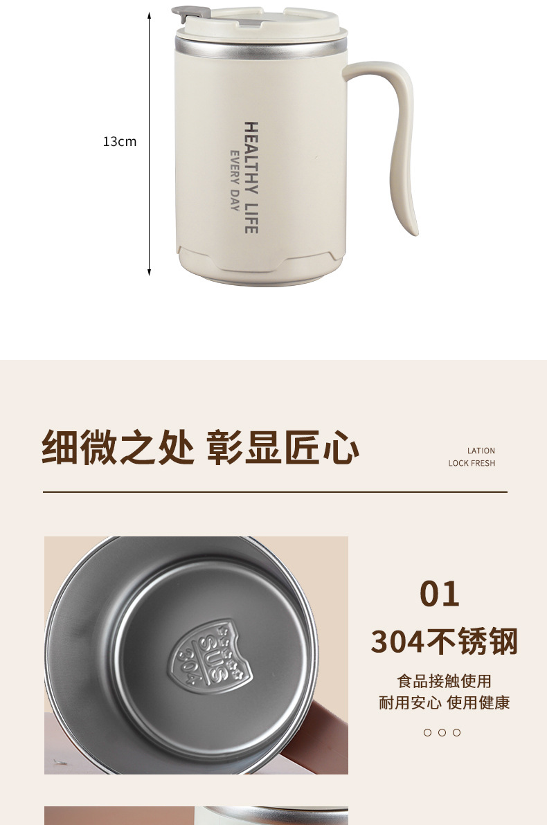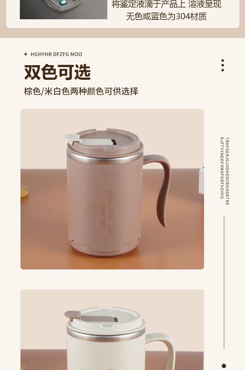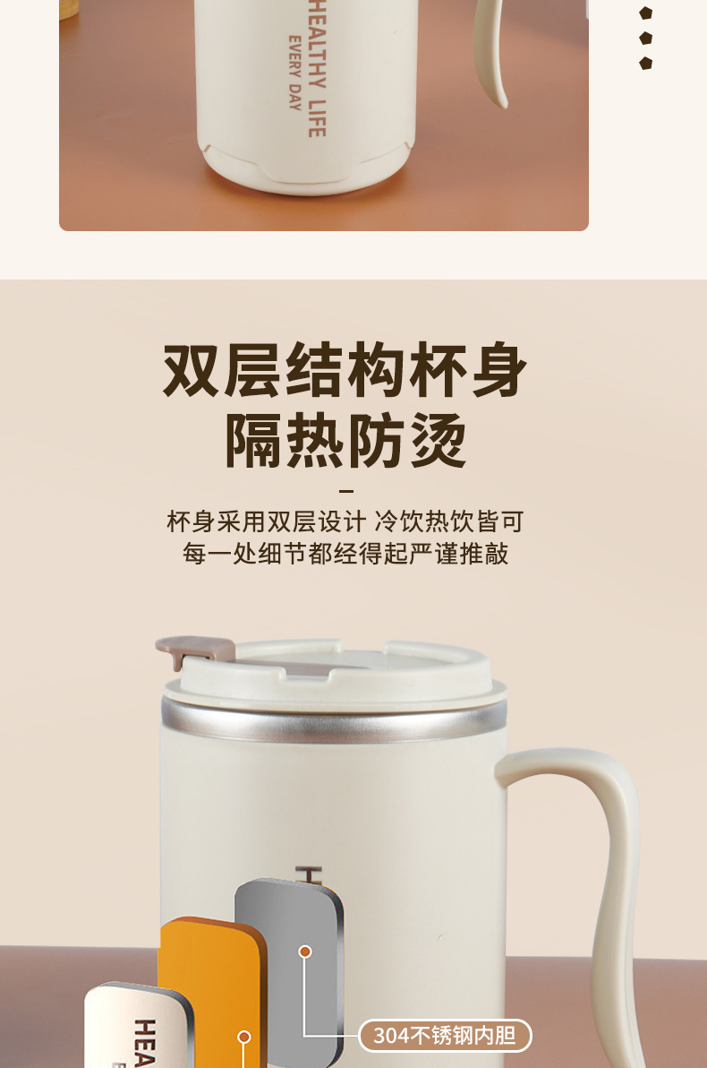 304 taza de acero inoxidable taza de agua de doble capa con tapa Oficina taza de té portátil taza de café de regalo con mango