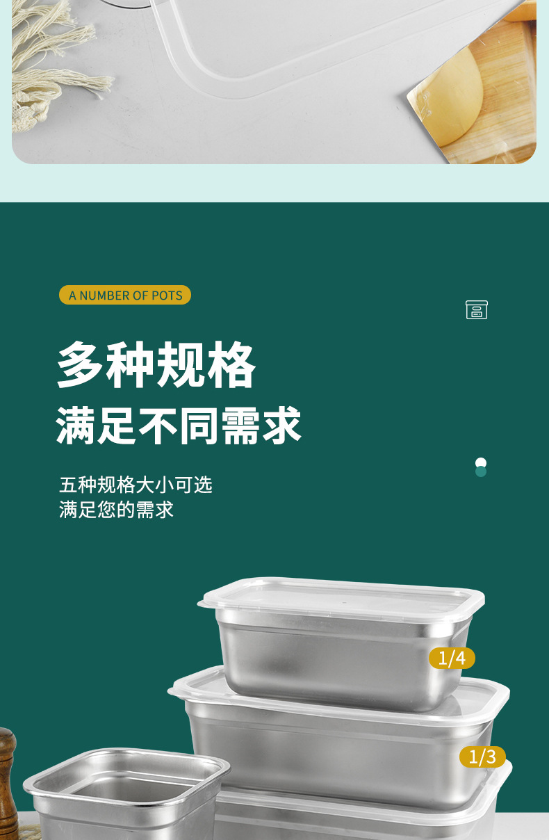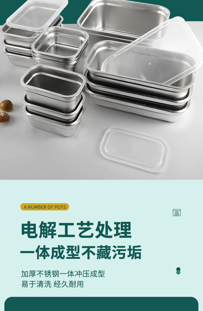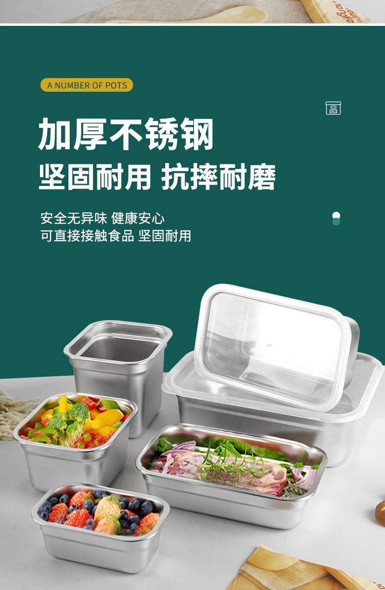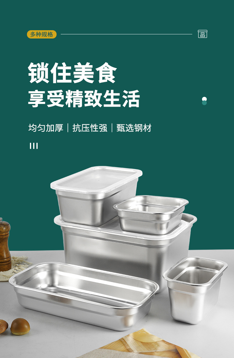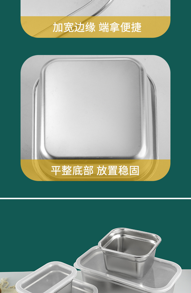 Cuenca de porciones de acero inoxidable con cubierta rectangular caja de preservación de alimentos carro de comida rápida cuenca de verduras leche tienda de té caja de material pequeño