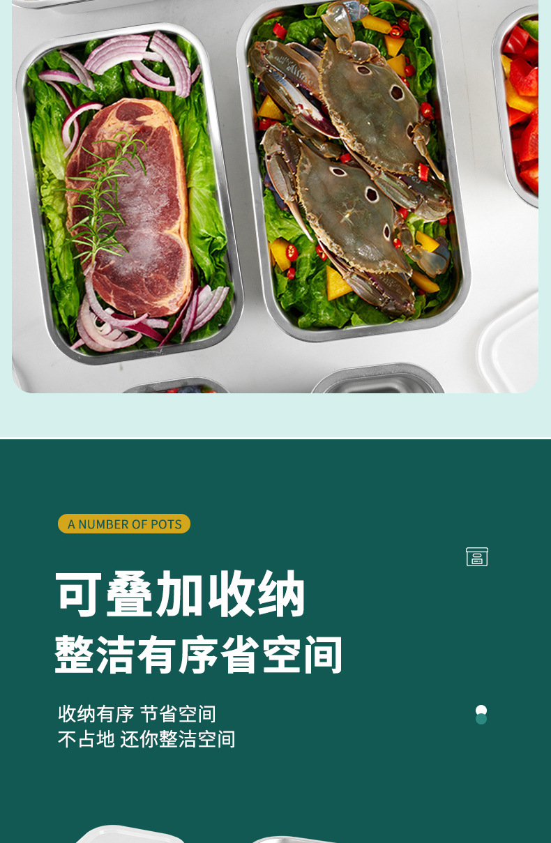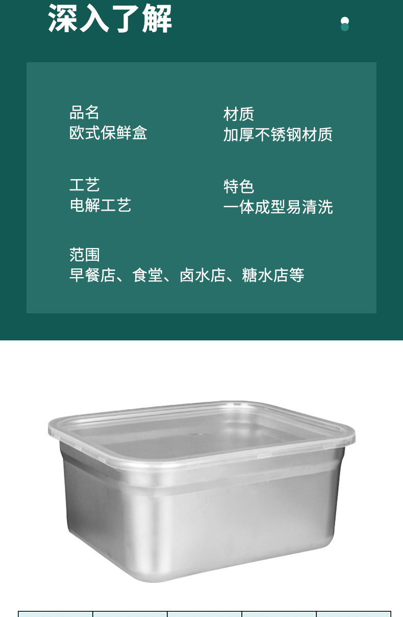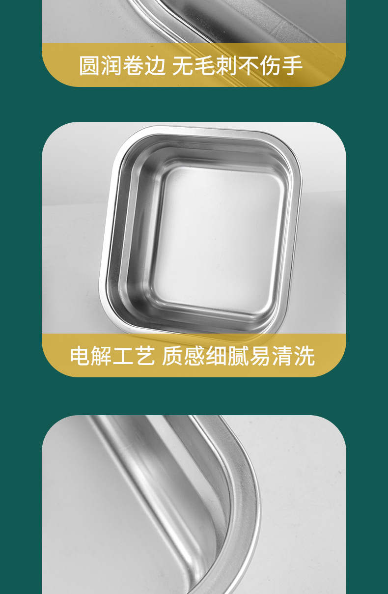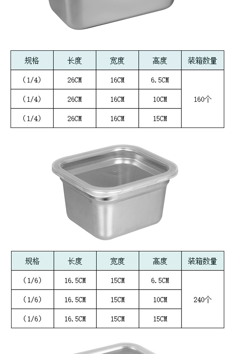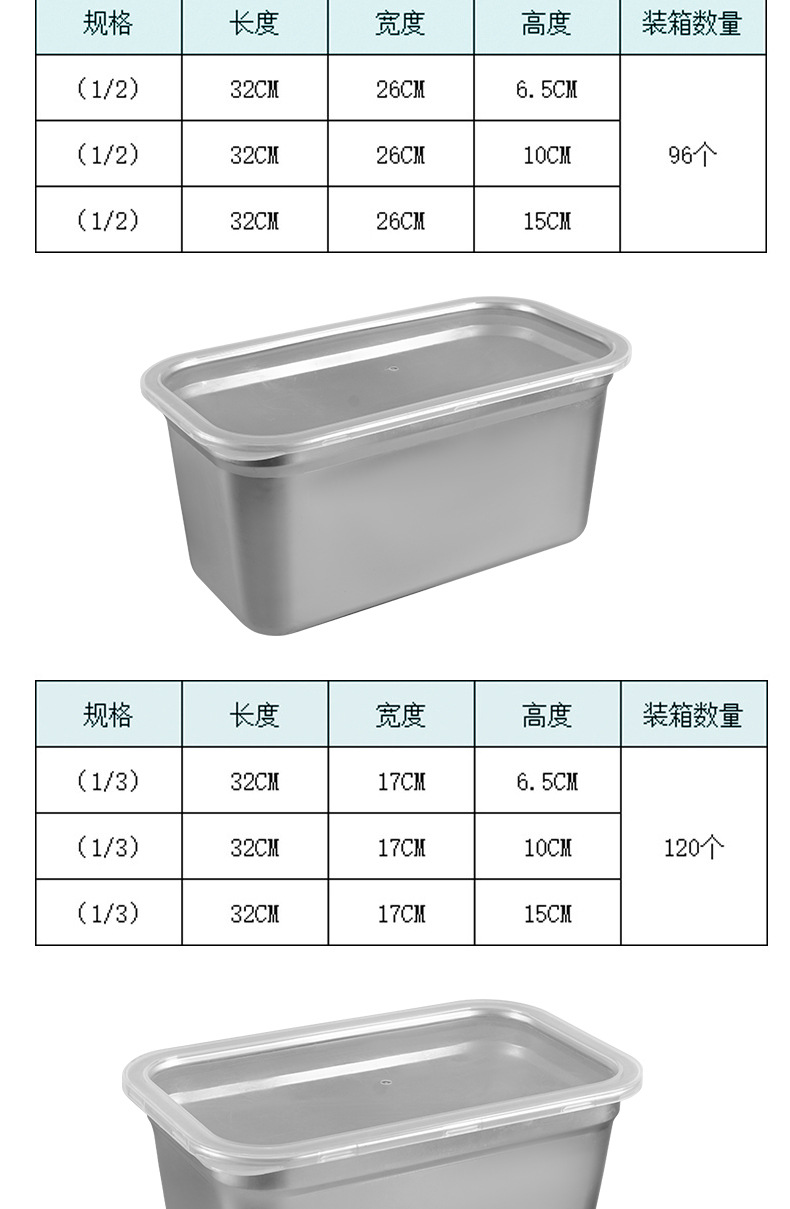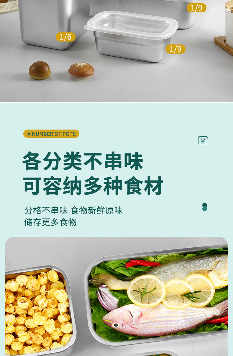Cuenca de porciones de acero inoxidable con cubierta rectangular caja de preservación de alimentos carro de comida rápida cuenca de verduras leche tienda de té caja de material pequeño