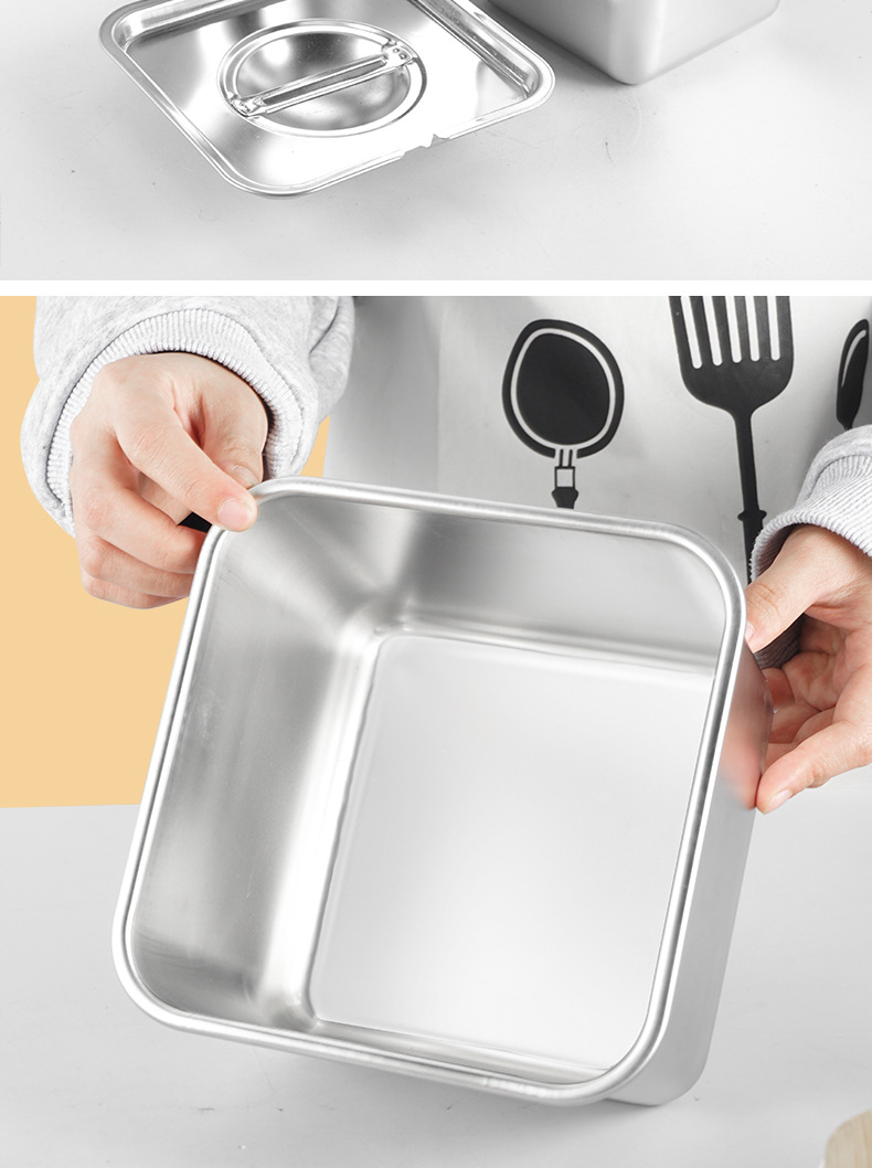 Acero inoxidable cuadrado de sabor grueso con tapa condimento tanque de condimentos cocina cuenca de manteca de cerdo caja de condimentos comercial caja de muestra