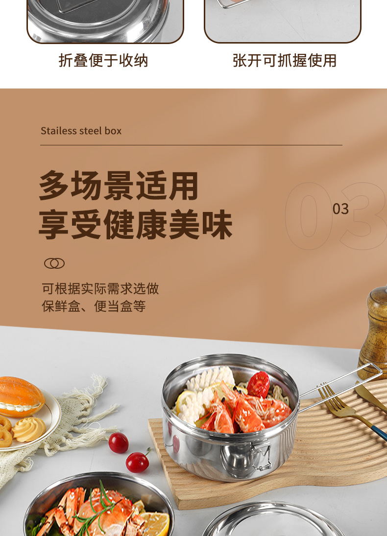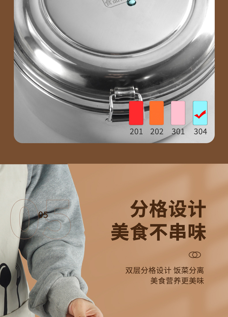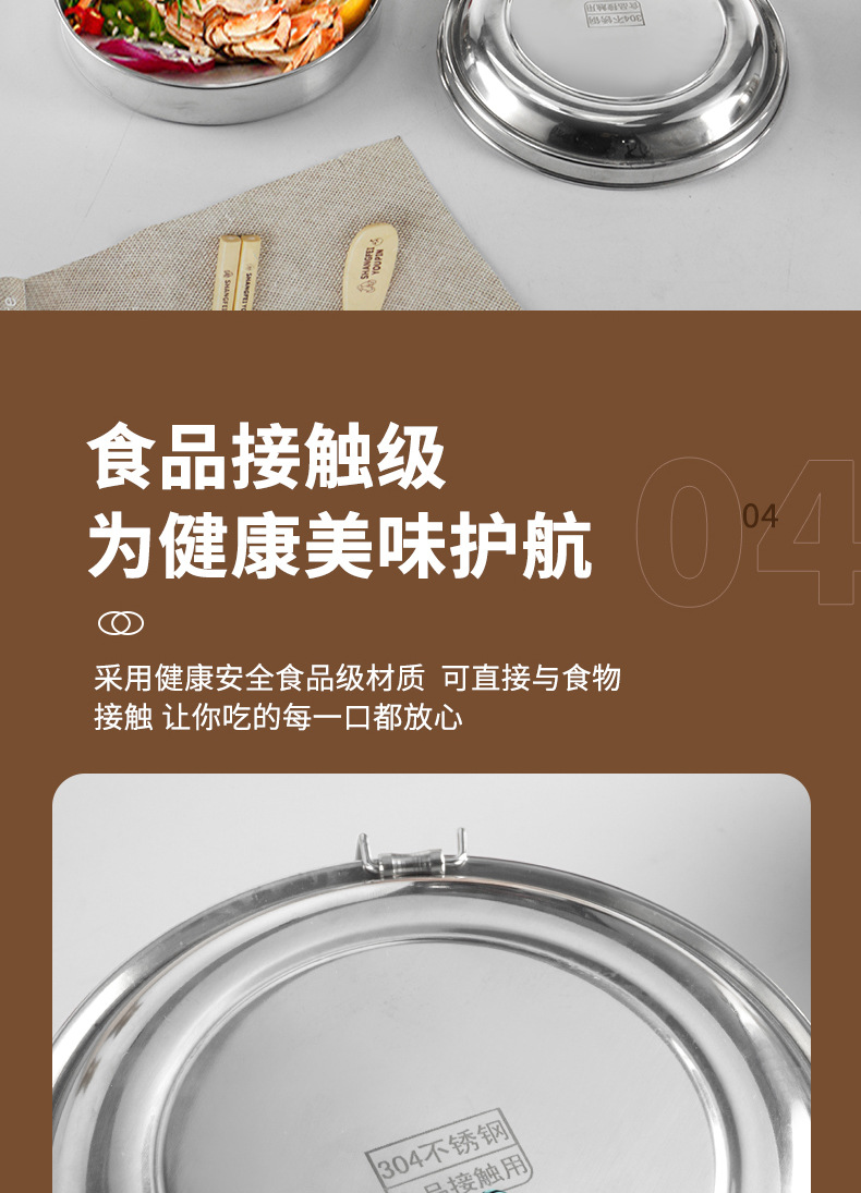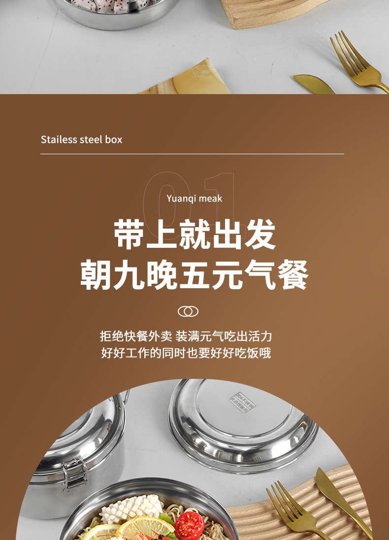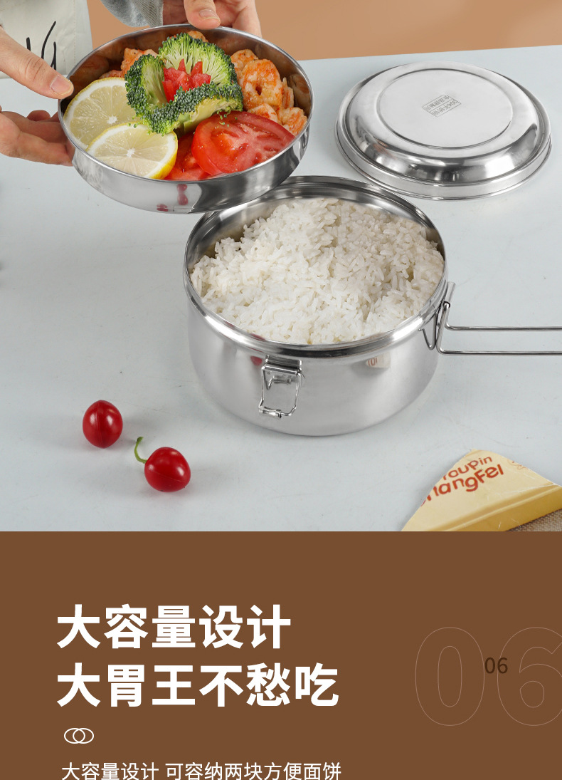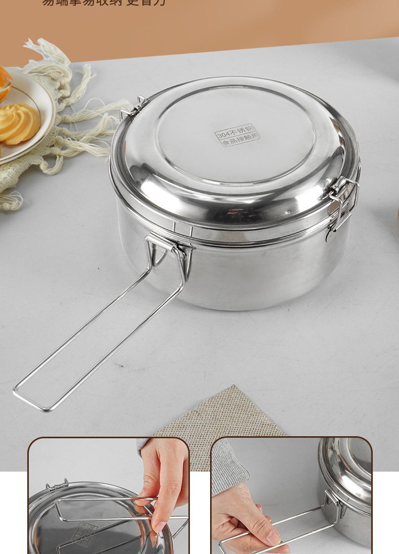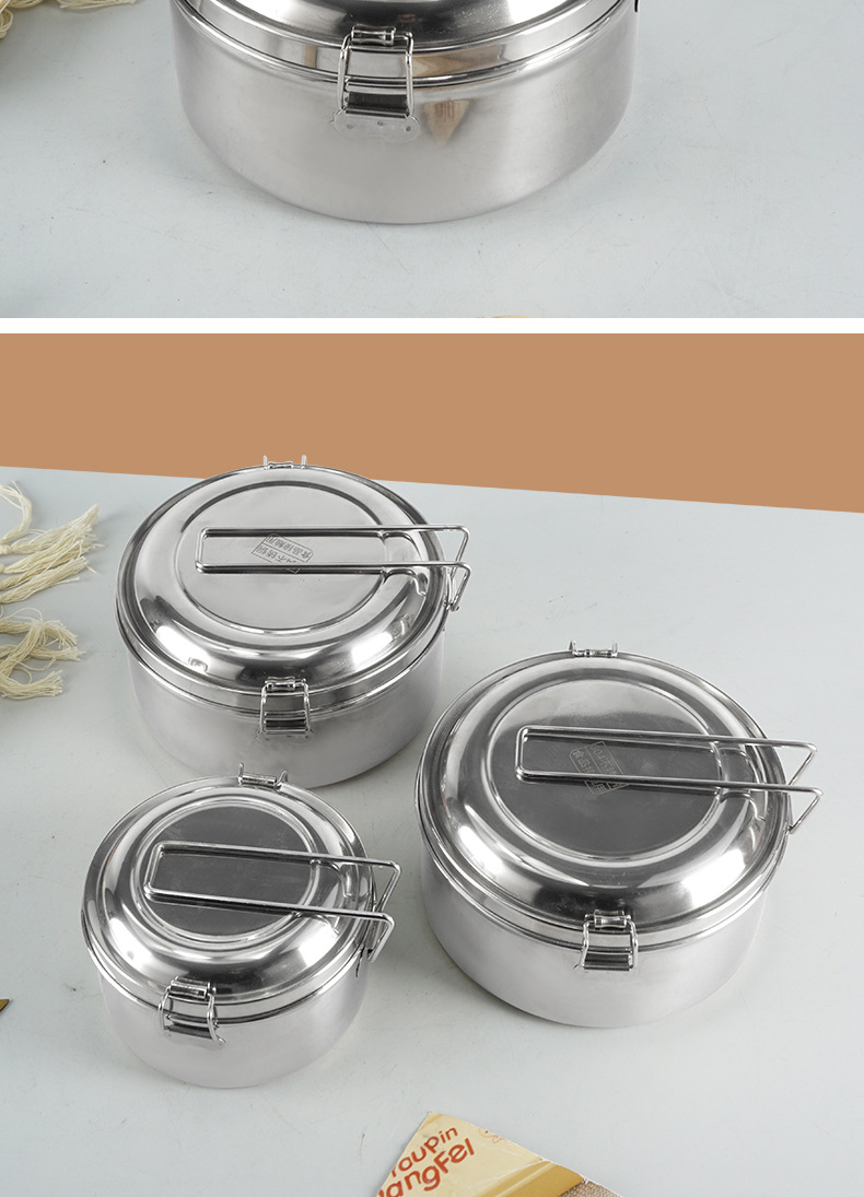 Caja de almuerzo redonda de acero inoxidable 304 caja de almuerzo al vapor del estudiante caja de almuerzo engrosada de grado alimenticio con tapa caja de almuerzo de doble capa