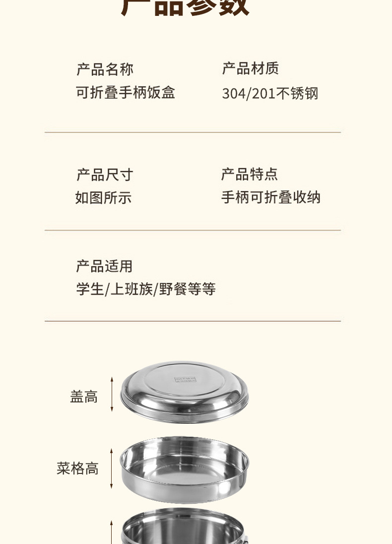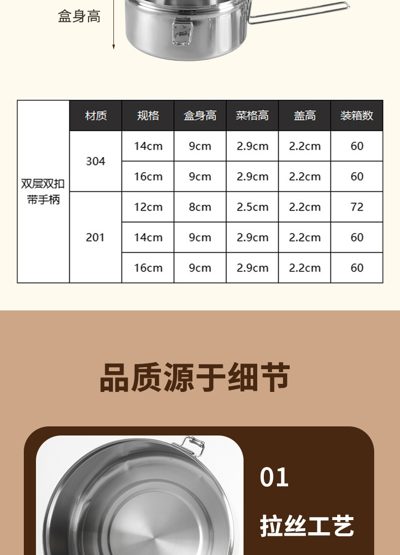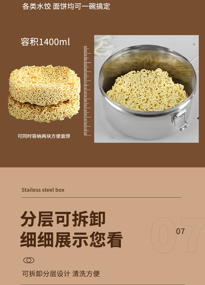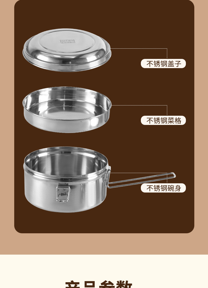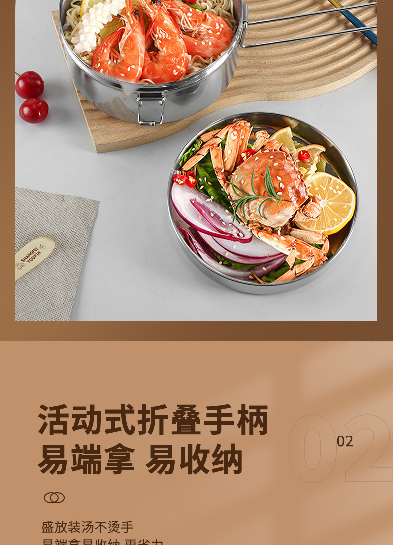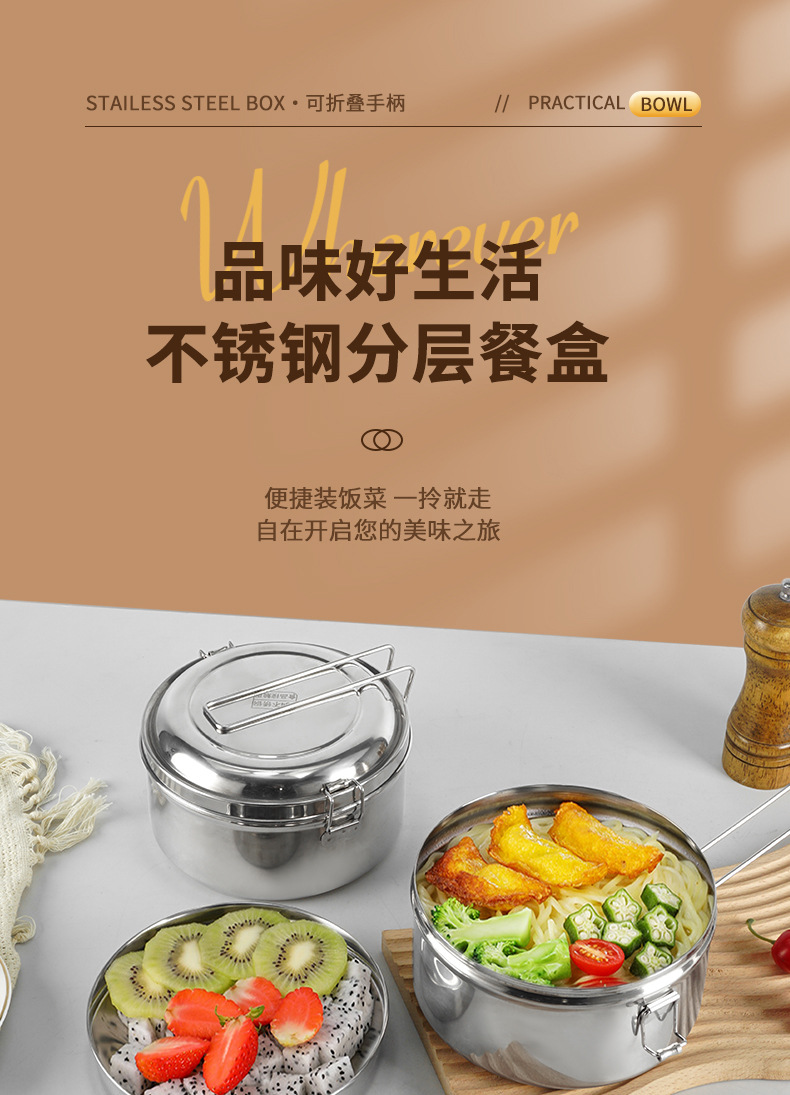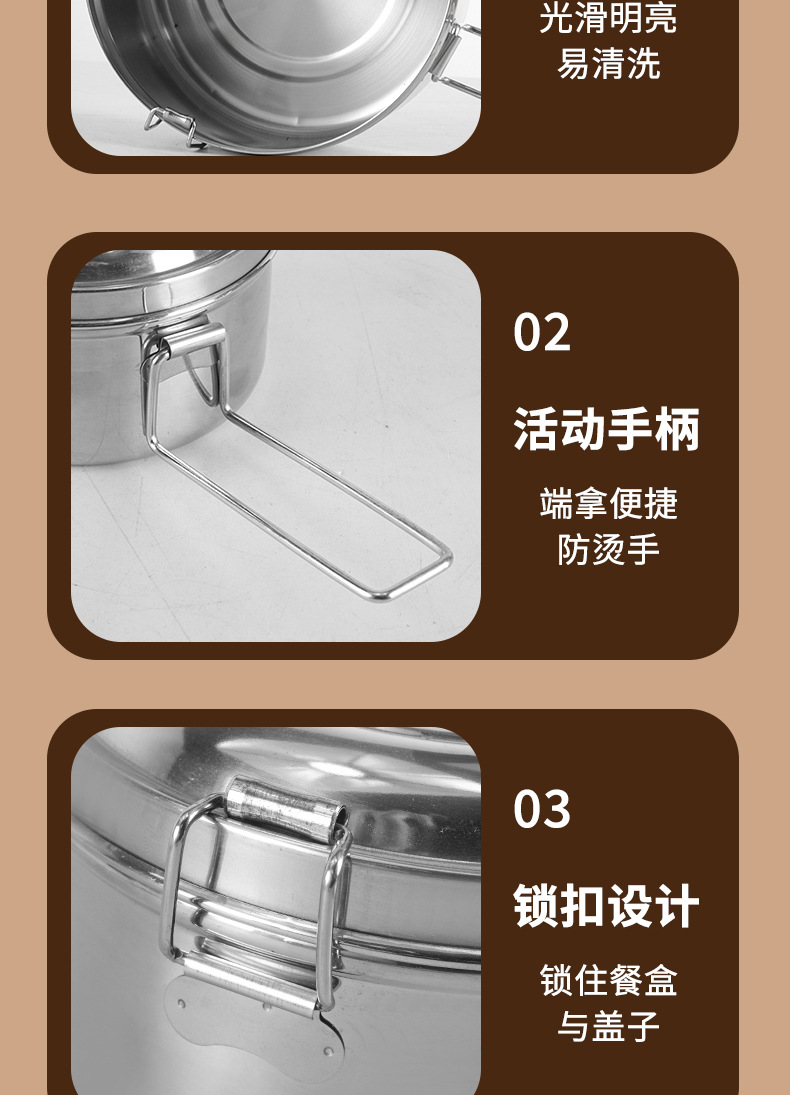 Caja de almuerzo redonda de acero inoxidable 304 caja de almuerzo al vapor del estudiante caja de almuerzo engrosada de grado alimenticio con tapa caja de almuerzo de doble capa