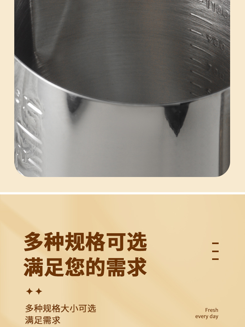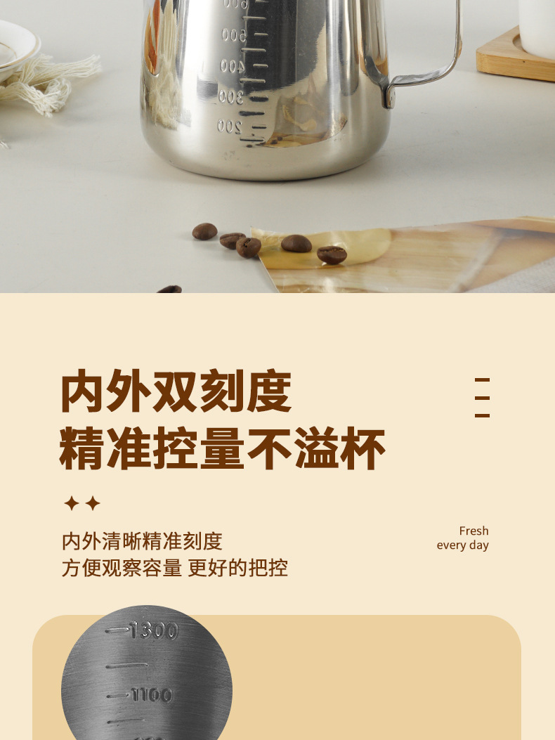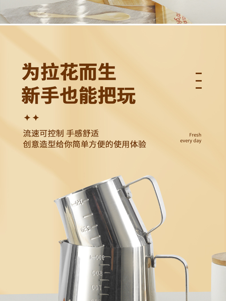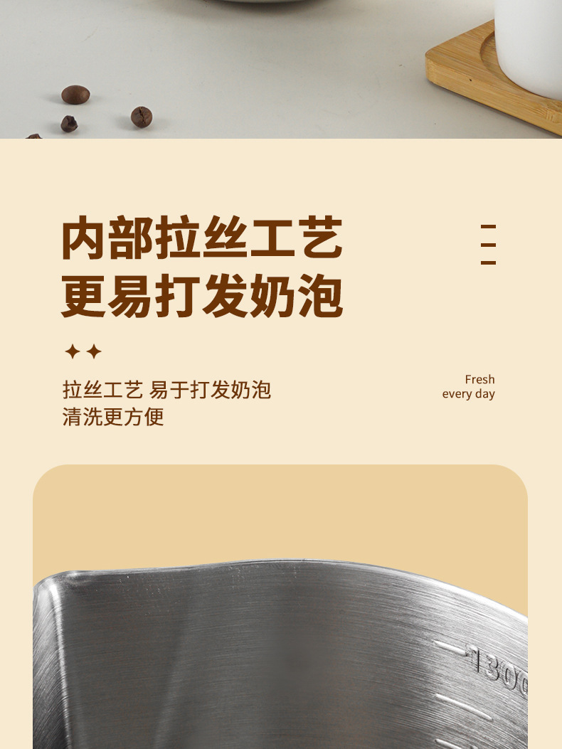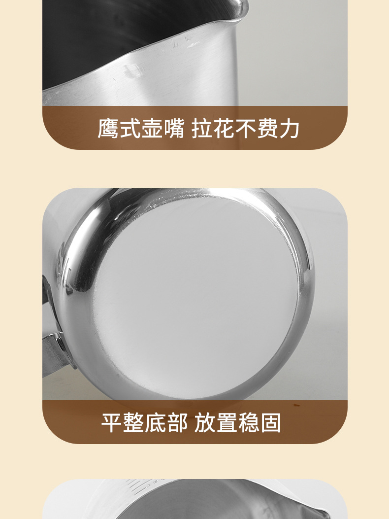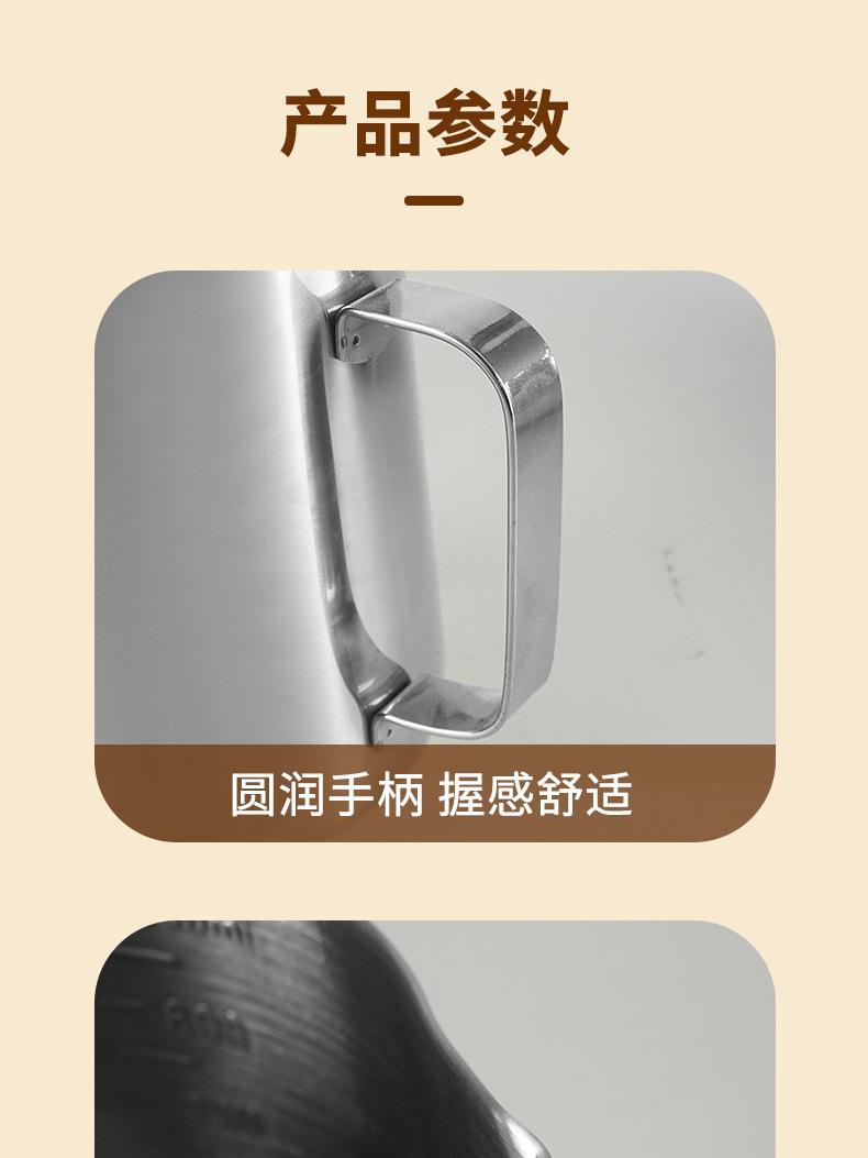 Taza de acero inoxidable con calibración interna y externa Taza de medición de café con punta gruesa Taza de extracción de leche con burbujas de leche Hervidor de leche