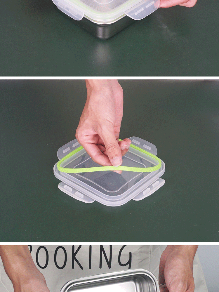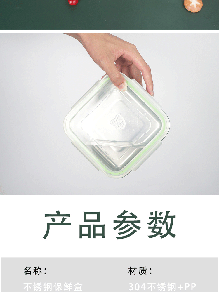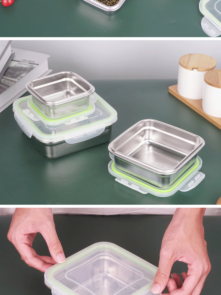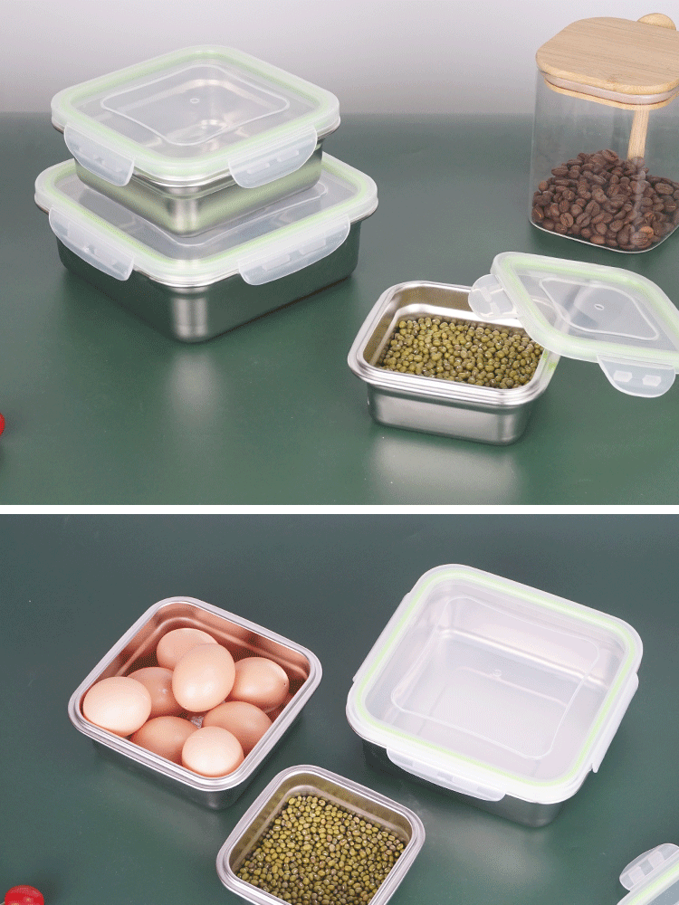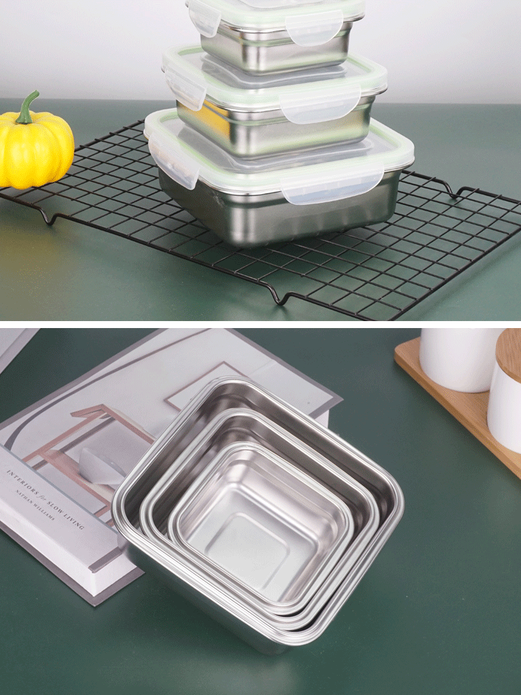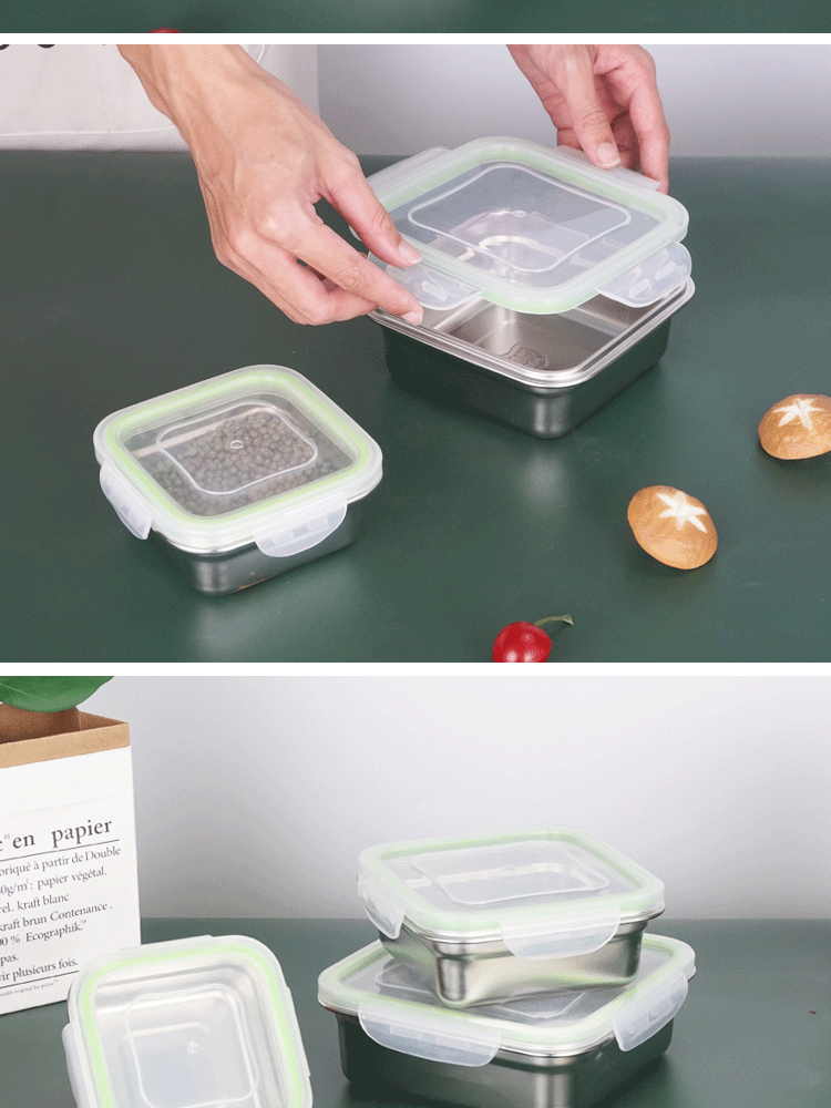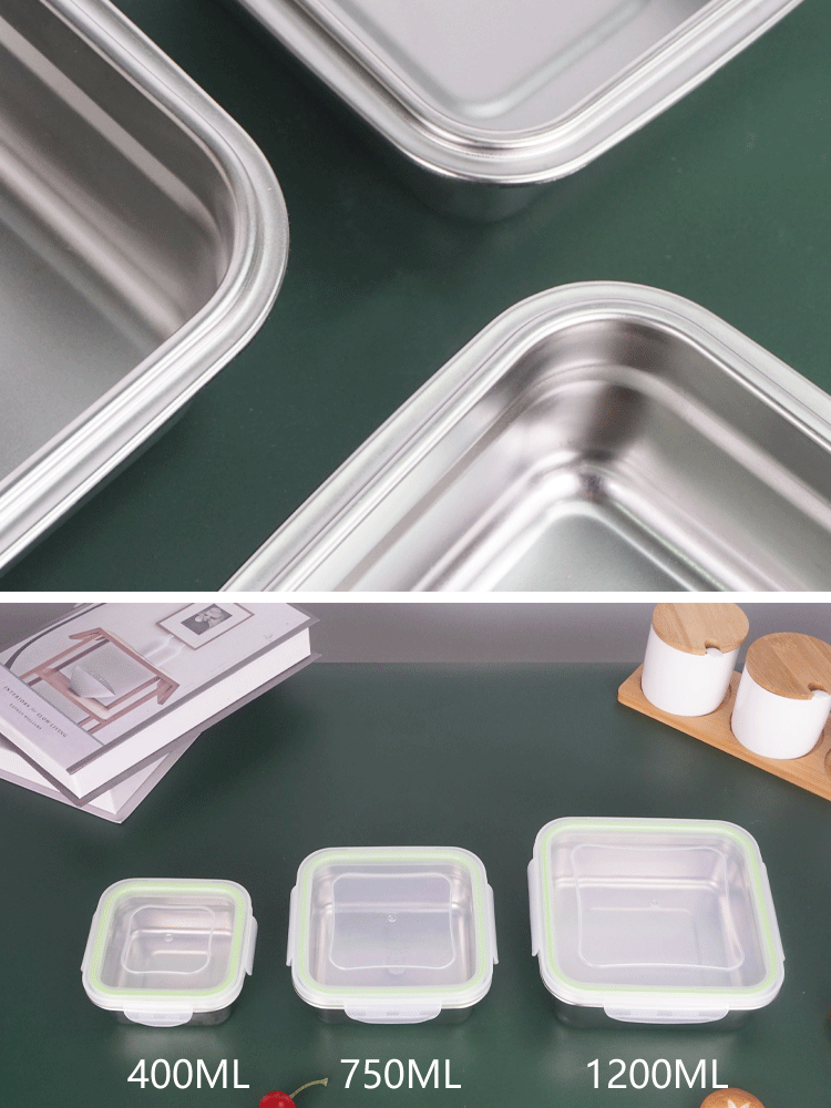 304 de acero inoxidable cuadrado crisper hogar cocina caja de almacenamiento sellada con tapa refrigerador caja de almacenamiento de alimentos refrigerados