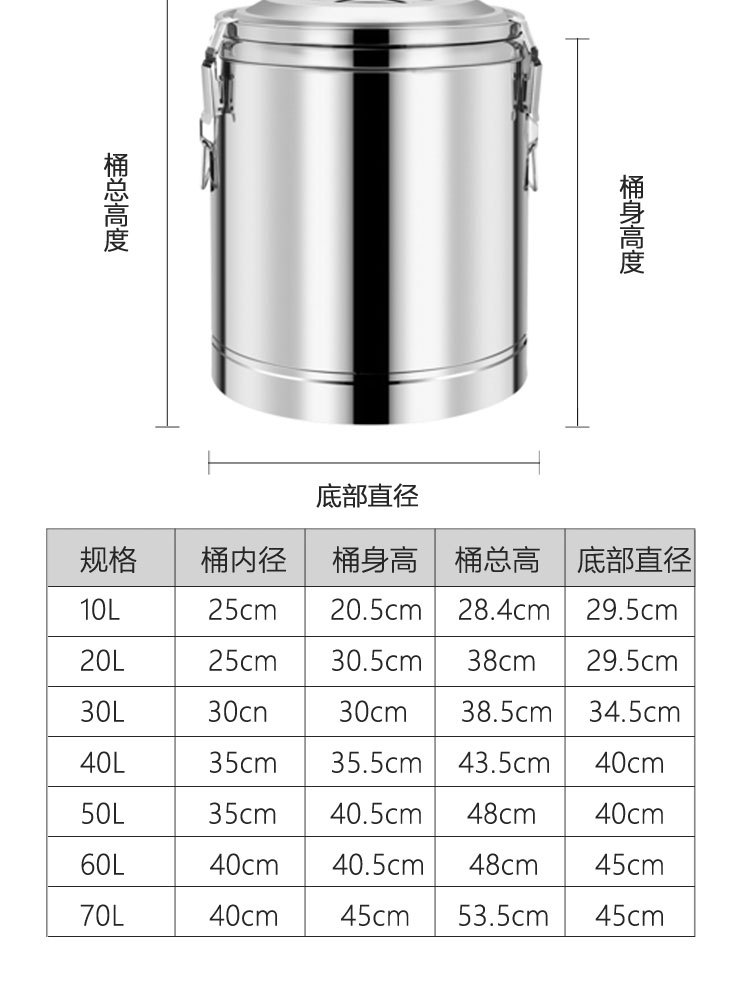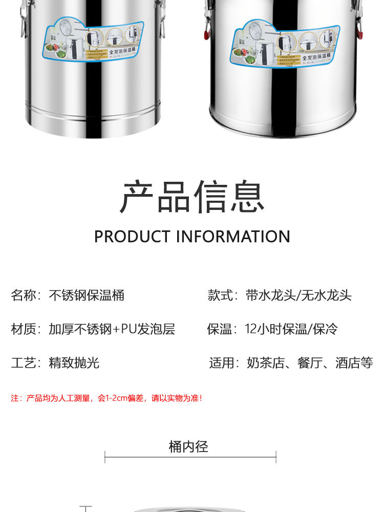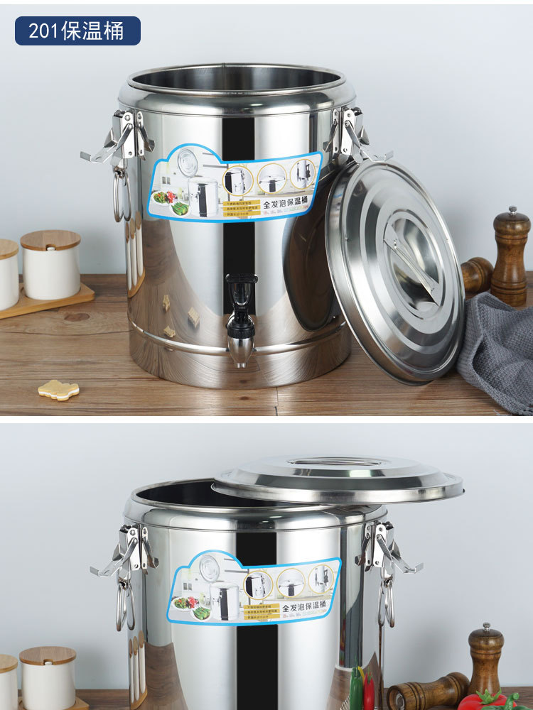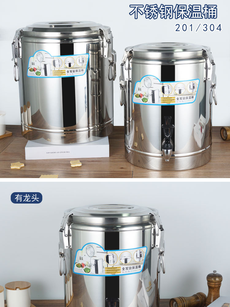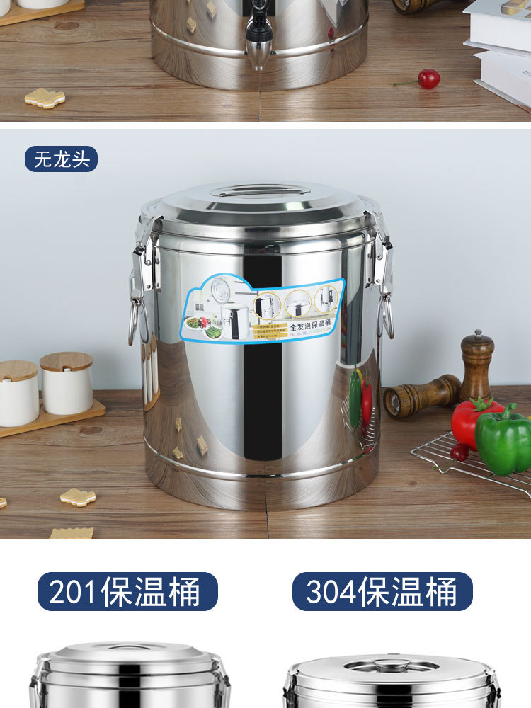 Suministro directo de fábrica cubo aislado de acero inoxidable comercial espesado de doble capa de espuma completa cubo multiusos Cubo de té de leche Cubo de arroz escolar