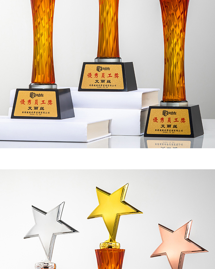 2024 Nuevo trofeo 123 Campeón y subcampeón Pulgar pico de alabanza de la estrella de cinco puntas premio trofeo personalizado exclusivo