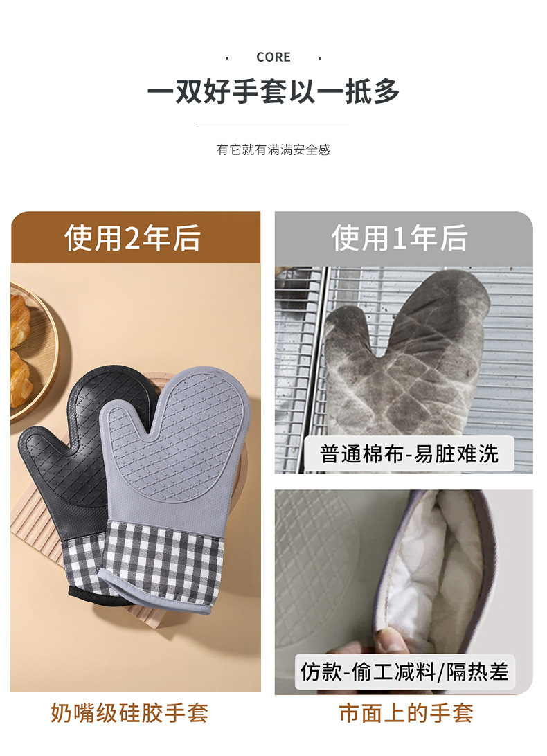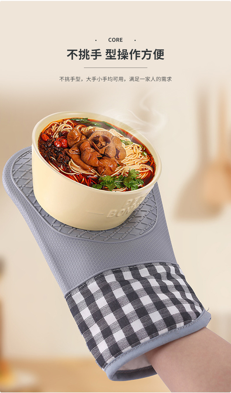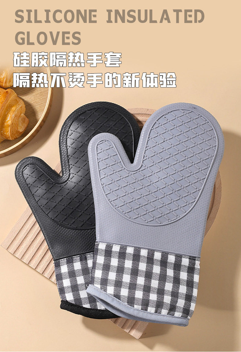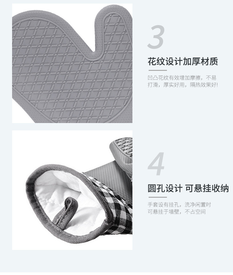 Cocina guante de silicona horno grueso alargado algodón horno doméstico guante de aislamiento de silicona microondas