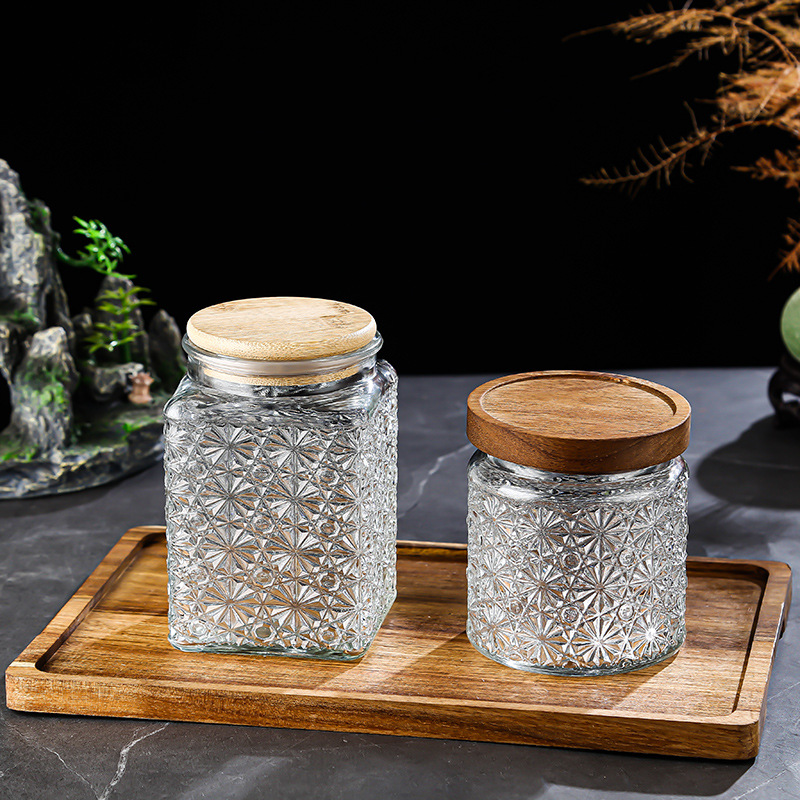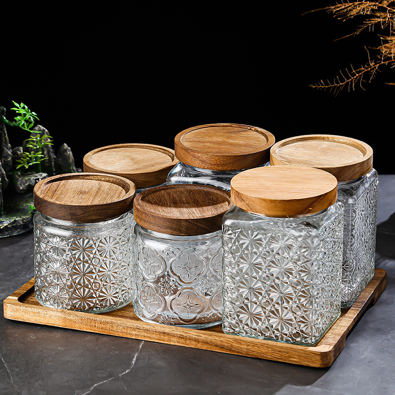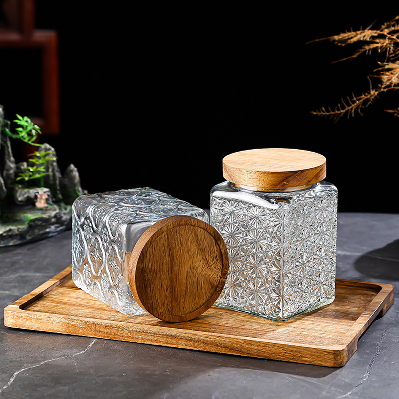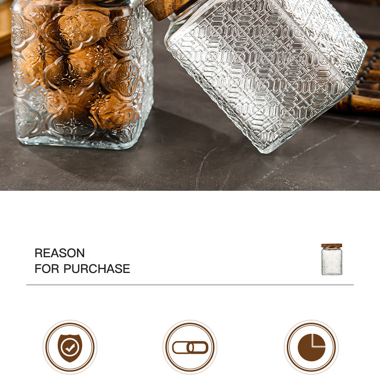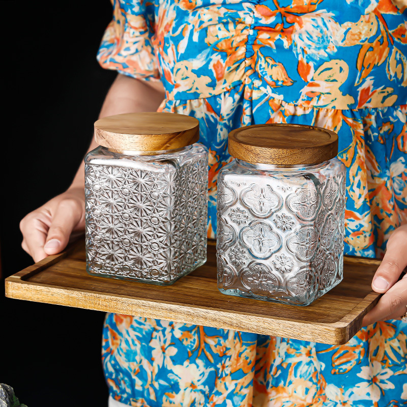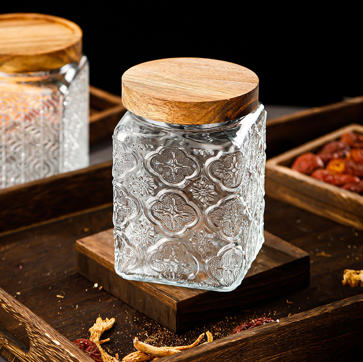 Tanque de almacenamiento de Begonia transparente, vidrio en relieve sellado, tanque cuadrado de cocina, botella de almacenamiento de condimentos caseros sellada para mantener fresco