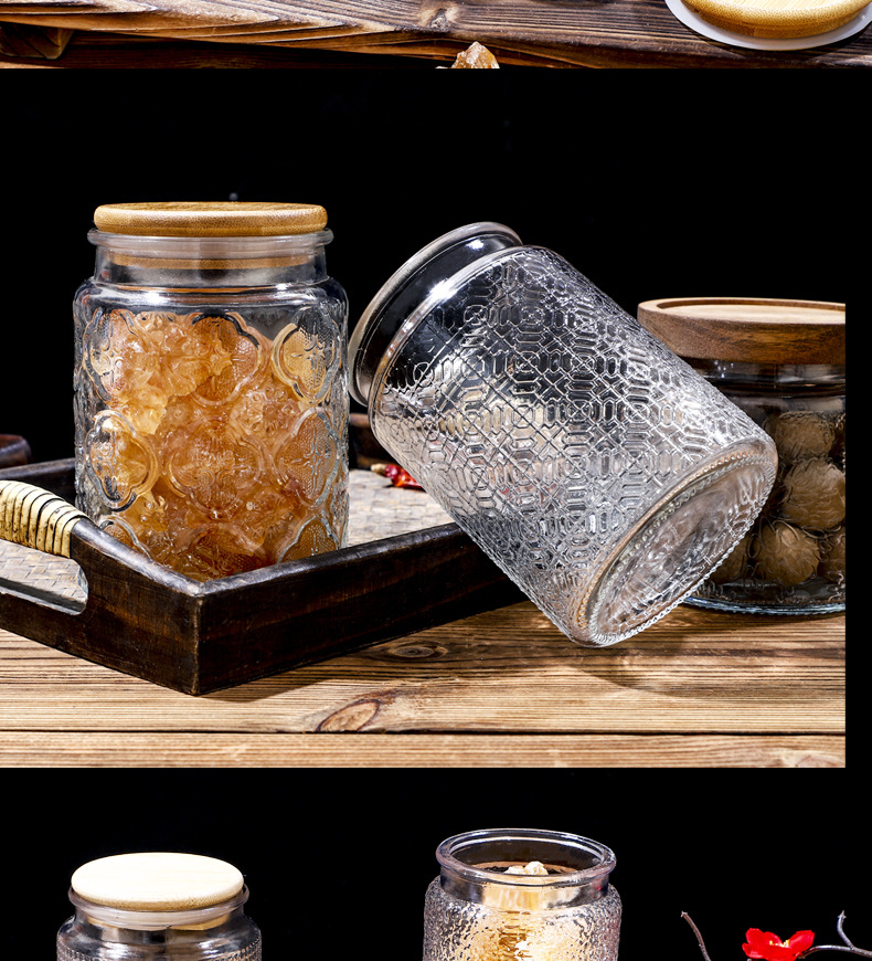 Nuevo relieve Begonia flor de vidrio sellado lata de almacenamiento de dulces snack frutas secas frasco almacenamiento lata de almacenamiento