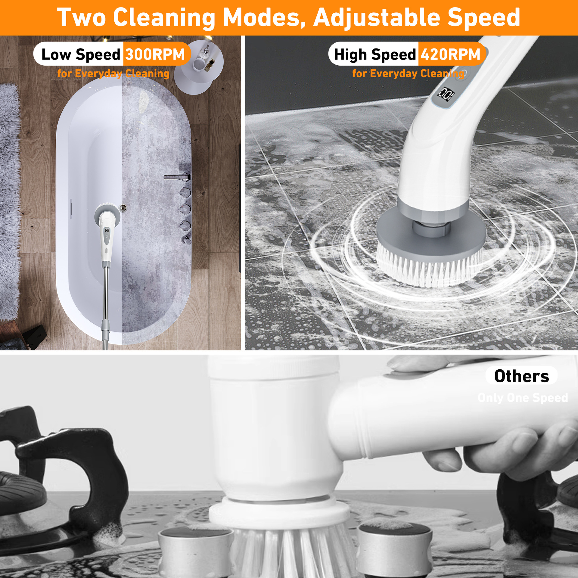 Cepillo de limpieza eléctrico transfronterizo Barredora automática doméstica Baño eléctrico Bañera Cepillo de baldosas Cepillo de limpieza inalámbrico giratorio