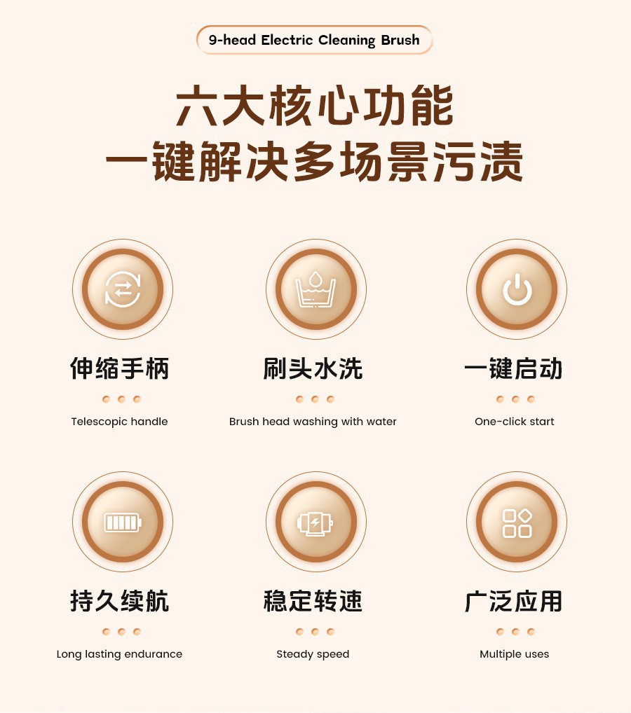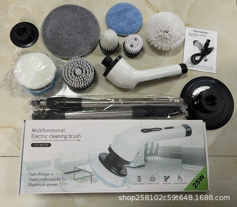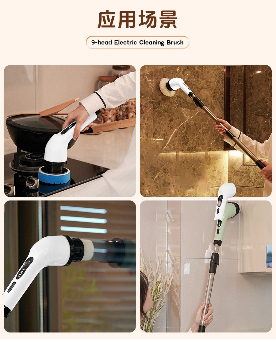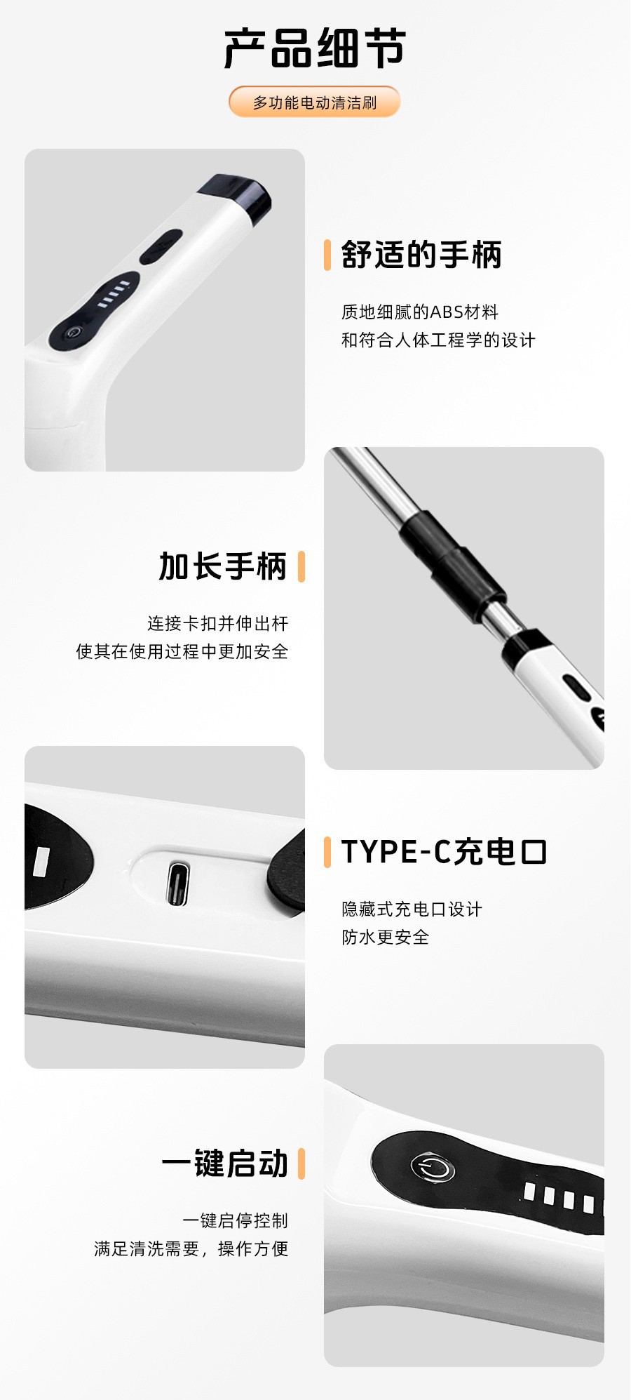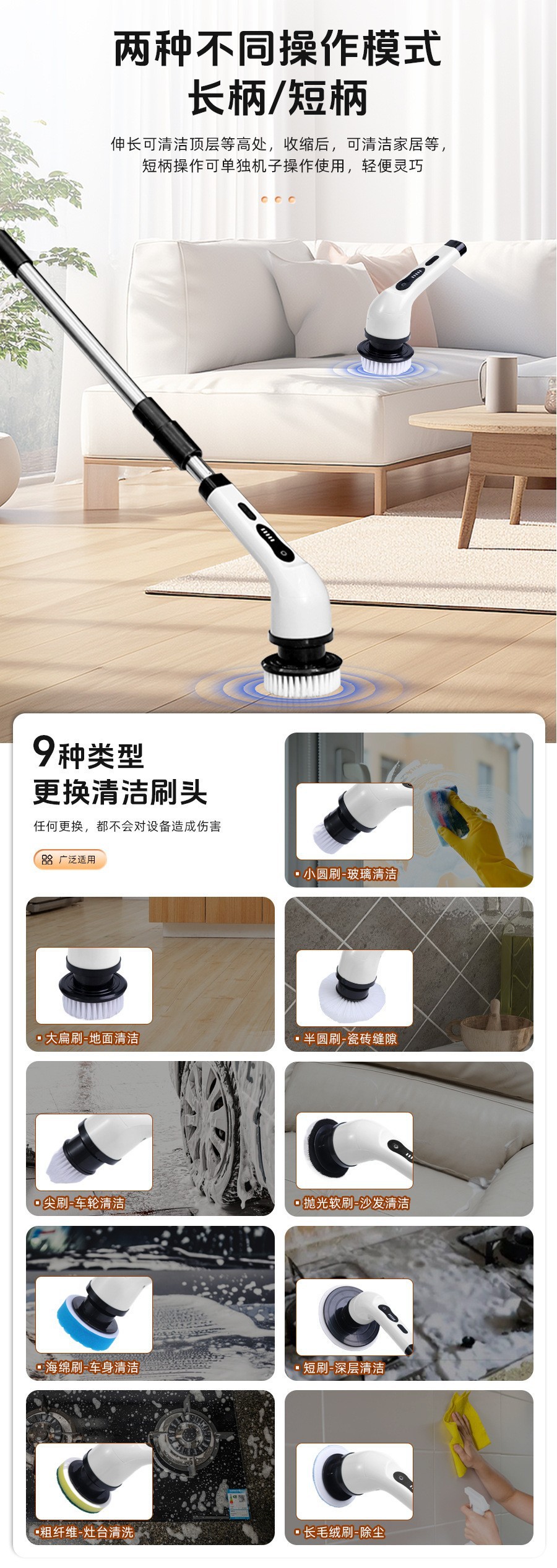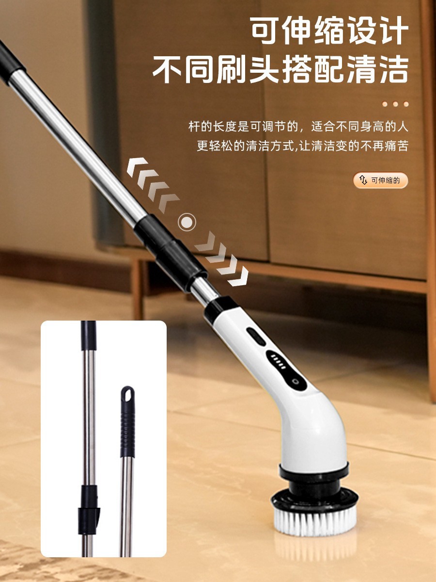 Cepillo de limpieza multifuncional eléctrico Cepillo de lavado Carga Baño impermeable Sin ángulo muerto Cepillo de baño Barra larga telescópica Gran par