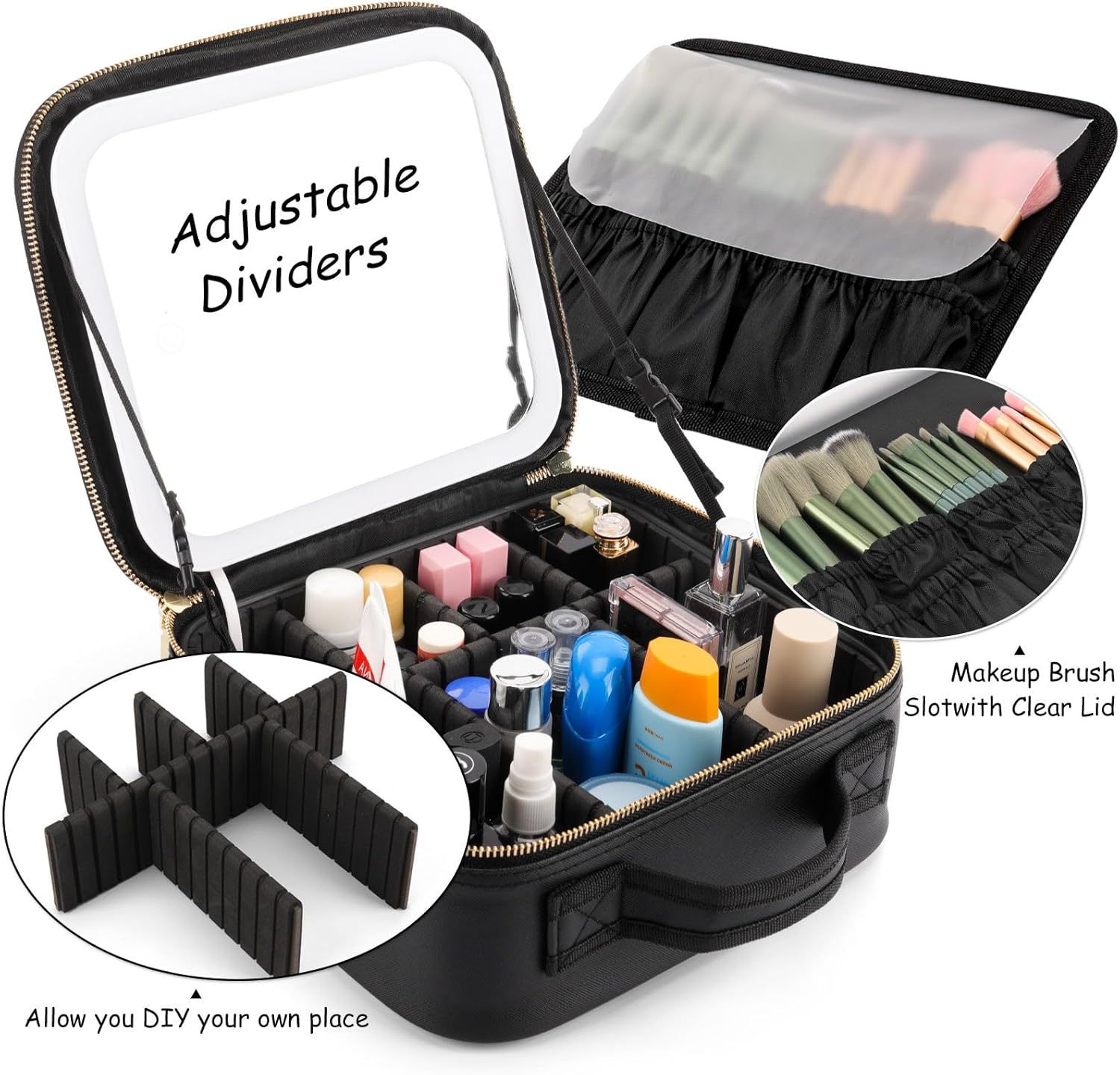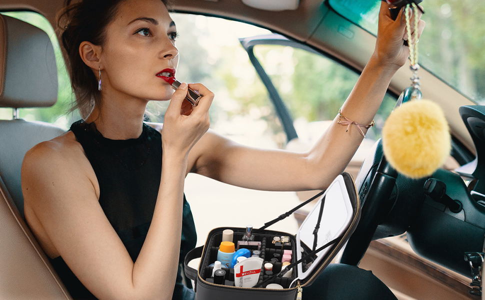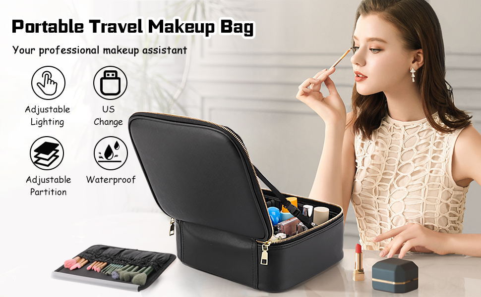 Bolso cosmético explosivo transfronterizo venta directa de fábrica espejo cosmético caja de almacenamiento lámpara led bolsa de belleza de gran capacidad a partir de una pieza