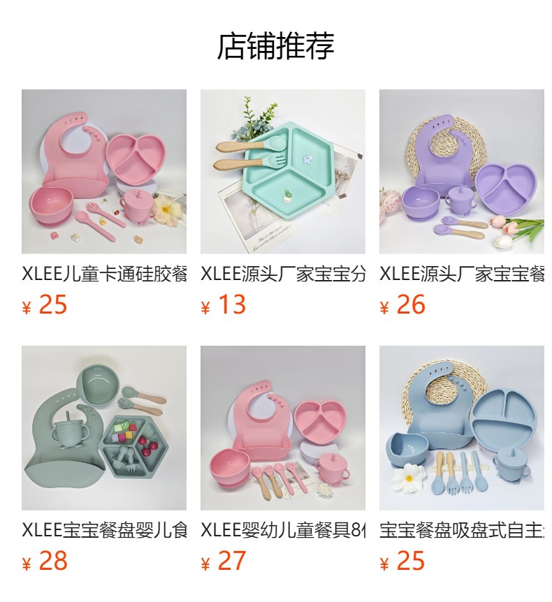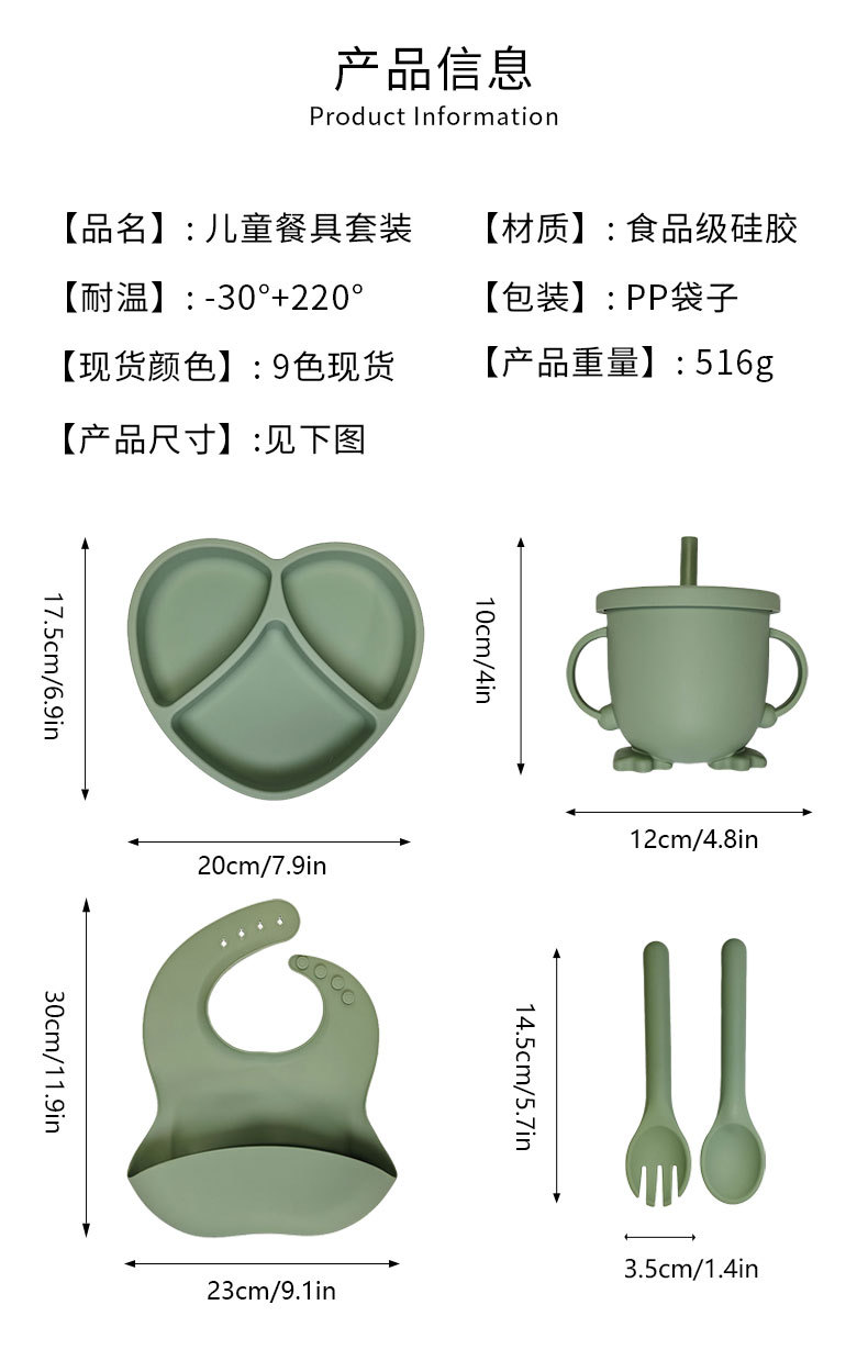 XLEE fuente fabricante de platos de silicona para niños antideslizante ventosas cubiertos de alimentos suplementarios 5 piezas conjunto de productos explosivos transfronterizos en stock