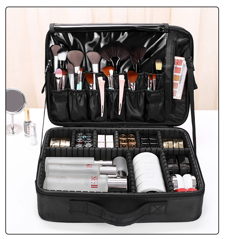 Bolsa de cosméticos de gran capacidad, partición de clasificación simple y portátil, bolsa de almacenamiento multicapa, caja de manicura de belleza para artista de maquillaje y maquillaje